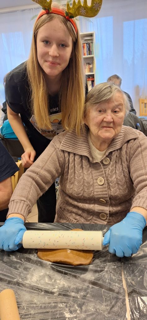 W dniu 05.12.2024r. udaliśmy się z kolejną wizytą do zaprzyjaźnionego DPS Konarskiego oddział Zamenhofa. Tego dnia razem z Seniorami piekliśmy pierniki. Żeby wyszło idealne ciasto trzeba pamiętać o dobrych składnikach oraz o aromatycznych przyprawach korzennych. Nasze pierniki wyszły absolutnie wyjątkowe! Jest duże prawdopodobieństwo, że zostaną zjedzone jeszcze przed Świętami Bożego Narodzenia, dlatego akcję piernikową trzeba będzie niebawem powtórzyć