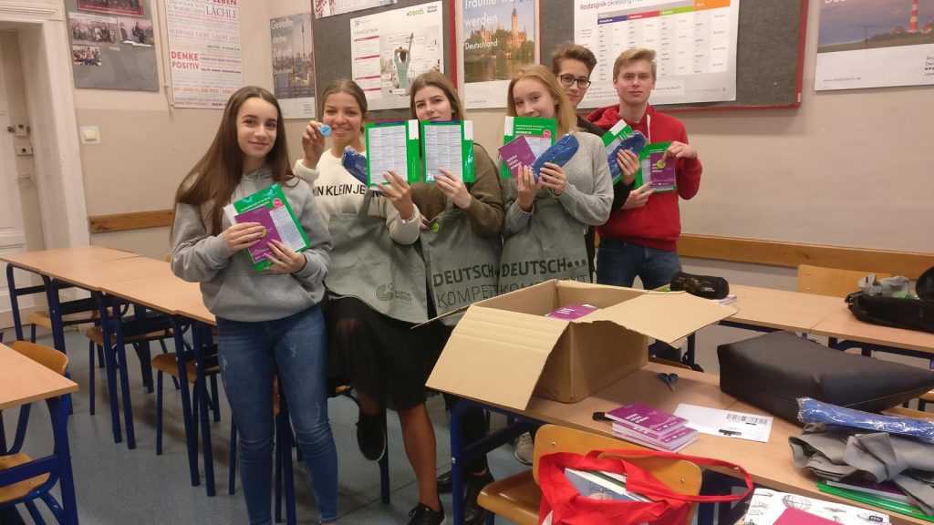 Od września uczniowie klasy 2b (grupa niemiecka) biorą udział w projekcje Deutsch Plus. Zadaniem uczniów w październiku było nakręcenie w języku niemieckim spotu reklamowego na temat Carsharingu. Zadanie odnosiło się do tematyki zanieczyszczenia i ochrony środowiska. Uczniowie zdobyli nagrody, które będą mobilizowały do nauki języka niemieckiego. Konkurs miał zasięg ogólnopolski i był zorganizowany przez Instytut Goethego w Warszawie.