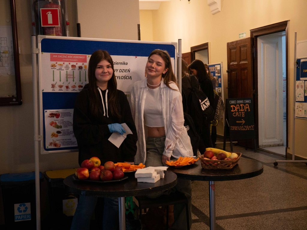 24 października to Światowy Dzień Walki z Otyłością. Ma on na celu zwrócenie uwagi na problem nadwagi i otyłości oraz zwiększenie świadomości m.in. na temat prawidłowego odżywiania. Chcąc przybliżyć uczniom jak dużym problemem jest otyłość na całym świecie, wspólnie ogladaliśmy film dokumentalny „Globalna otyłość”. Podczas lekcji oraz przerw szerzyliśmy nawyki zdrowego odżywiana. Zachęcaliśmy do sięgania po zdrowie przekąski: owoce, warzywa czy musy.