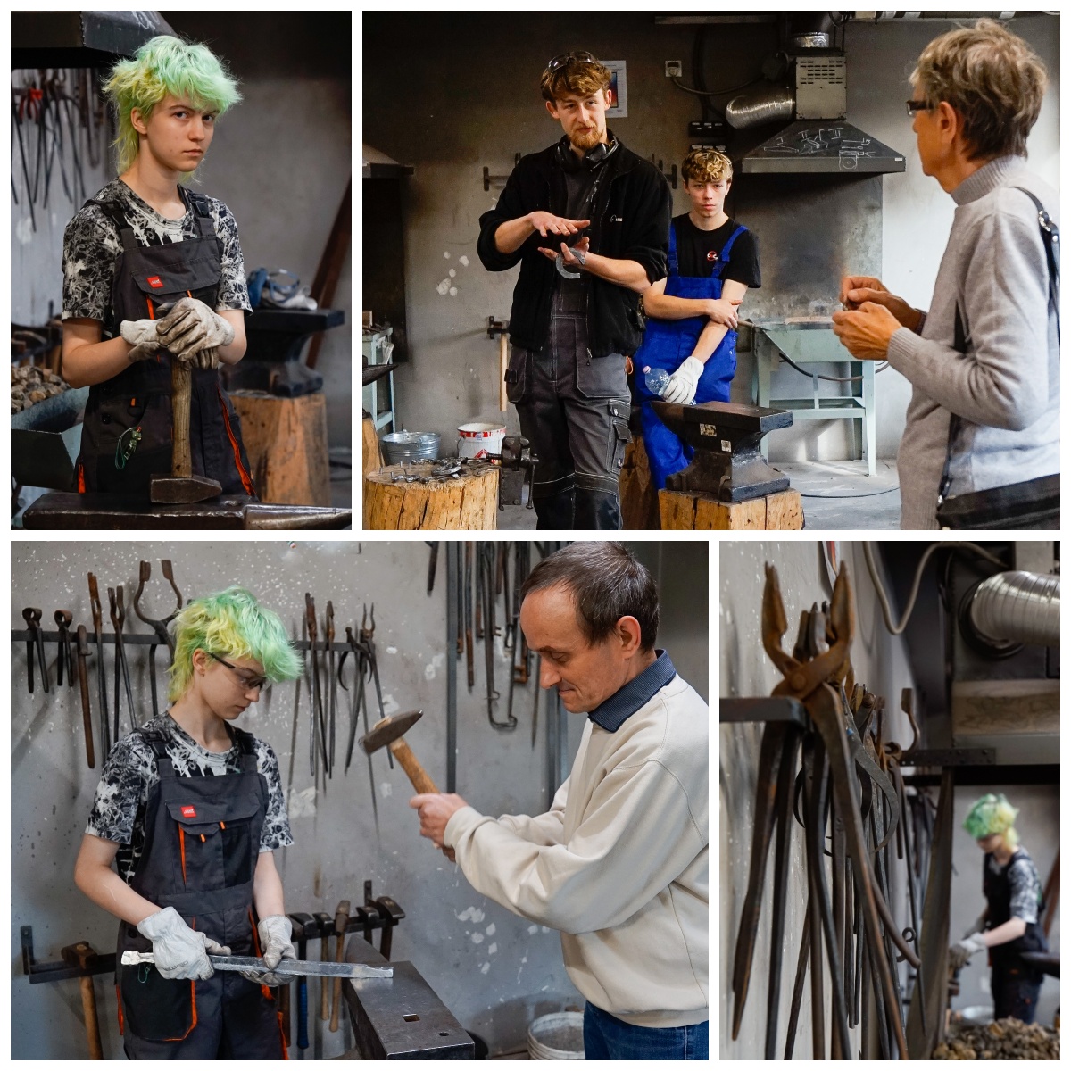 • p. Dawid Grycza wraz z uczniami wprowadził gości w świat kowalstwa, gdzie siła spotyka się ze sztuką,
