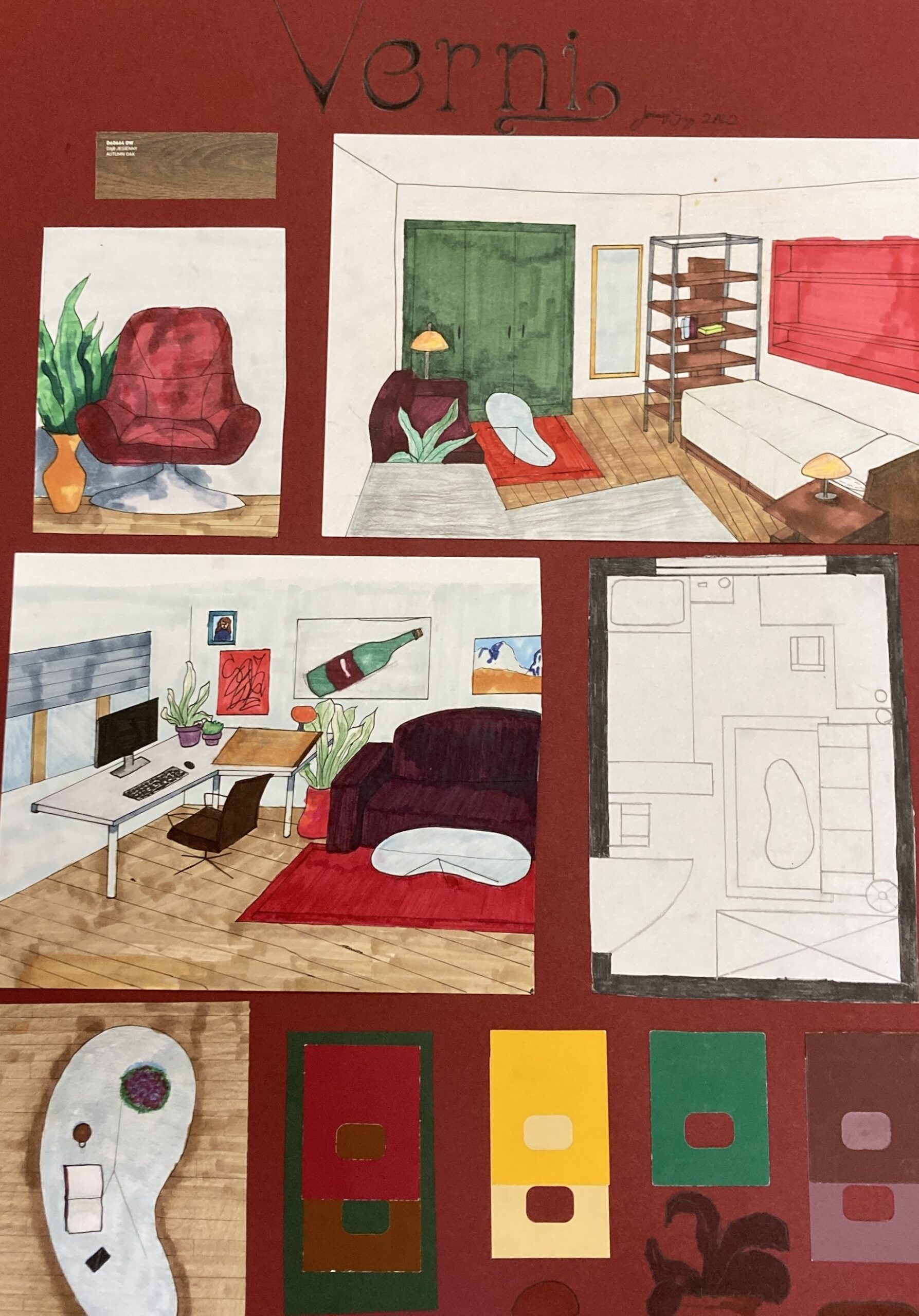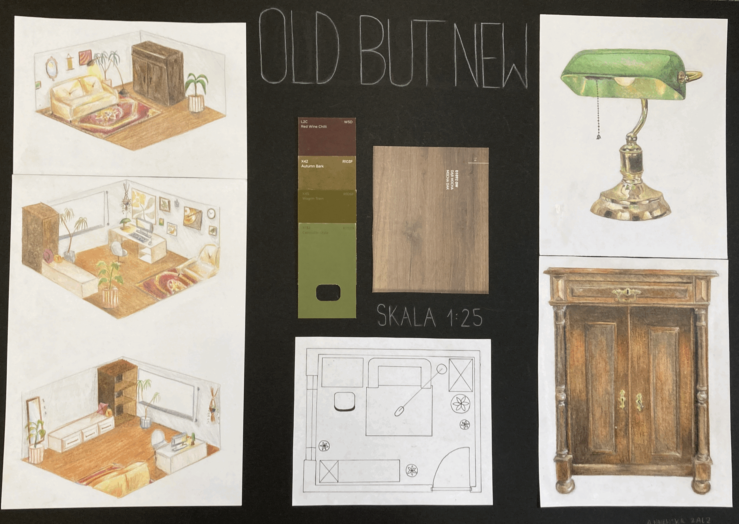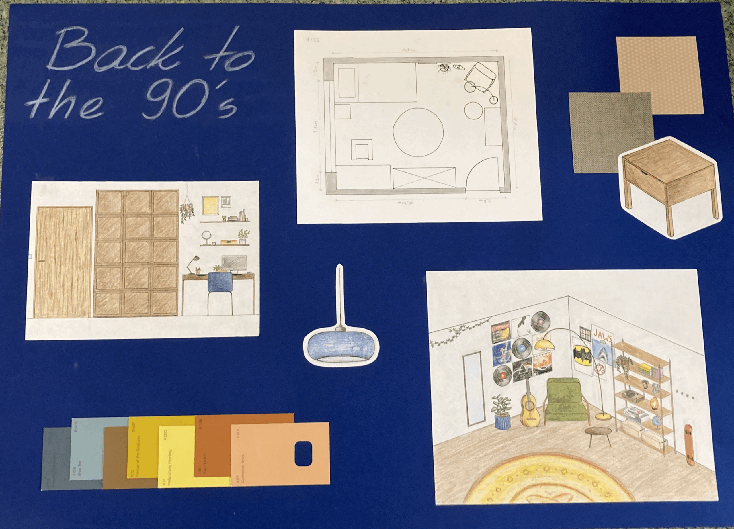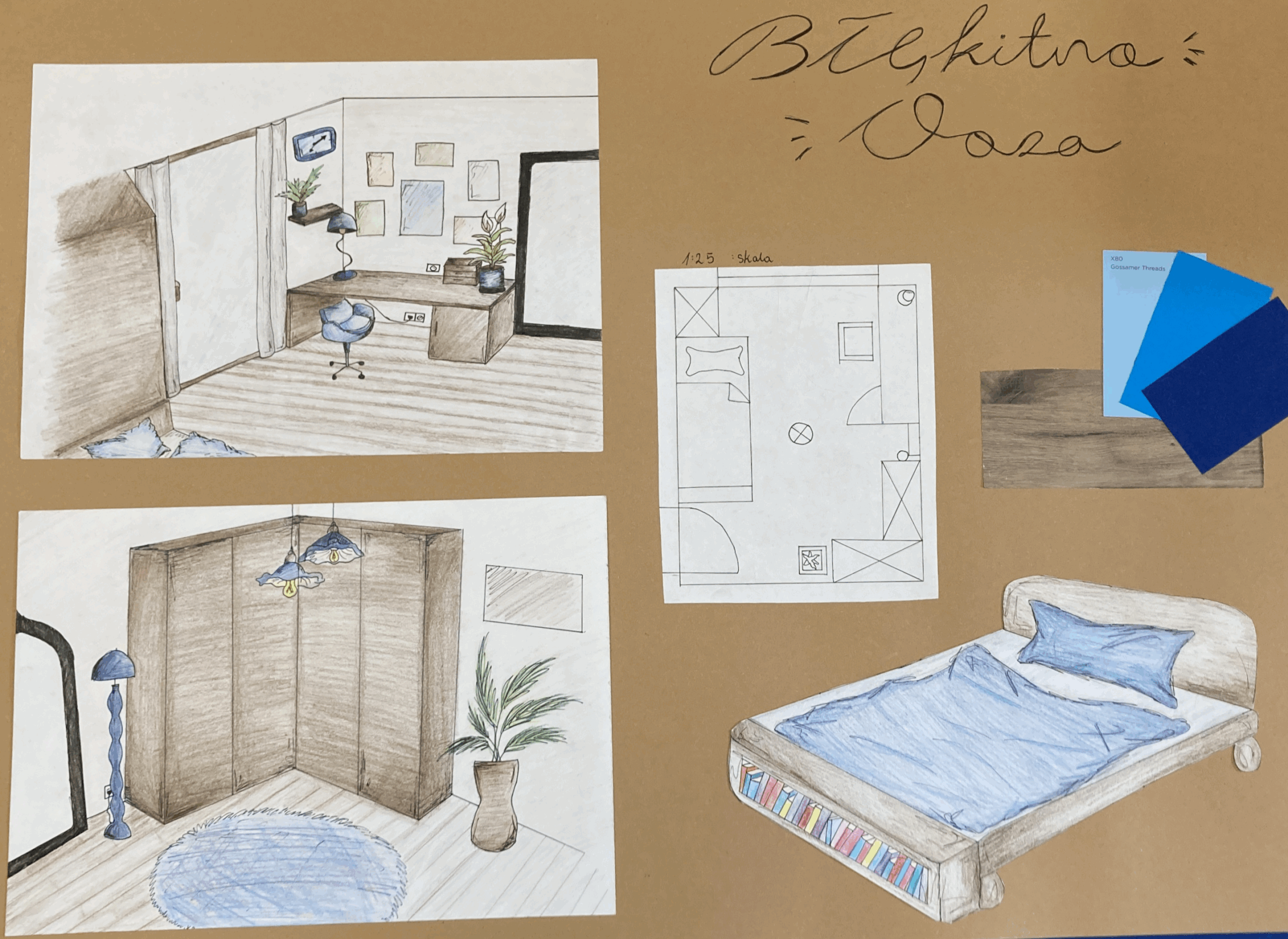 powstały plansze z kompleksowym opracowaniem wnętrza pokoju młodzieżowego z