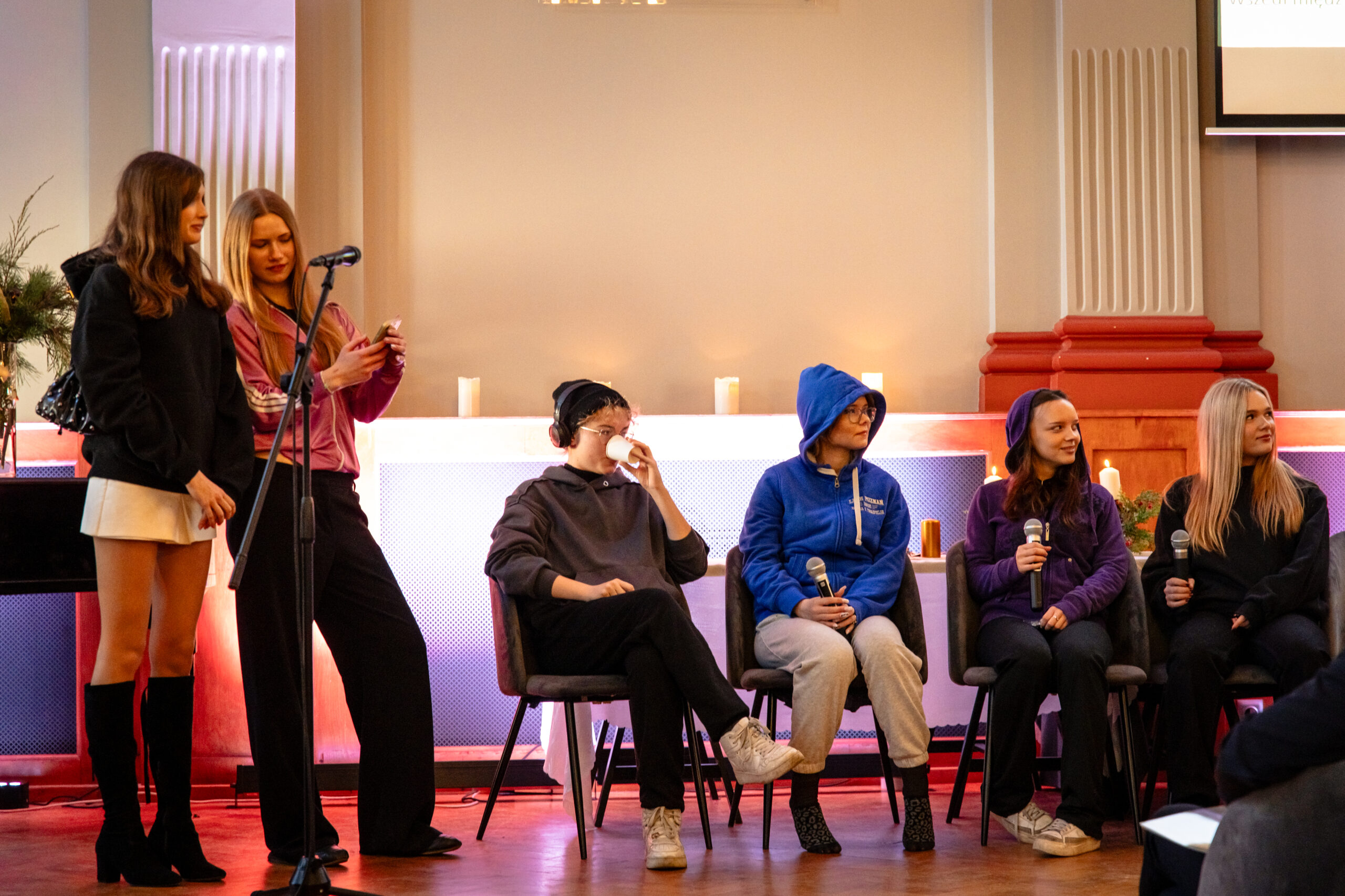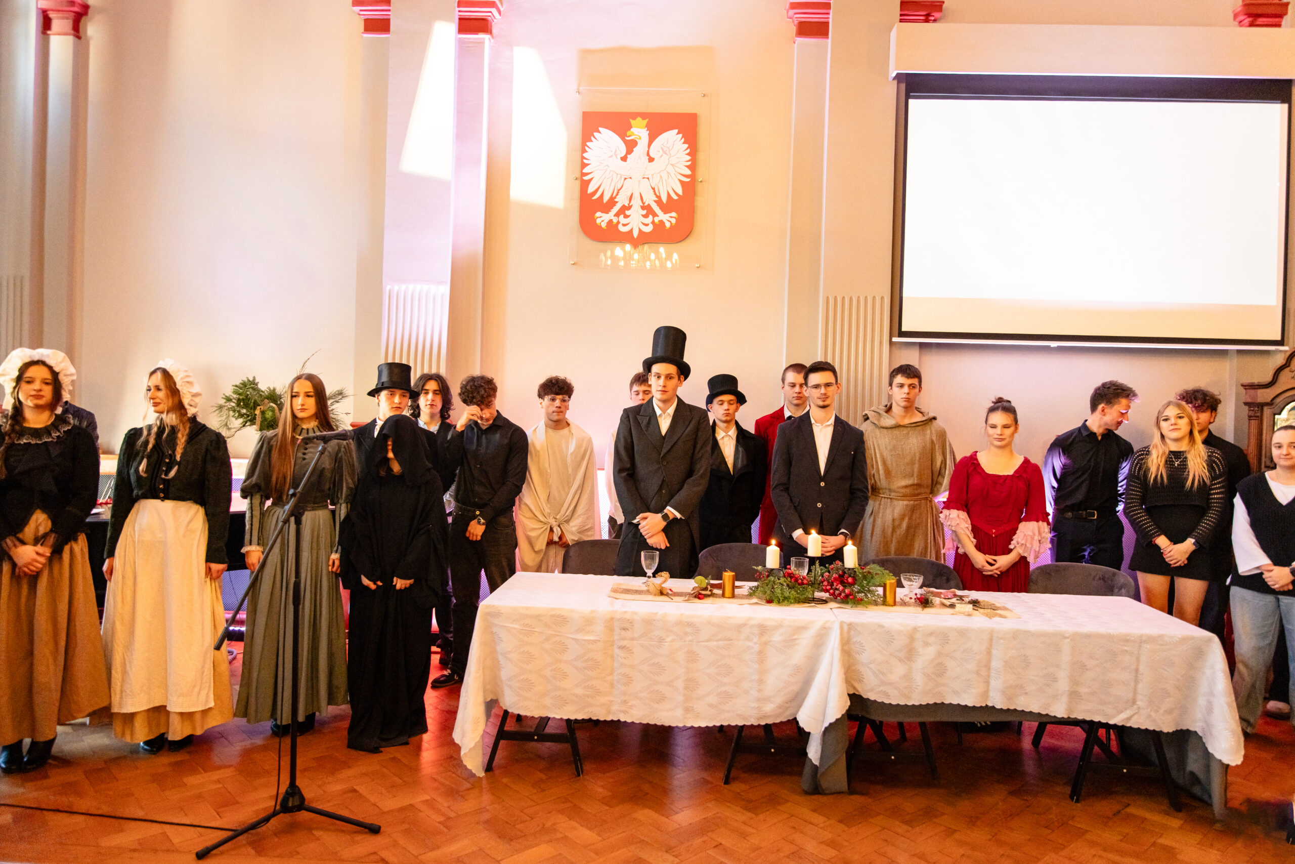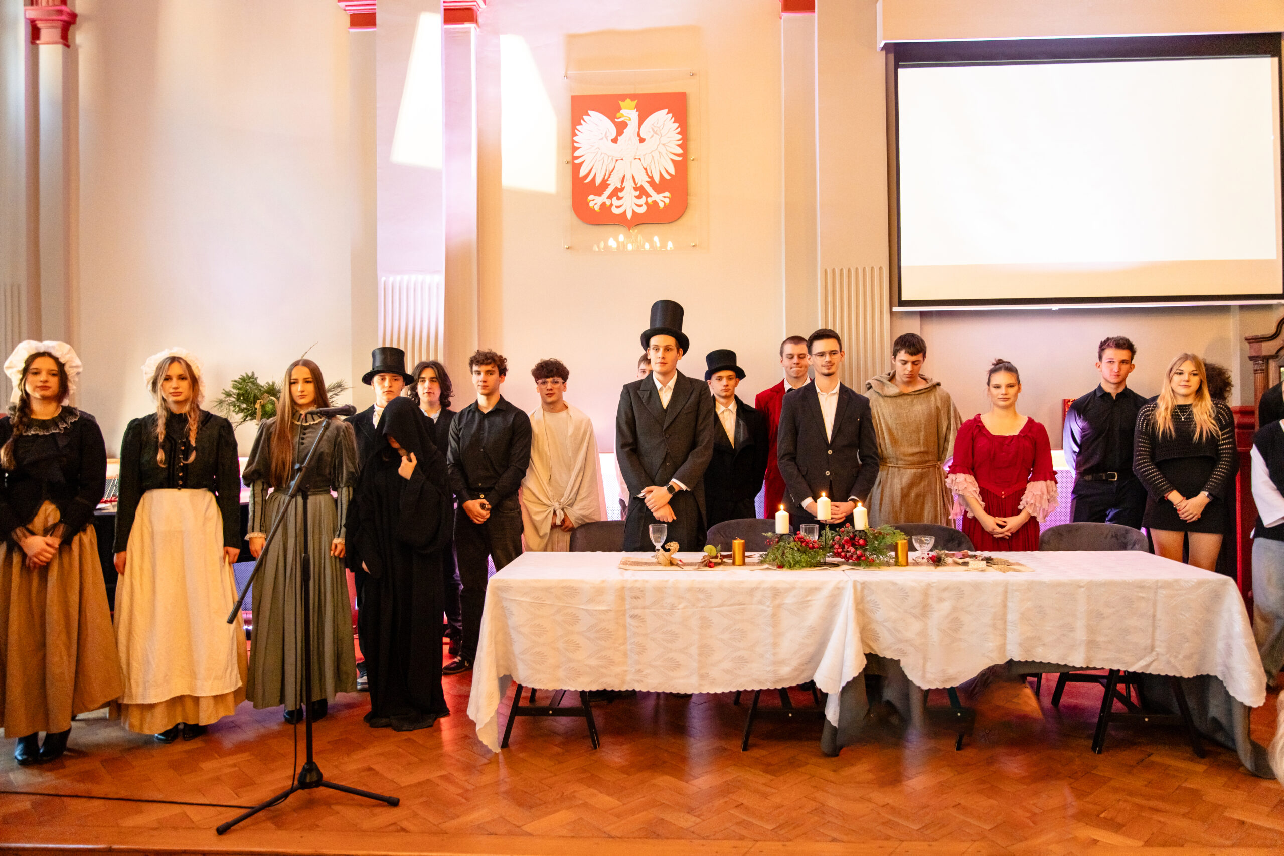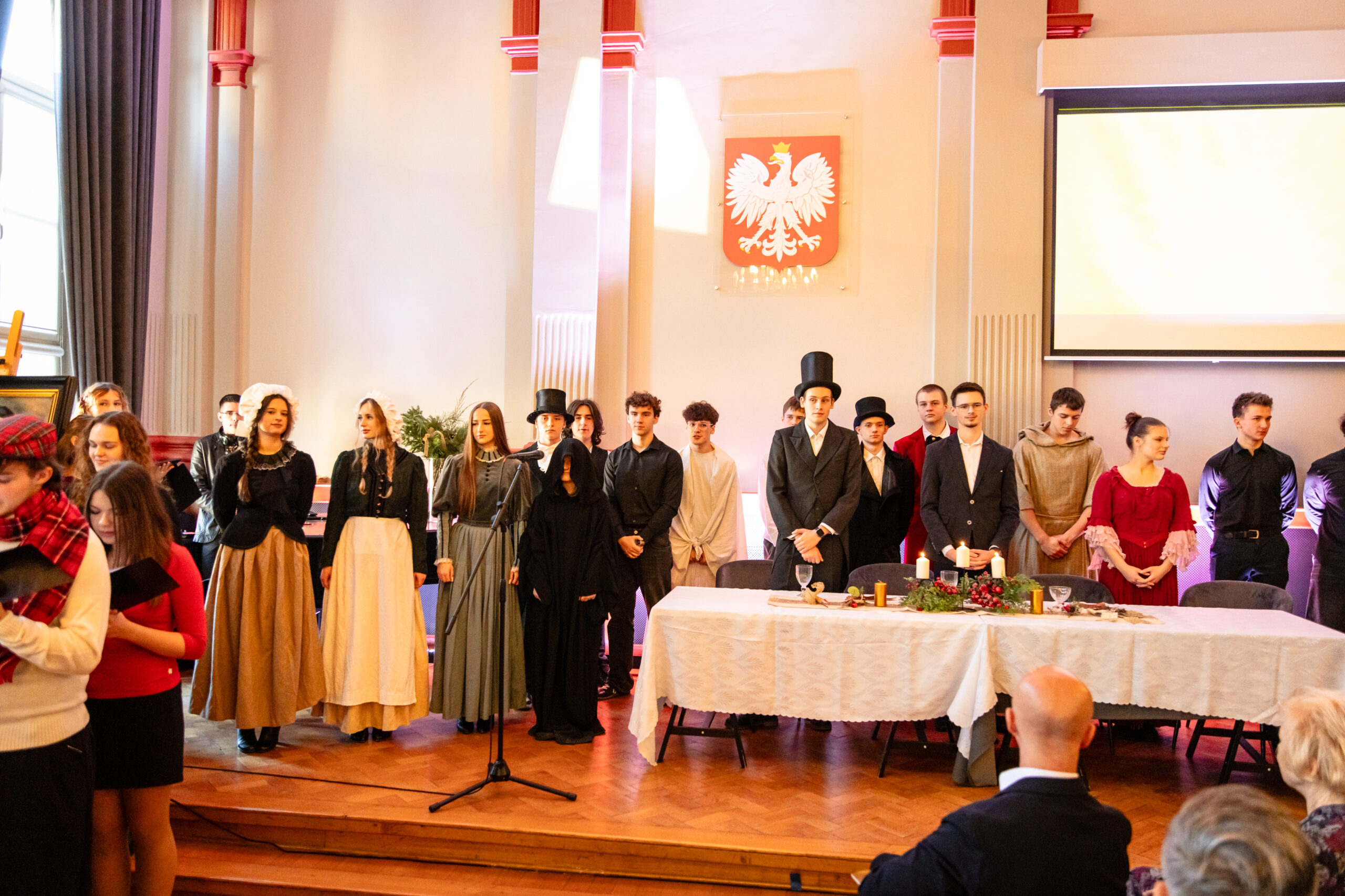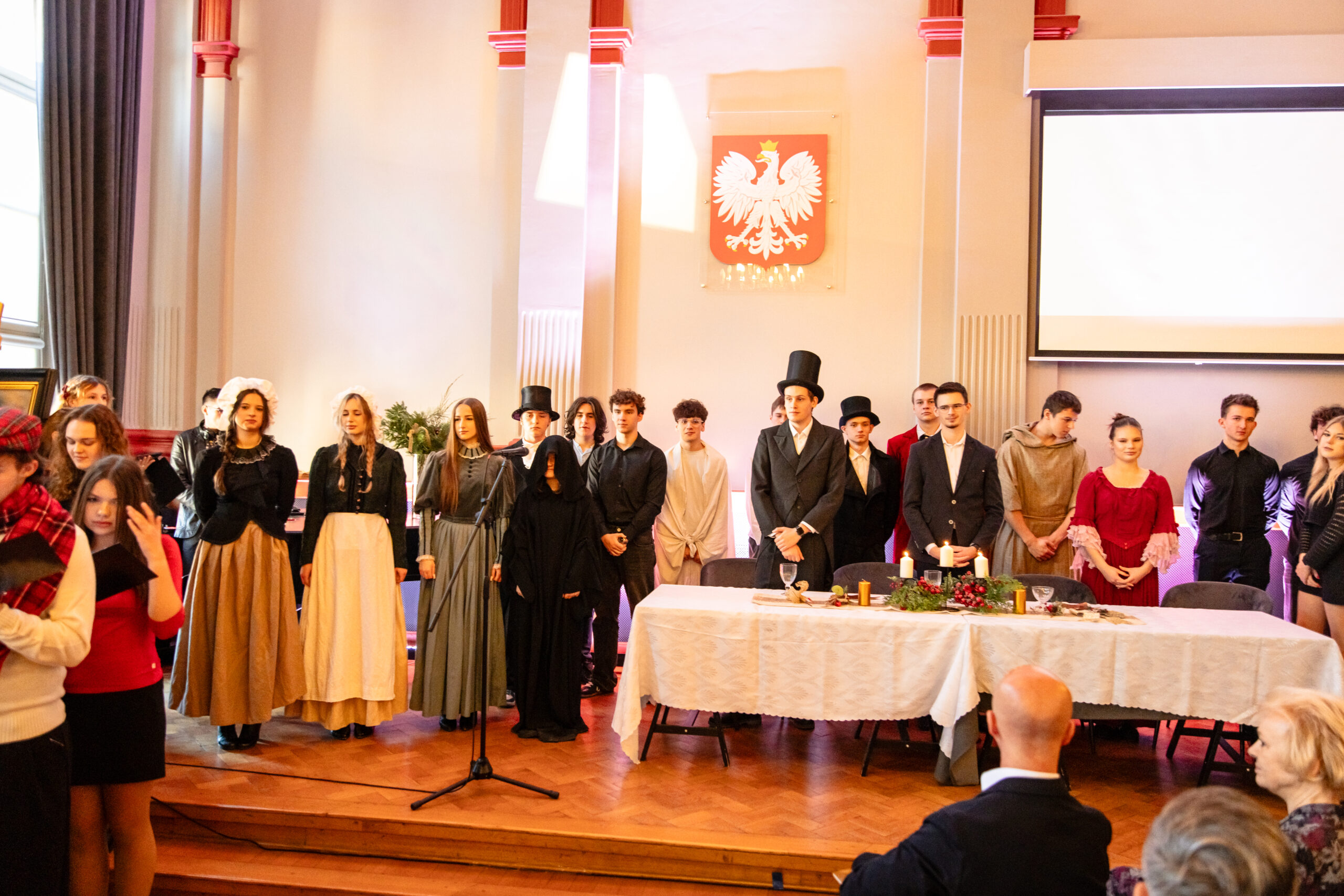 Na scenie mogliśmy podziwiać inscenizację „Opowieści wigilijnej” Charlesa Dickensa oraz występ chóru szkolnego, które wprowadziły nas w prawdziwie magiczny, świąteczny nastrój.