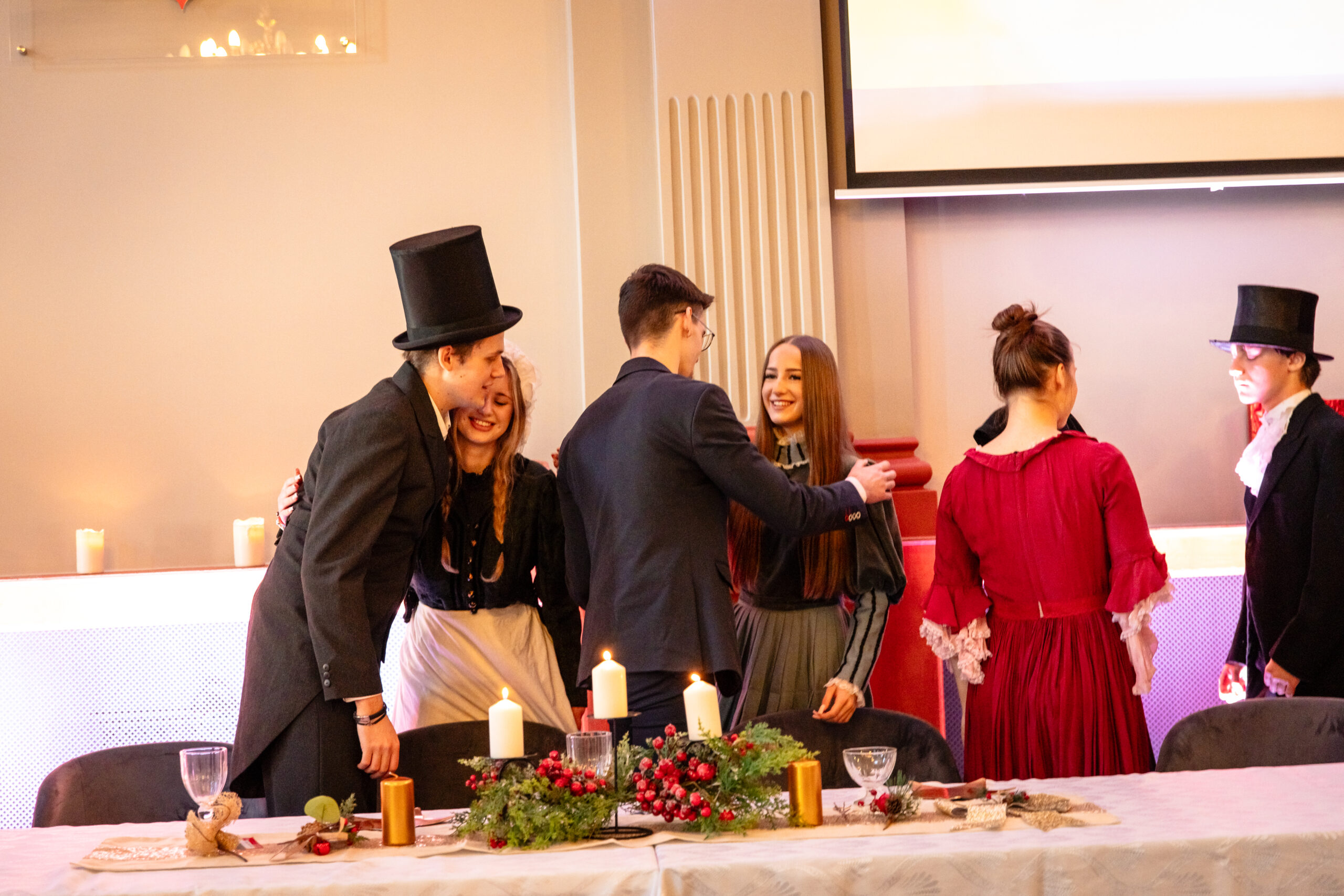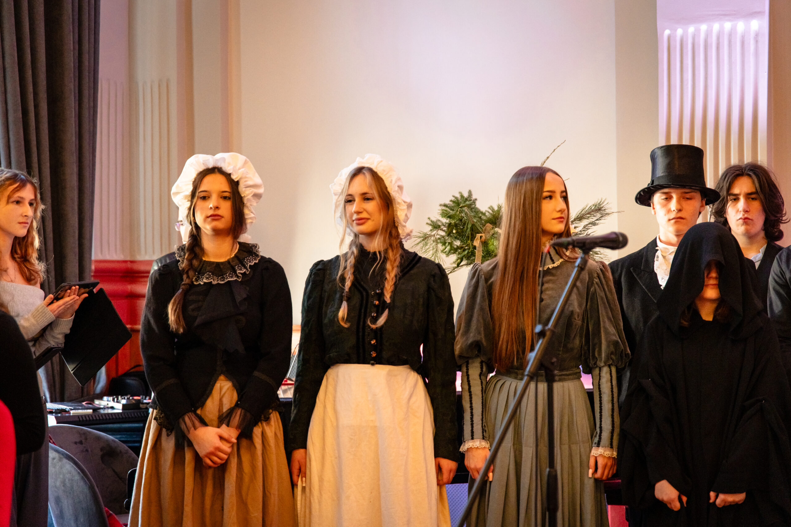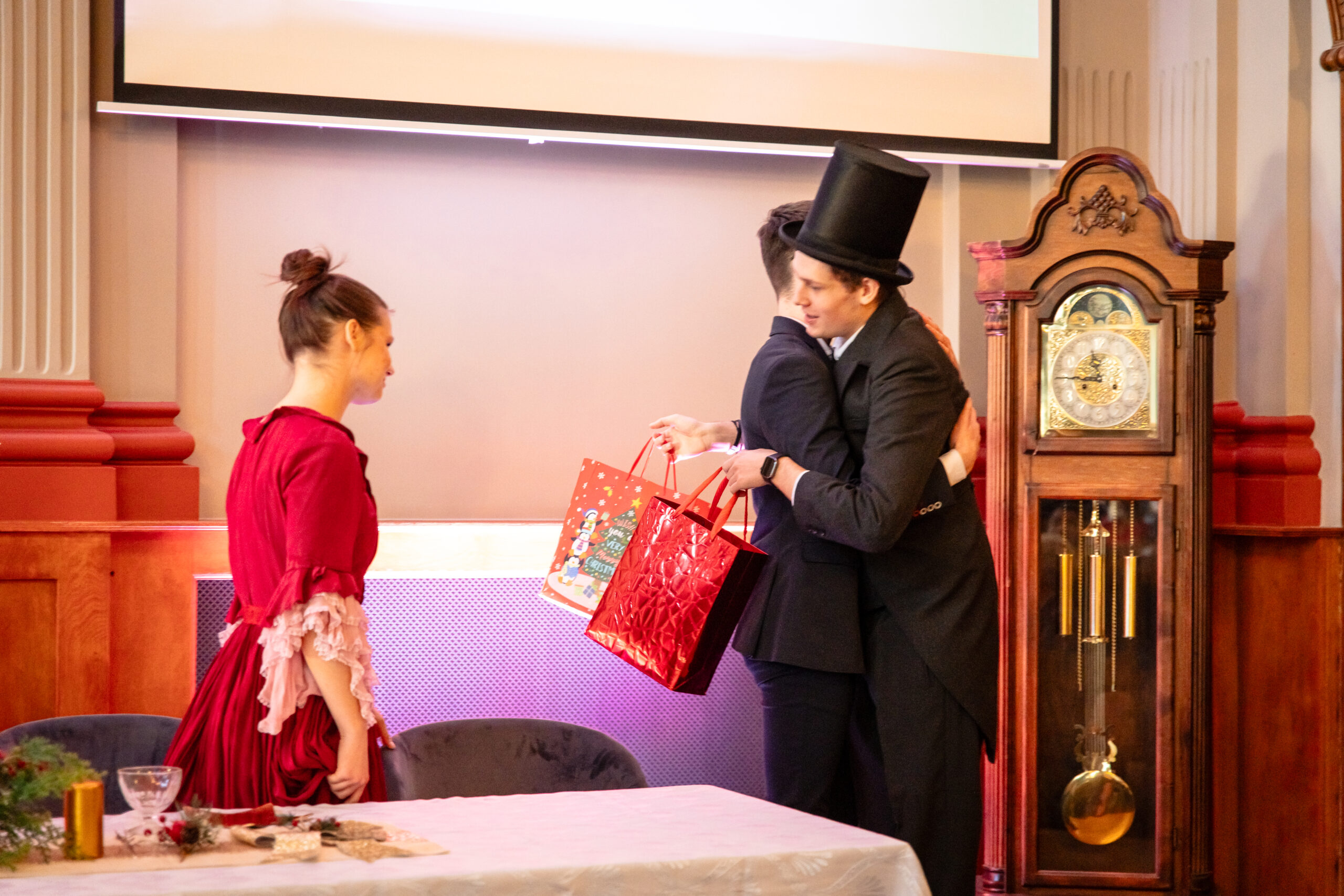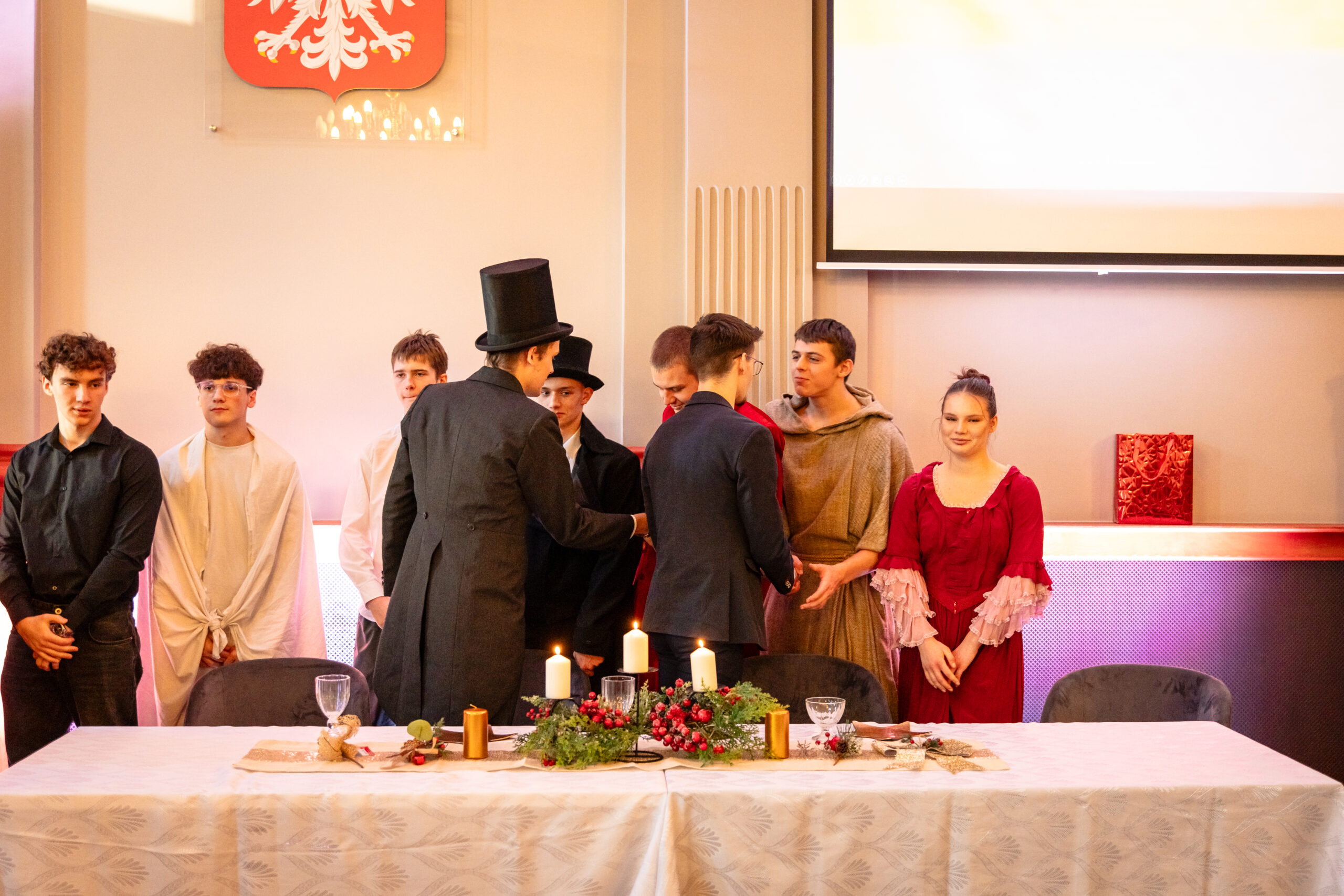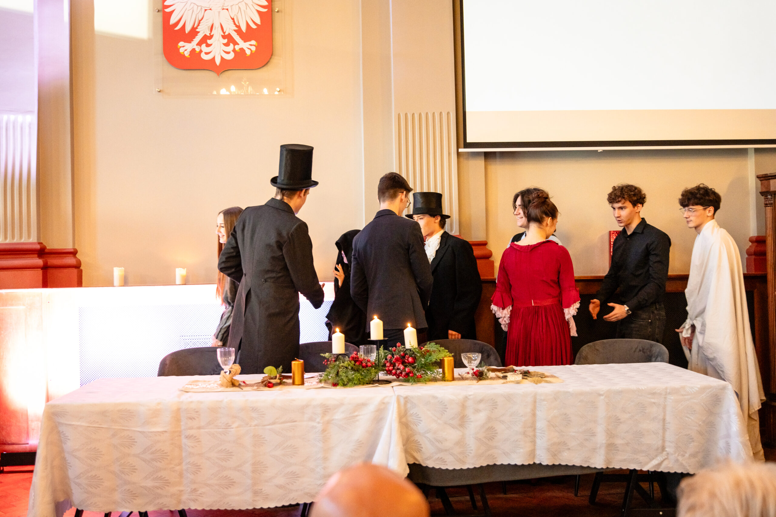 Na scenie mogliśmy podziwiać inscenizację „Opowieści wigilijnej” Charlesa Dickensa oraz występ chóru szkolnego, które wprowadziły nas w prawdziwie magiczny, świąteczny nastrój.