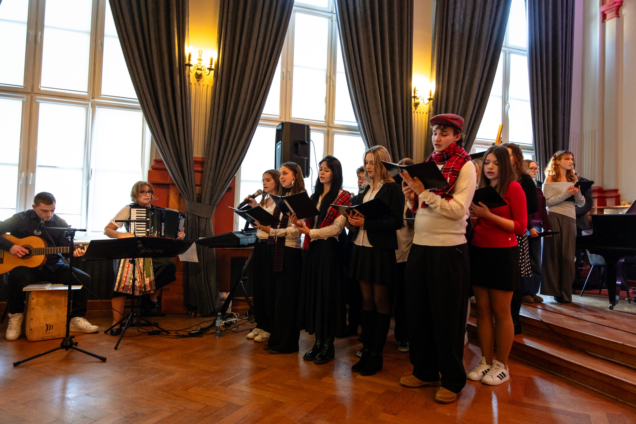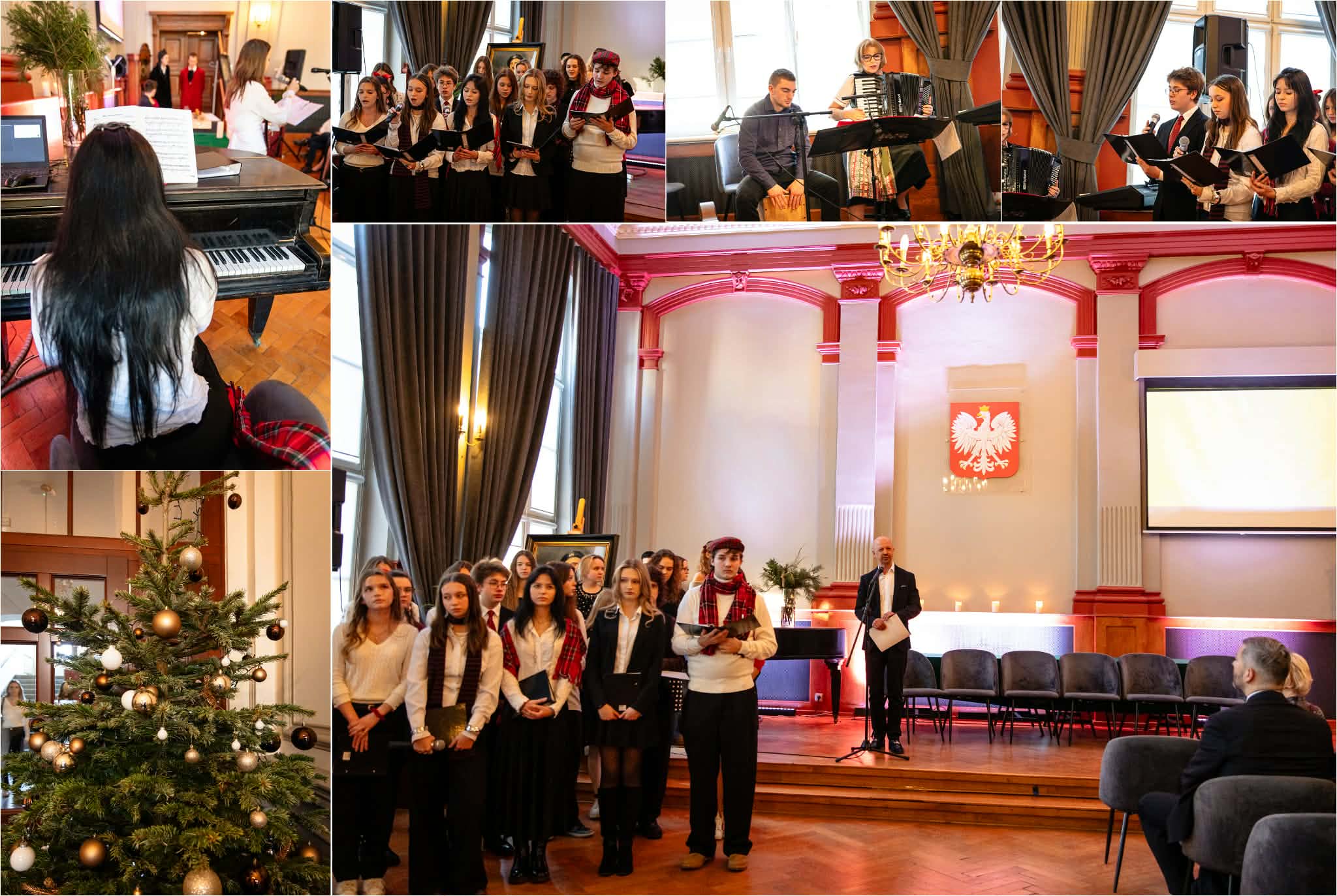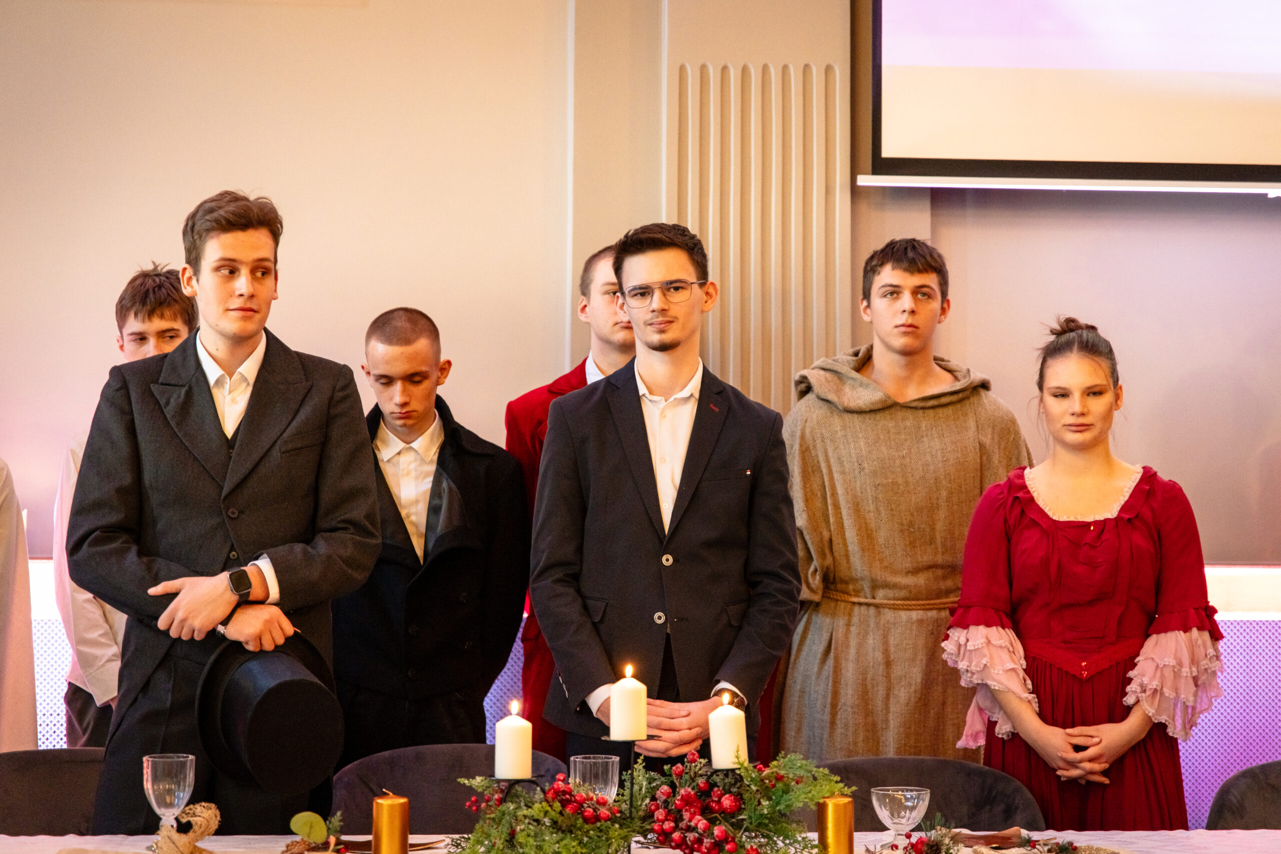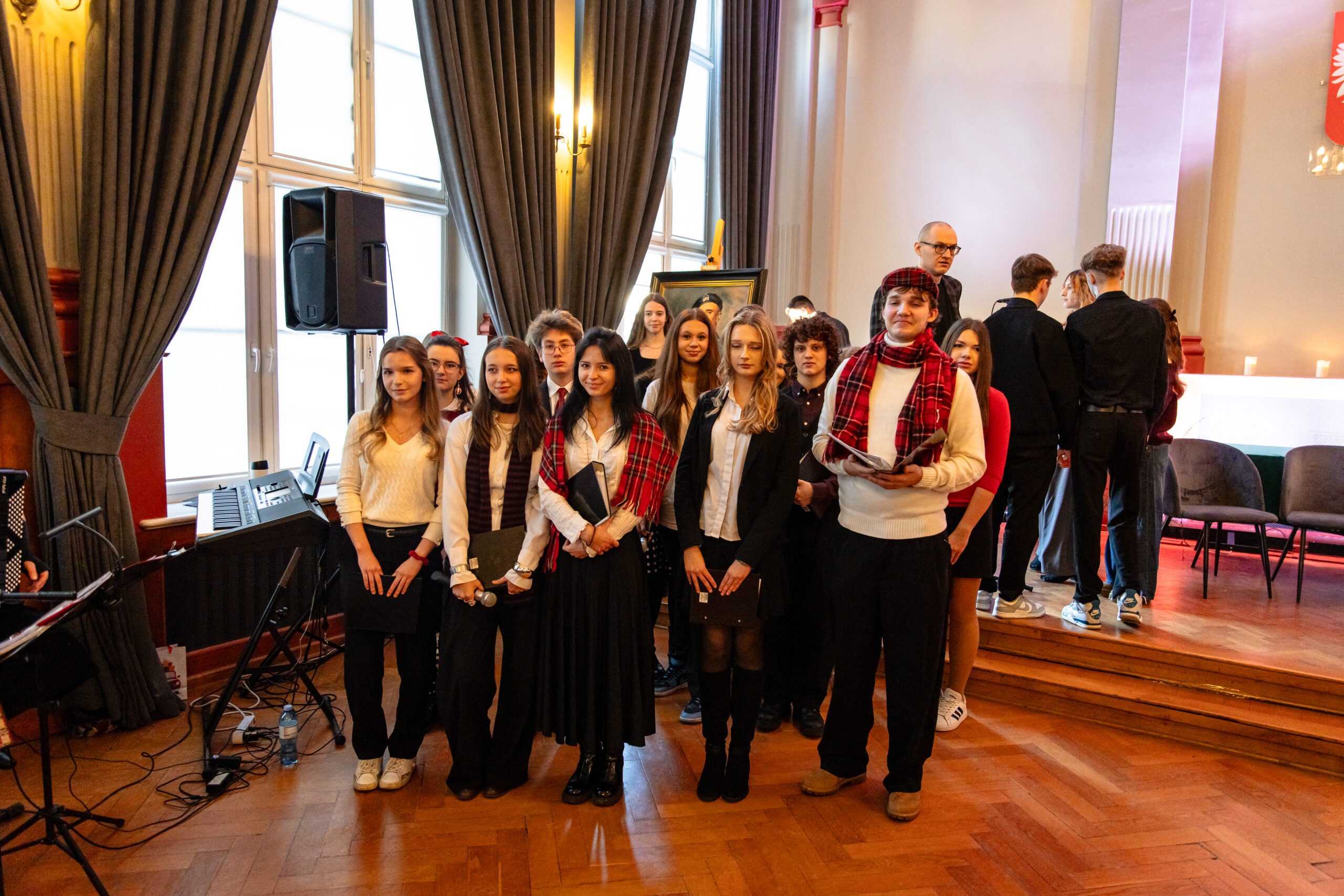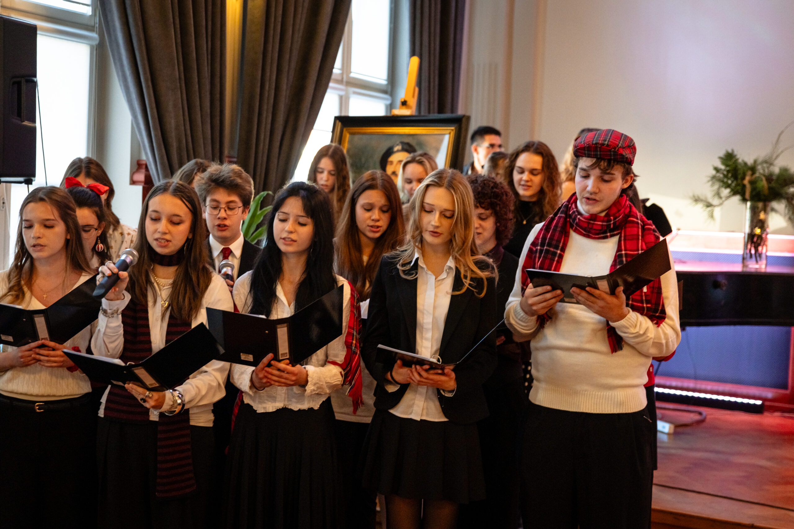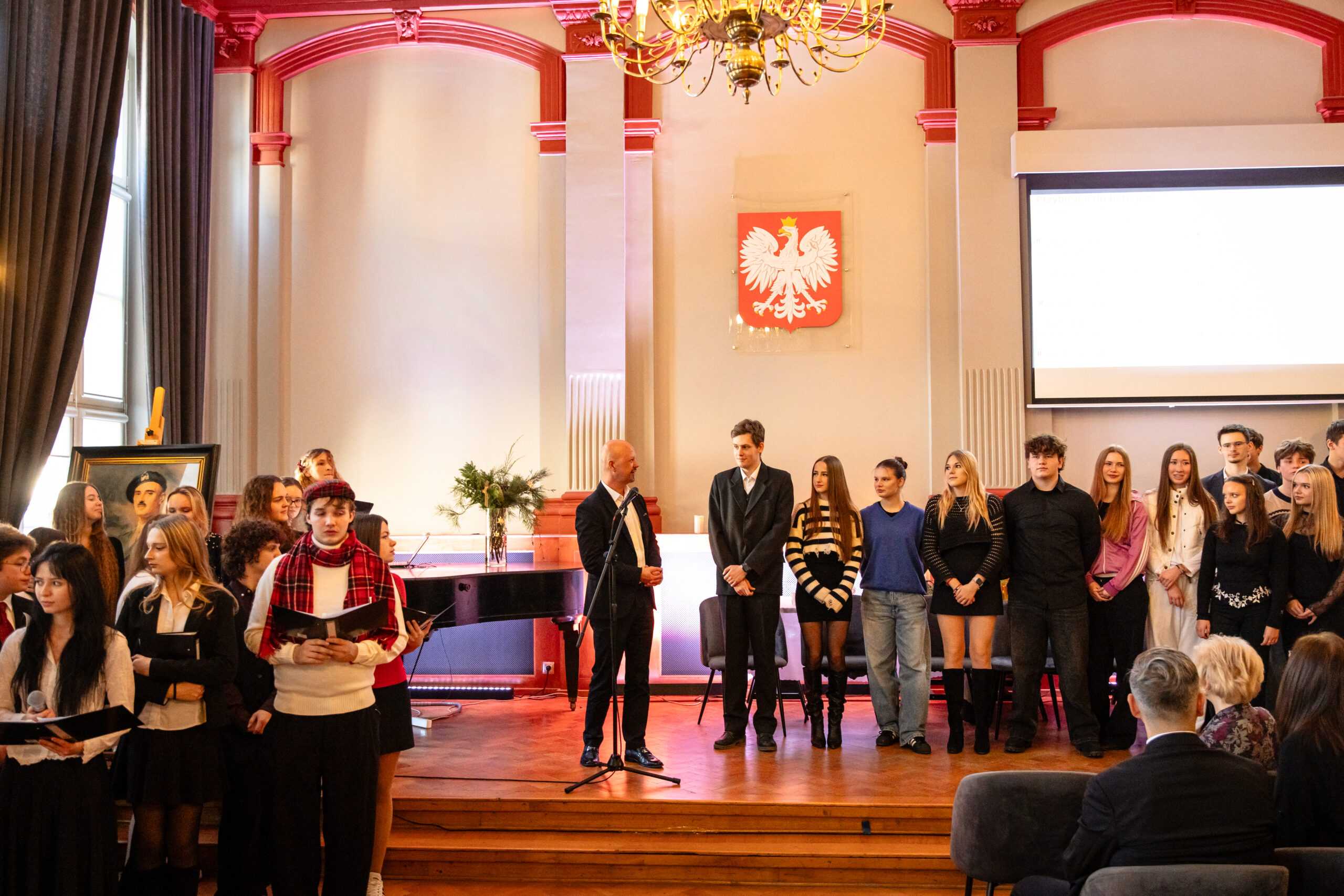 Na scenie mogliśmy podziwiać inscenizację „Opowieści wigilijnej” Charlesa Dickensa oraz występ chóru szkolnego, które wprowadziły nas w prawdziwie magiczny, świąteczny nastrój.