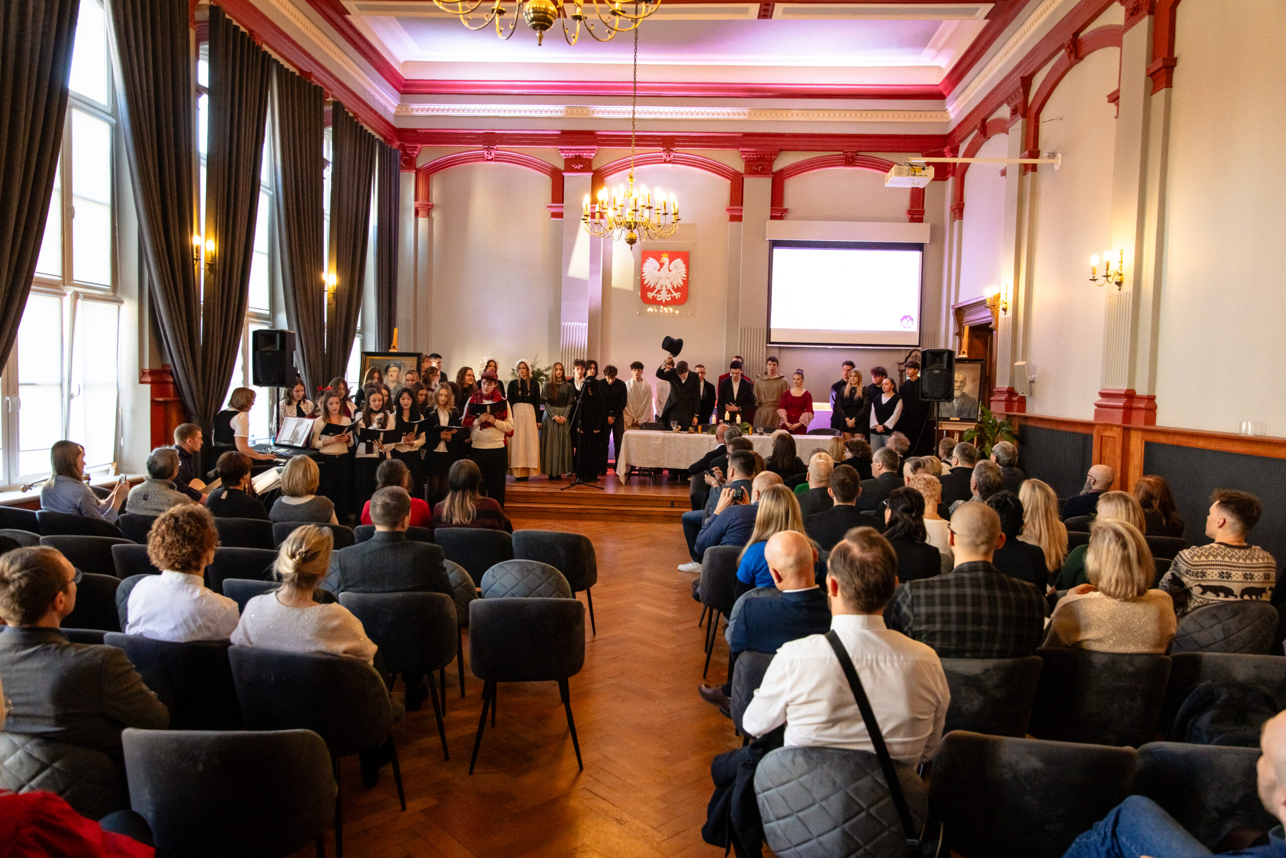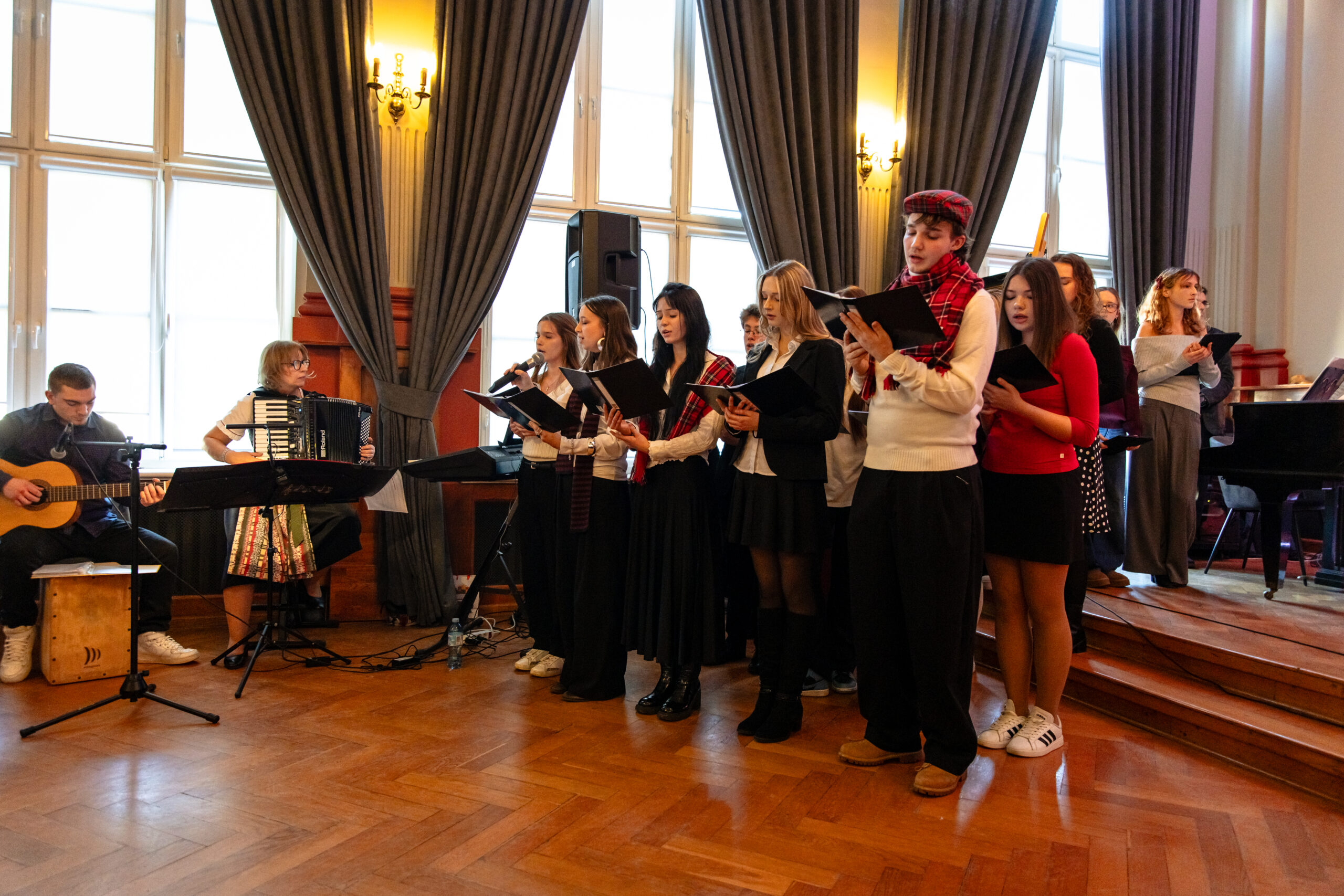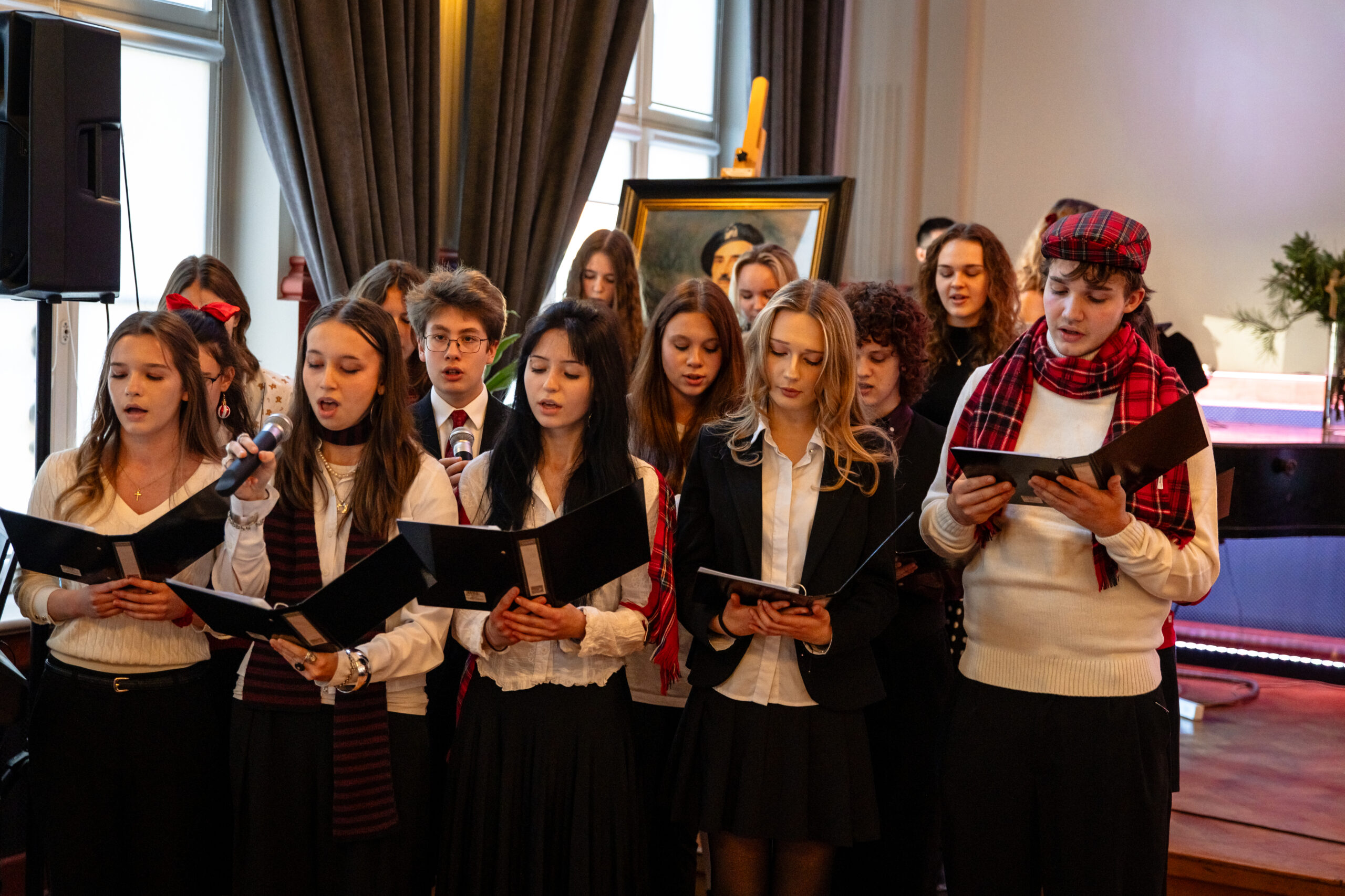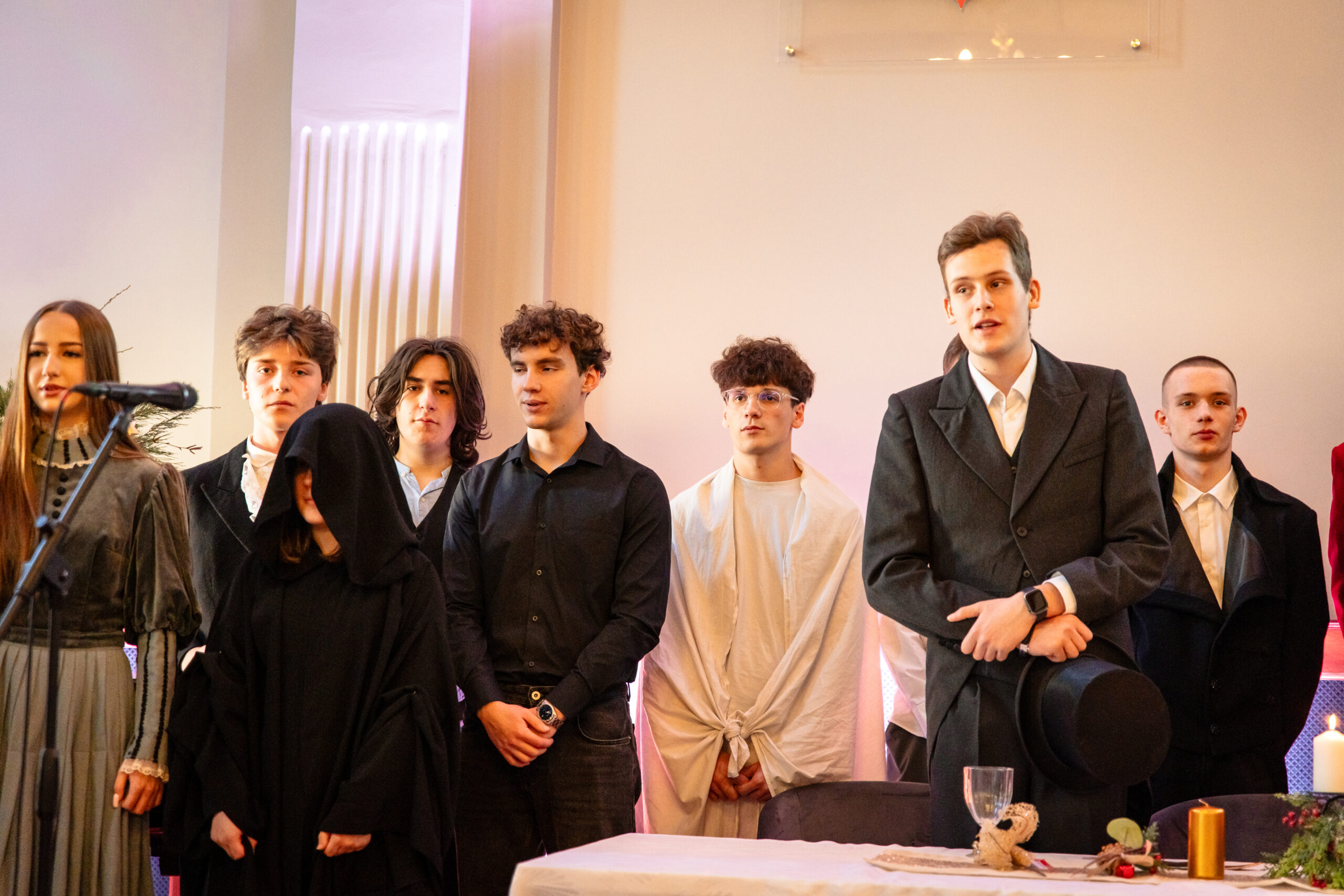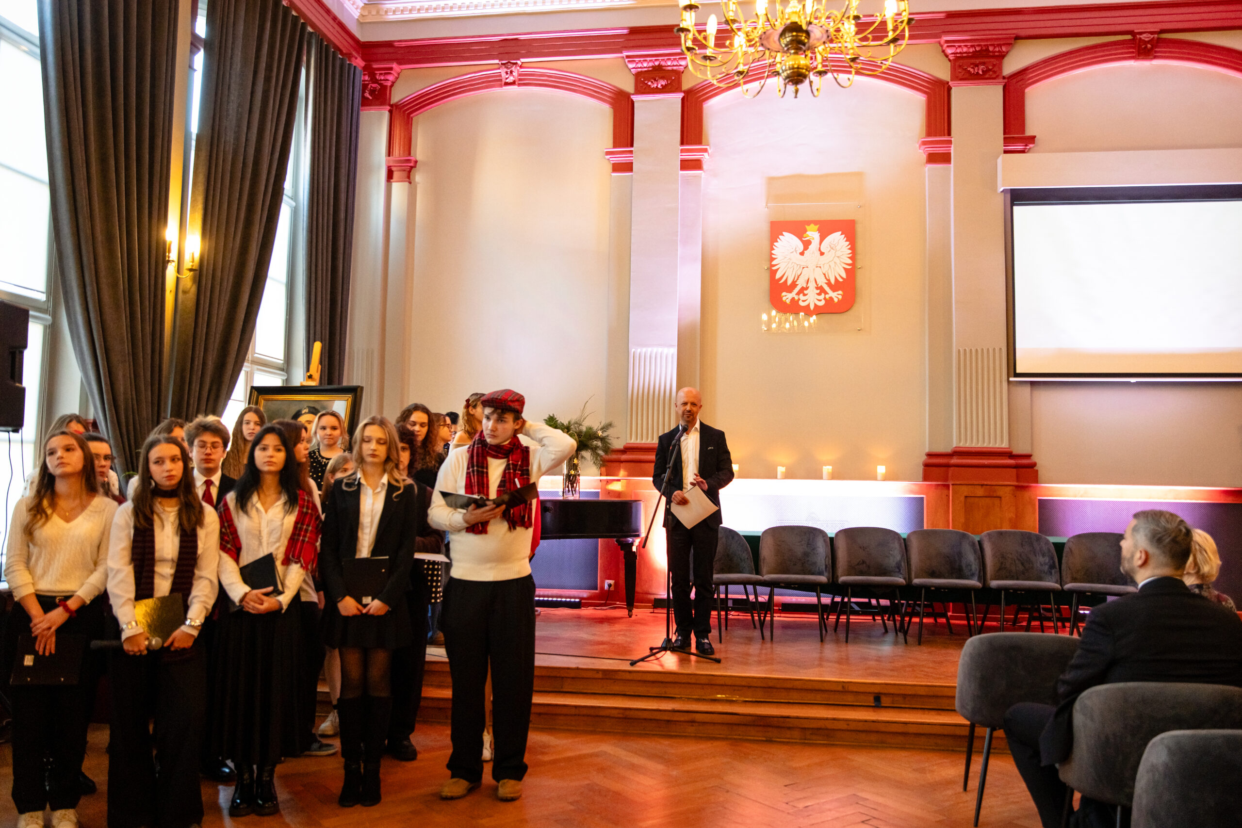 Na scenie mogliśmy podziwiać inscenizację „Opowieści wigilijnej” Charlesa Dickensa oraz występ chóru szkolnego, które wprowadziły nas w prawdziwie magiczny, świąteczny nastrój.