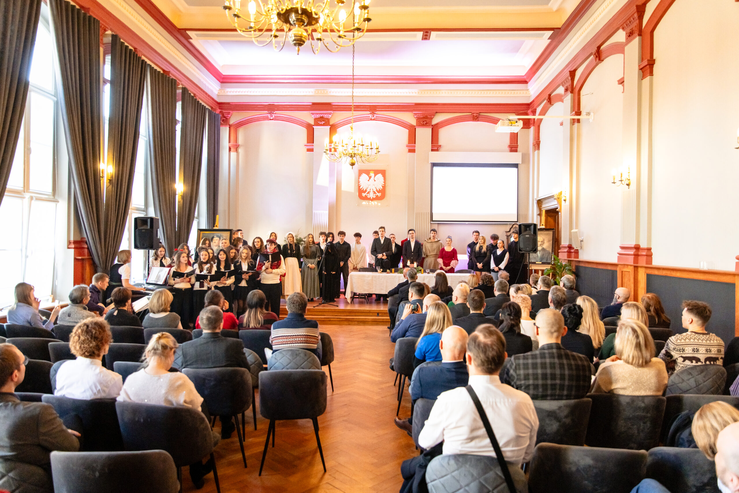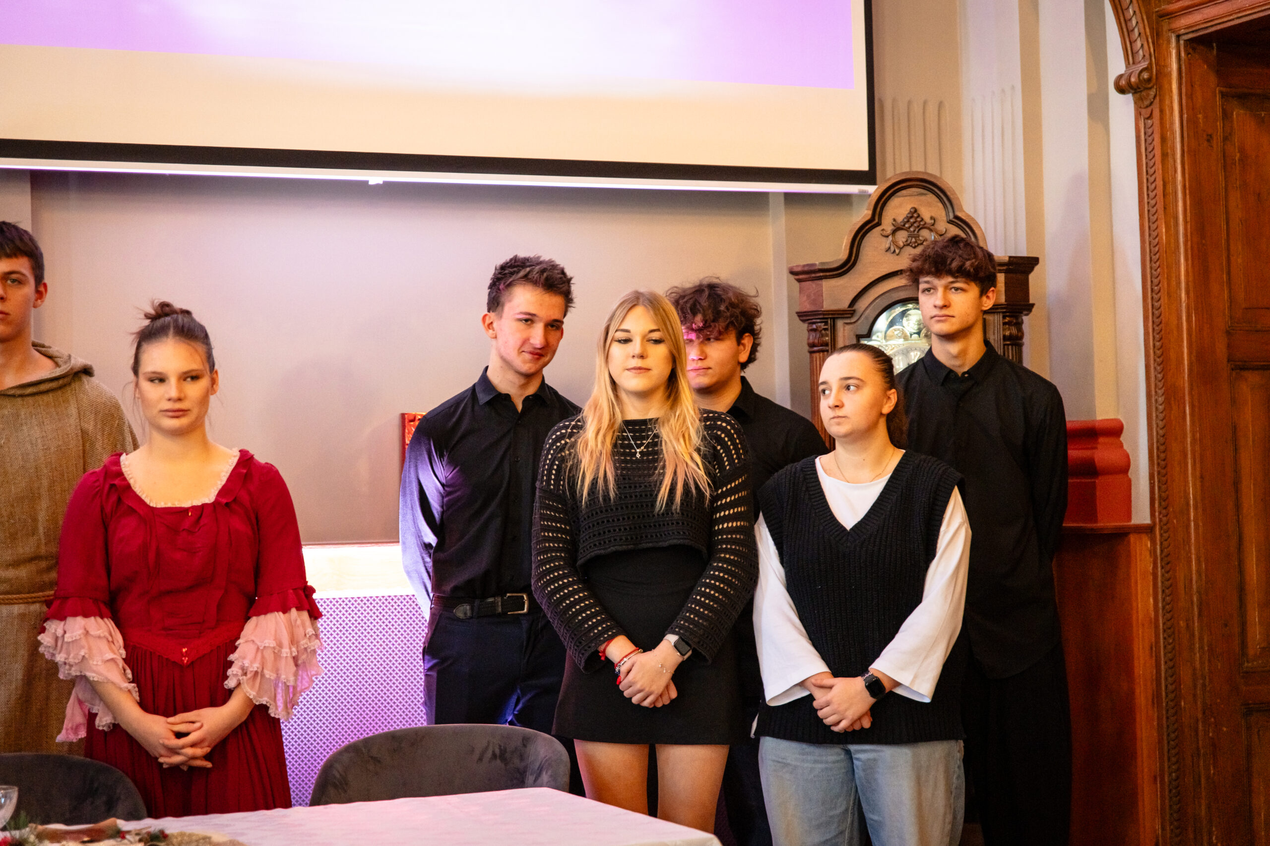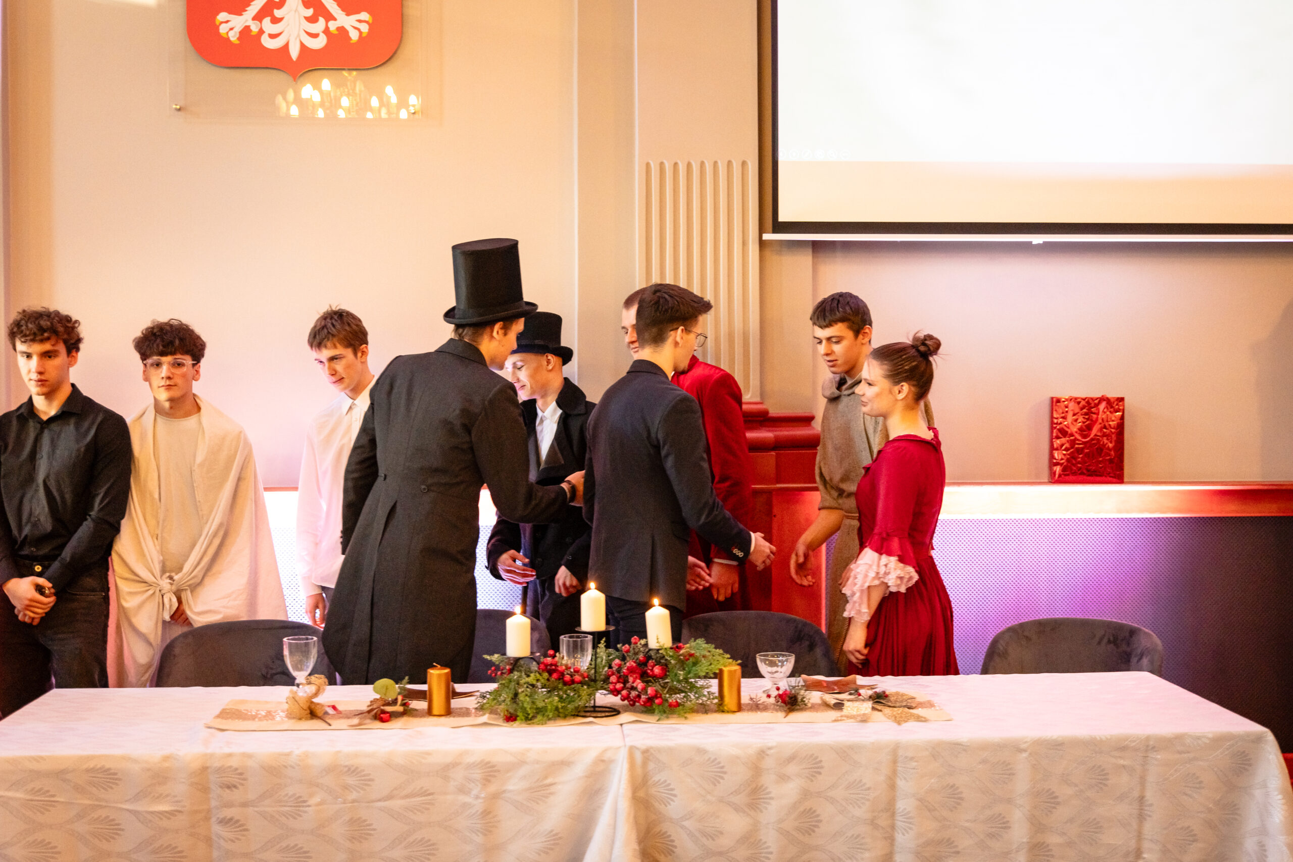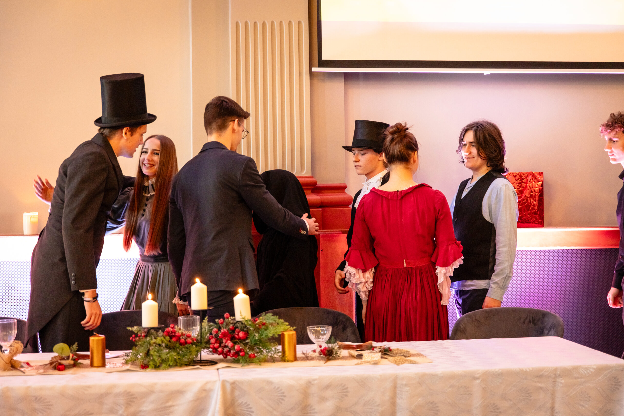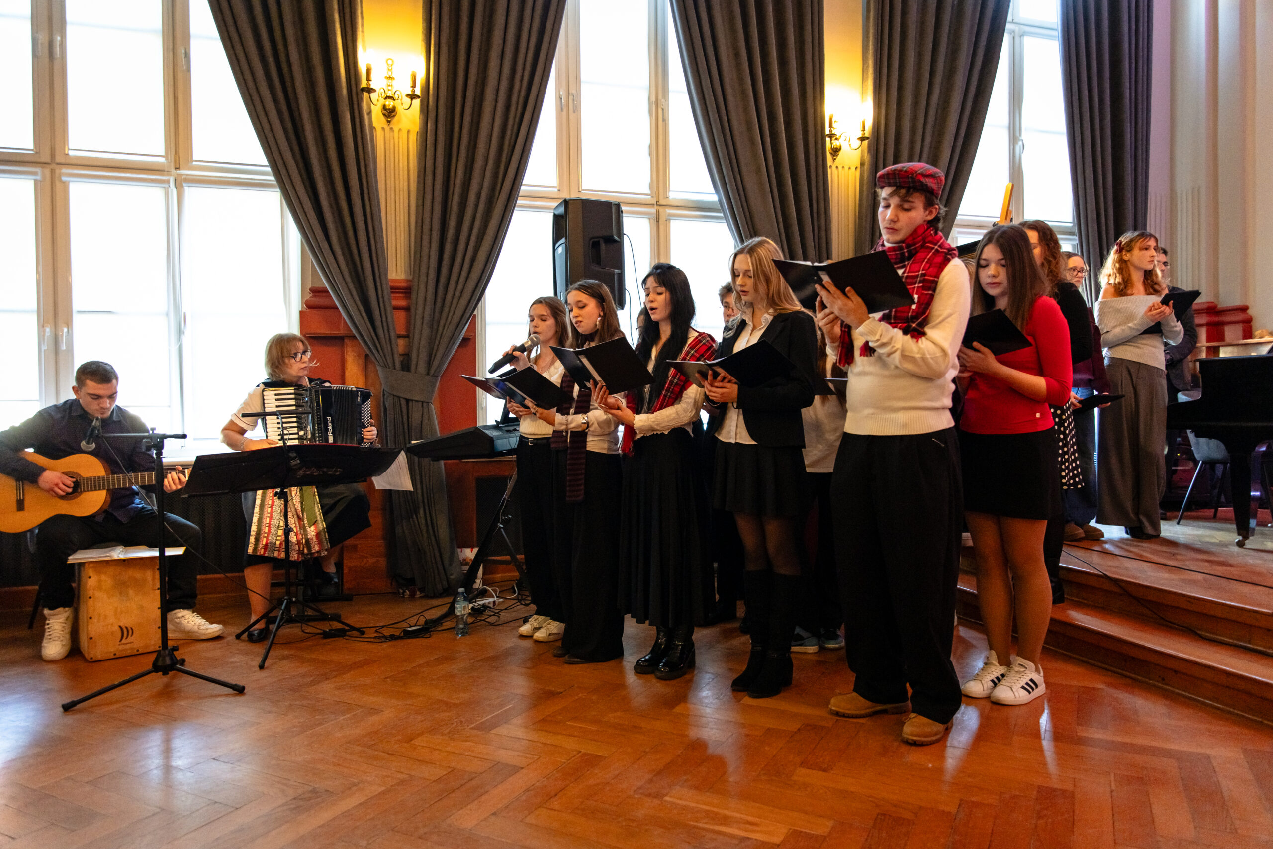 Na scenie mogliśmy podziwiać inscenizację „Opowieści wigilijnej” Charlesa Dickensa oraz występ chóru szkolnego, które wprowadziły nas w prawdziwie magiczny, świąteczny nastrój.