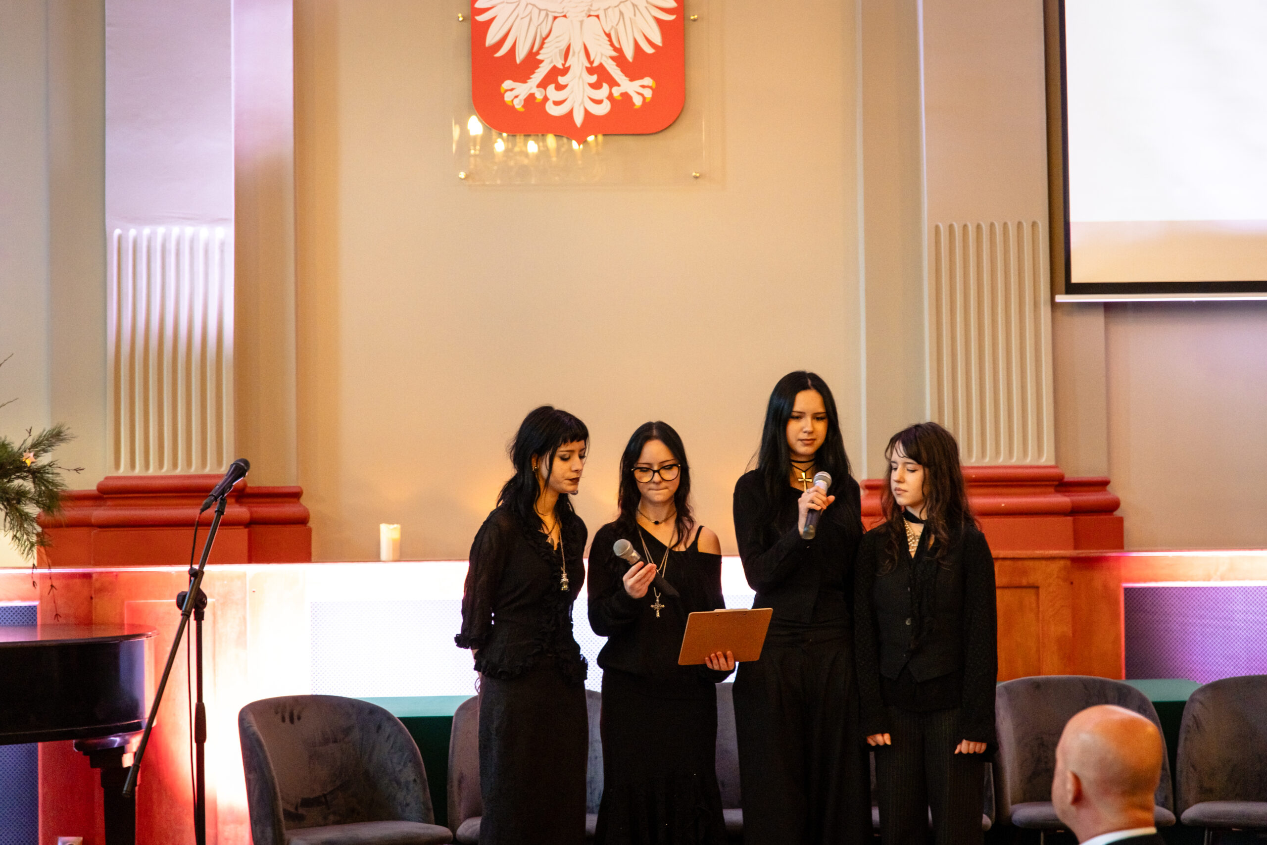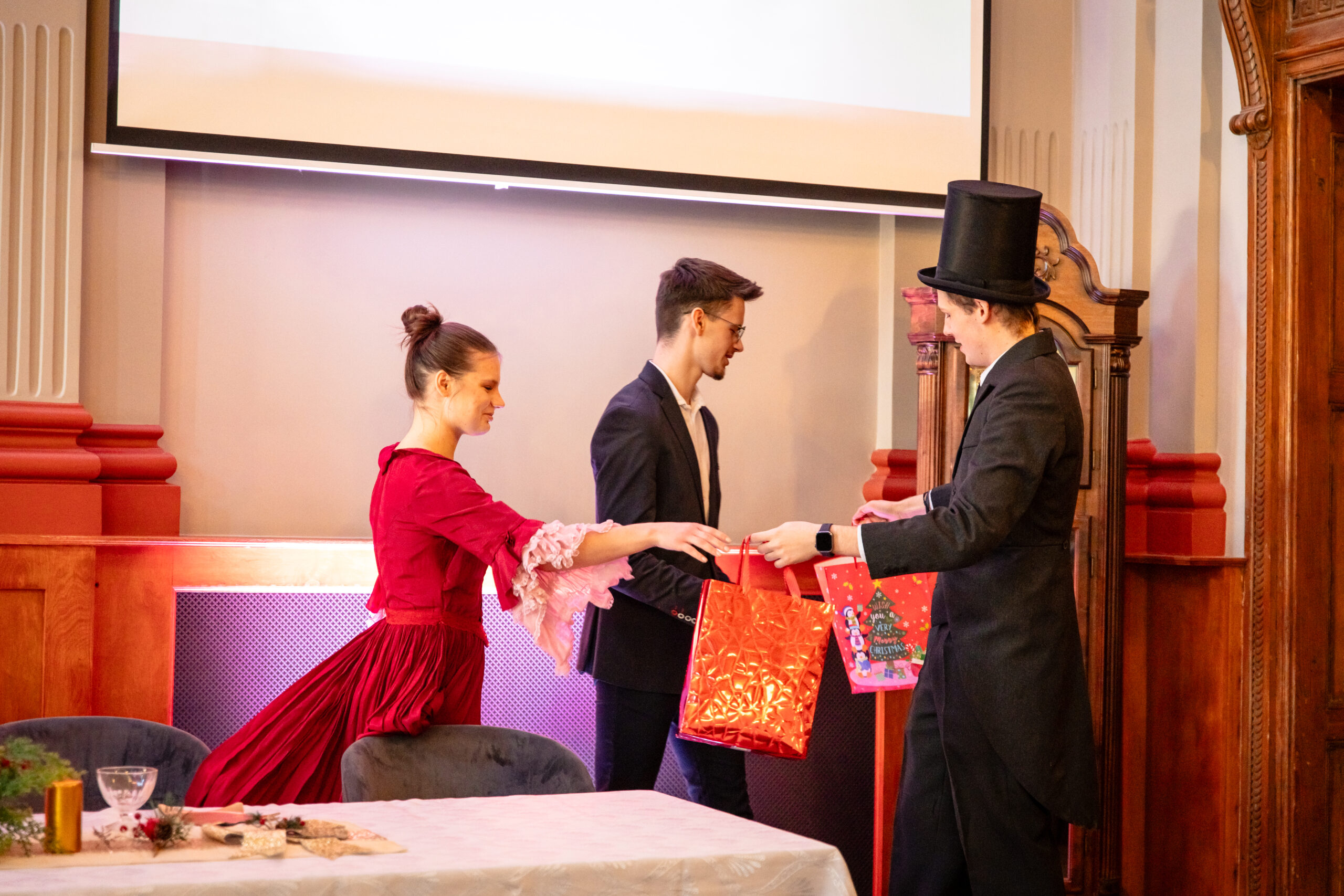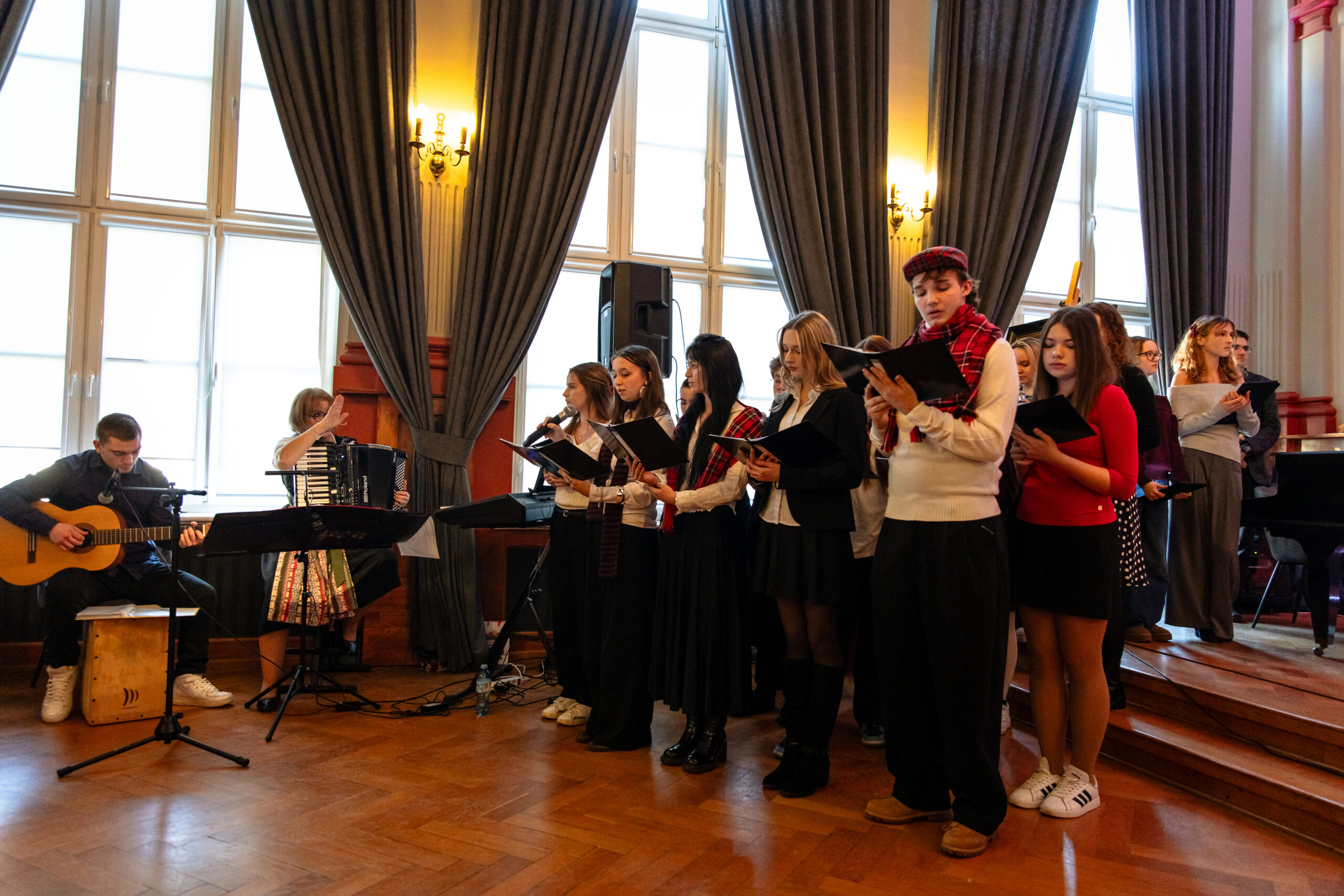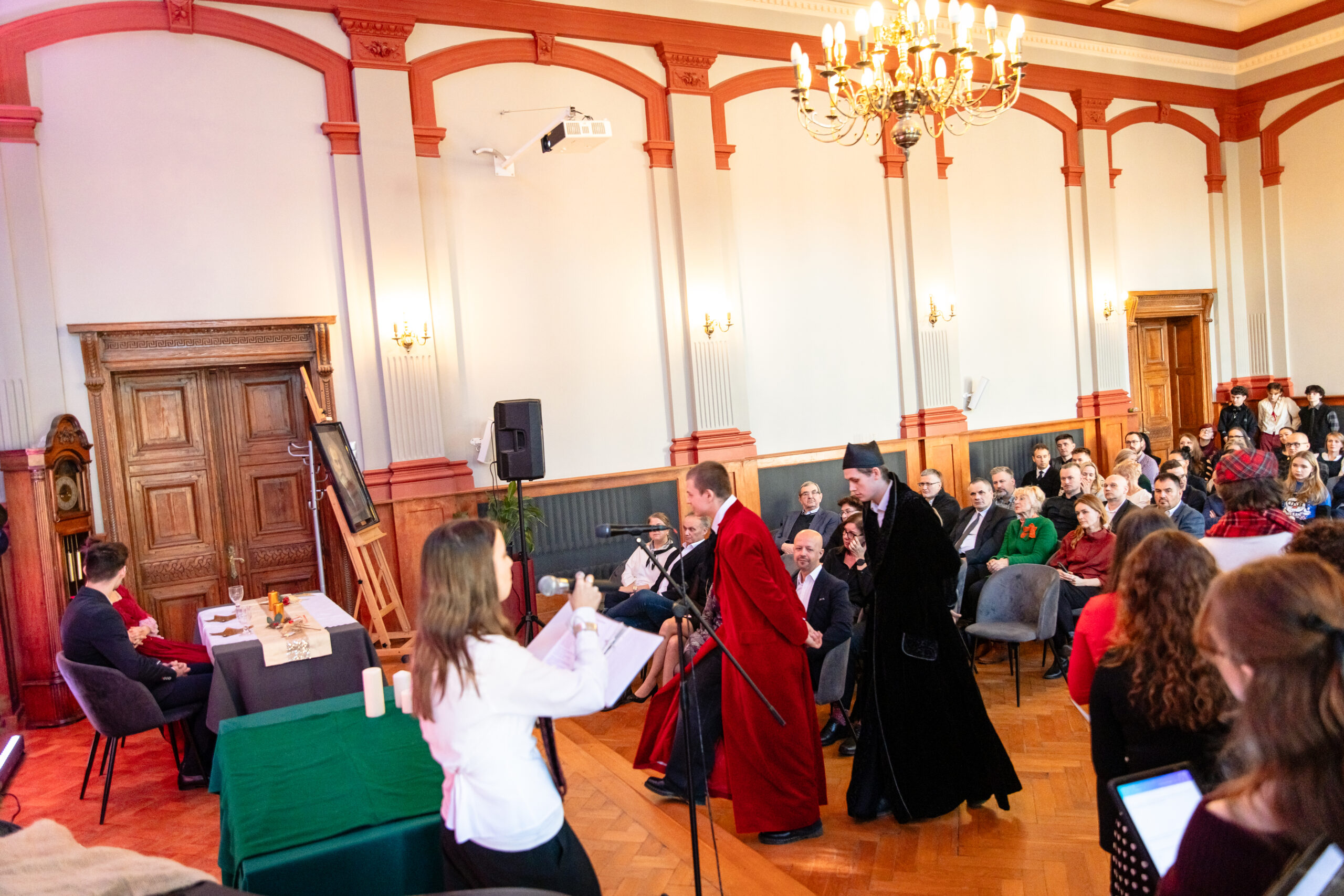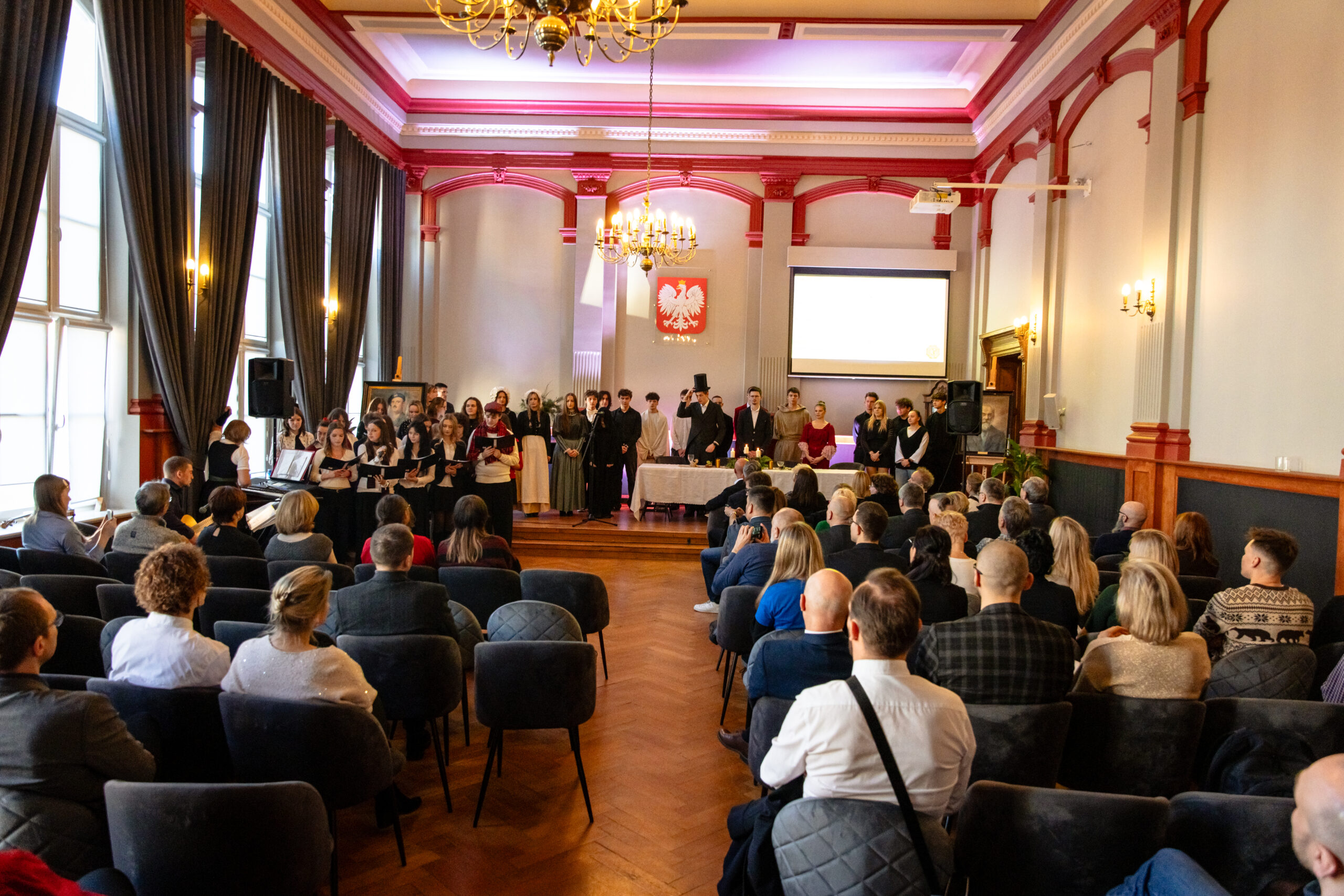 Na scenie mogliśmy podziwiać inscenizację „Opowieści wigilijnej” Charlesa Dickensa oraz występ chóru szkolnego, które wprowadziły nas w prawdziwie magiczny, świąteczny nastrój.