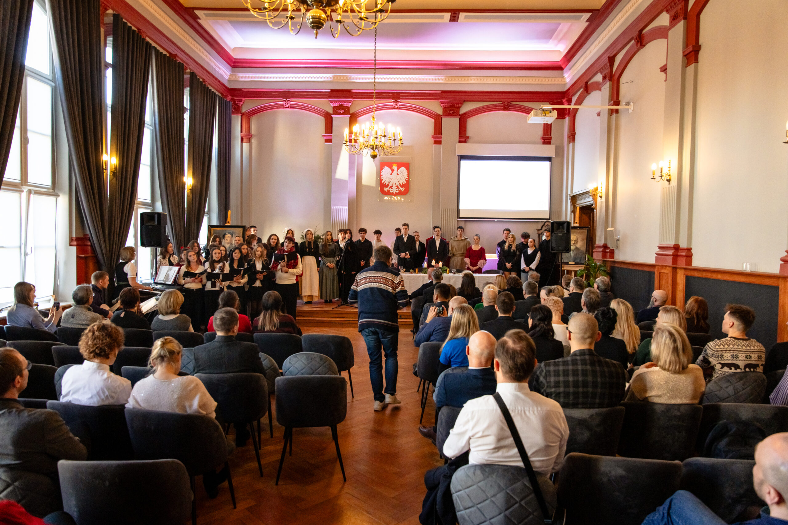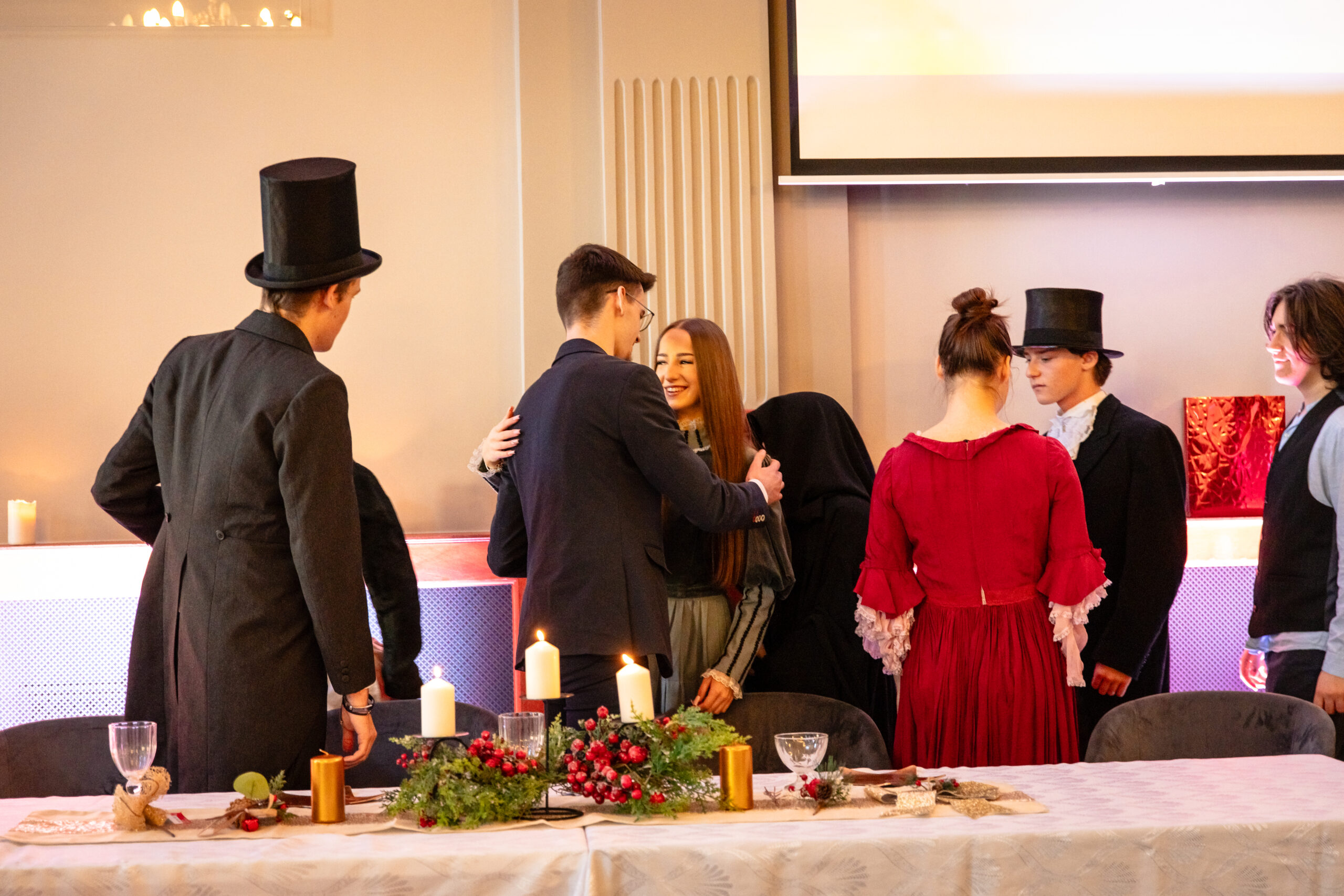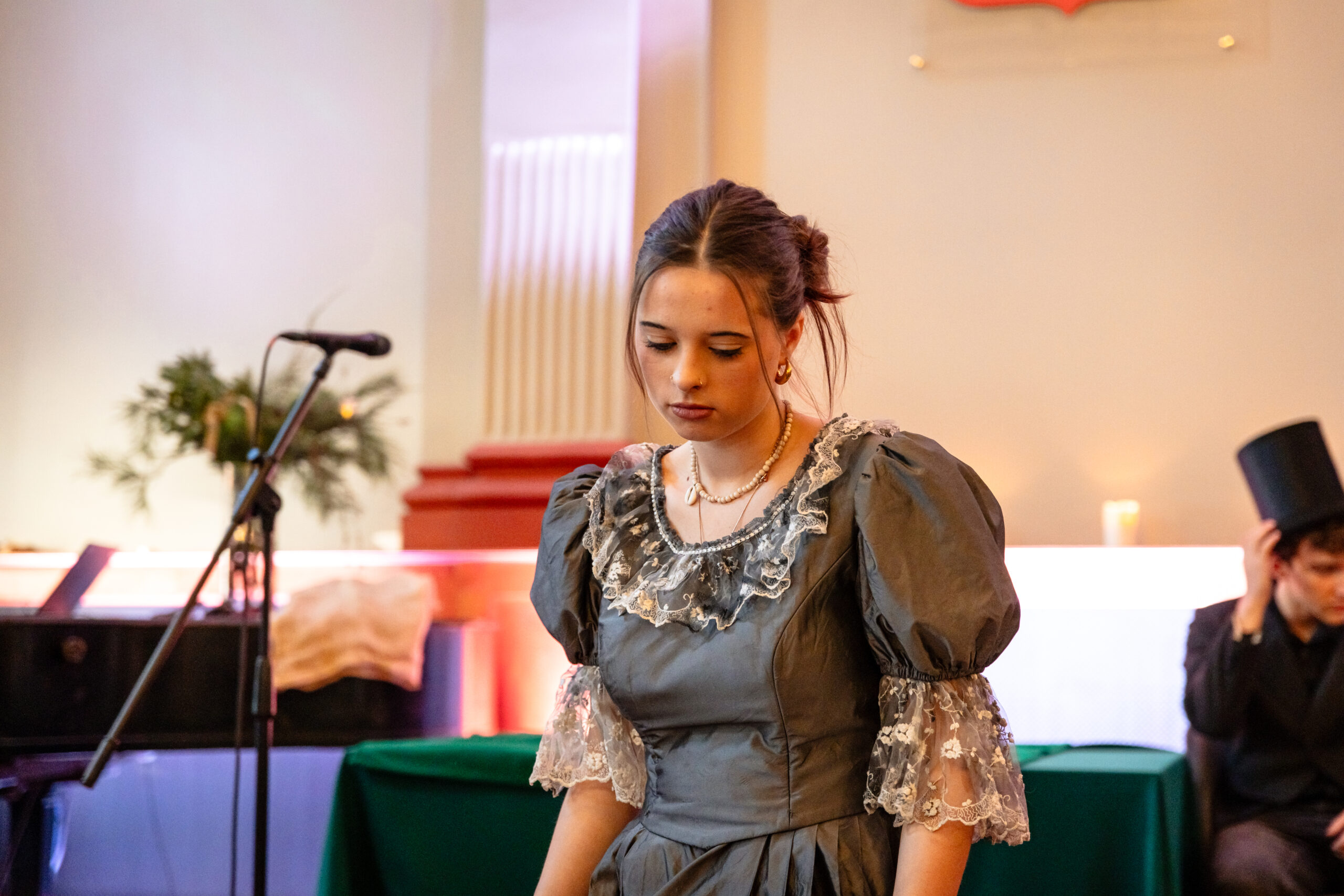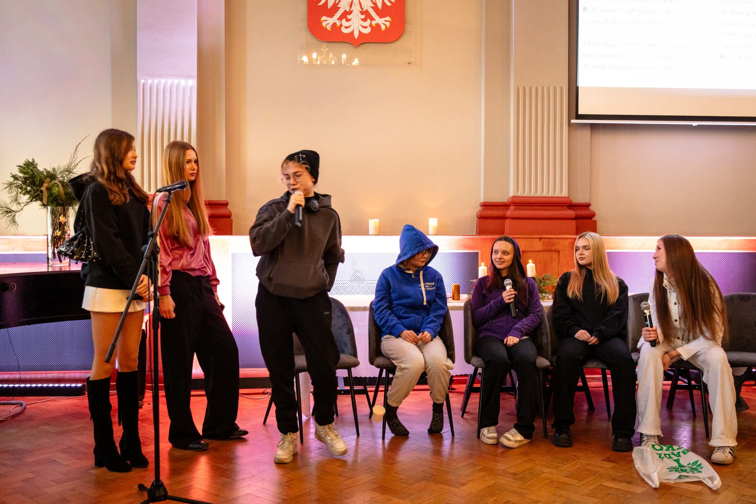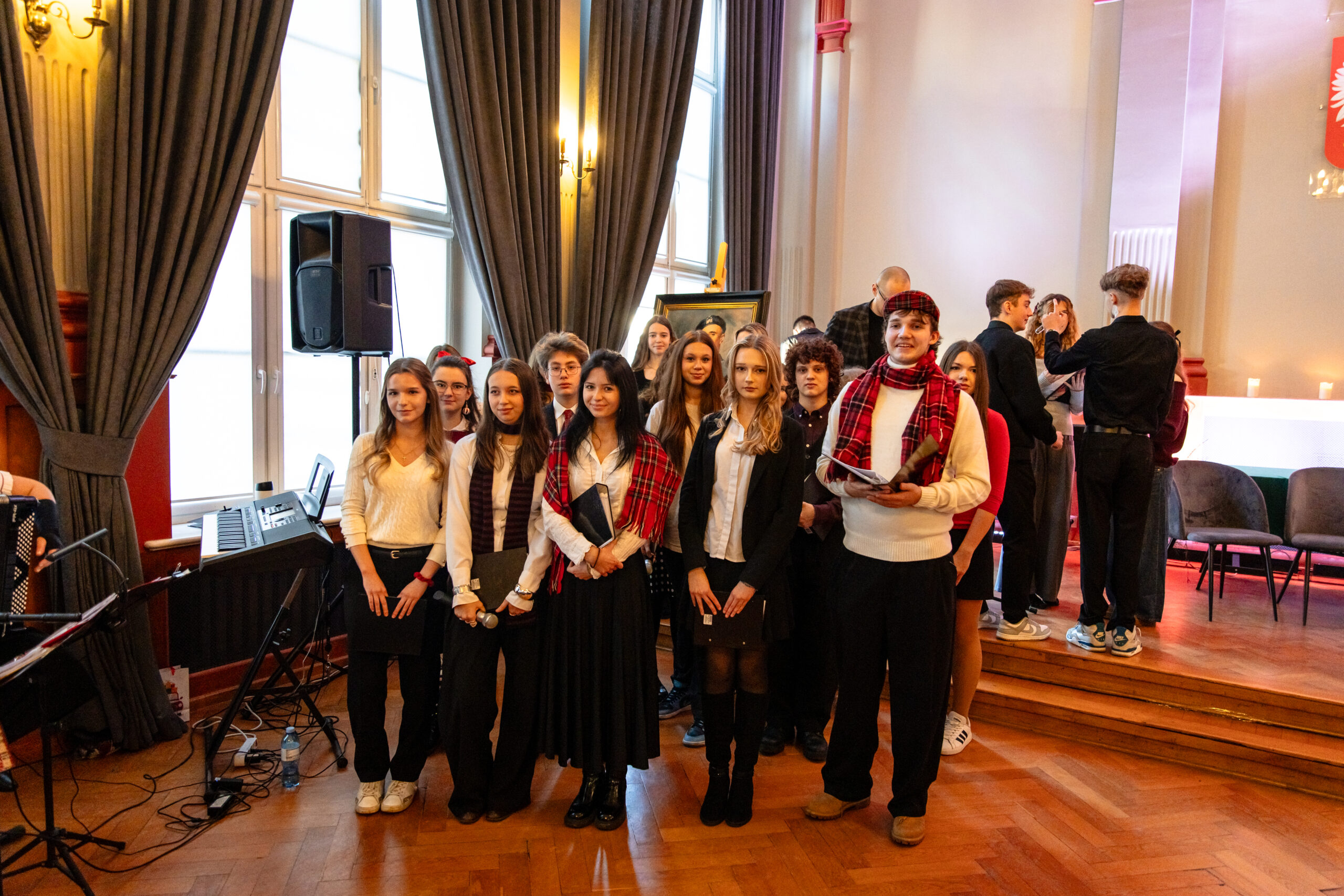 Na scenie mogliśmy podziwiać inscenizację „Opowieści wigilijnej” Charlesa Dickensa oraz występ chóru szkolnego, które wprowadziły nas w prawdziwie magiczny, świąteczny nastrój.