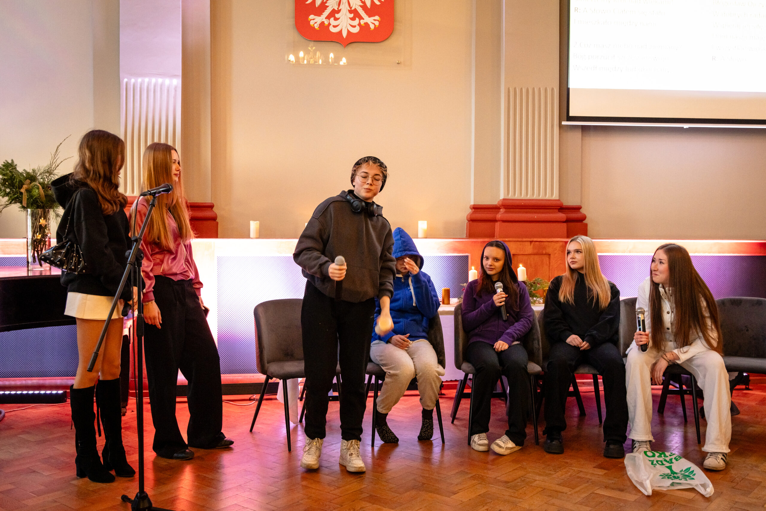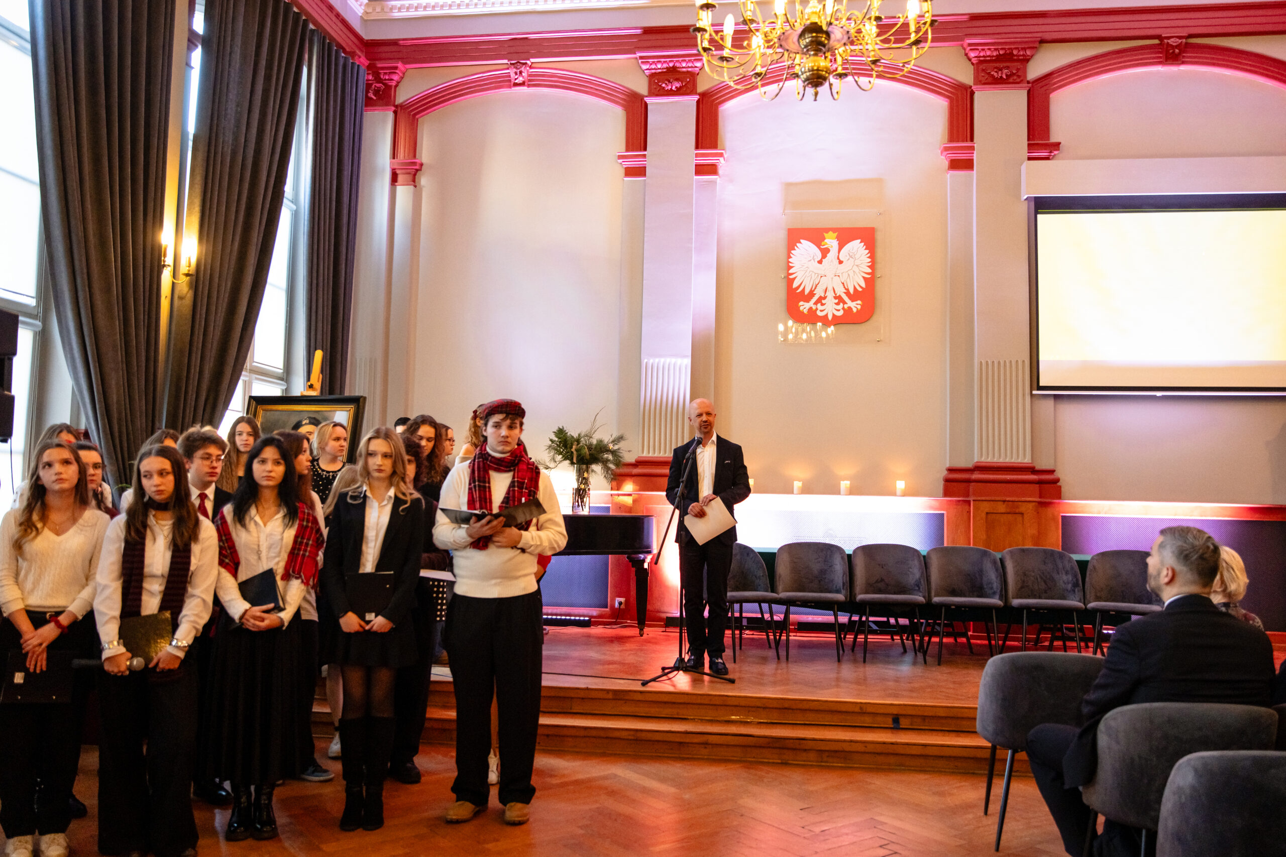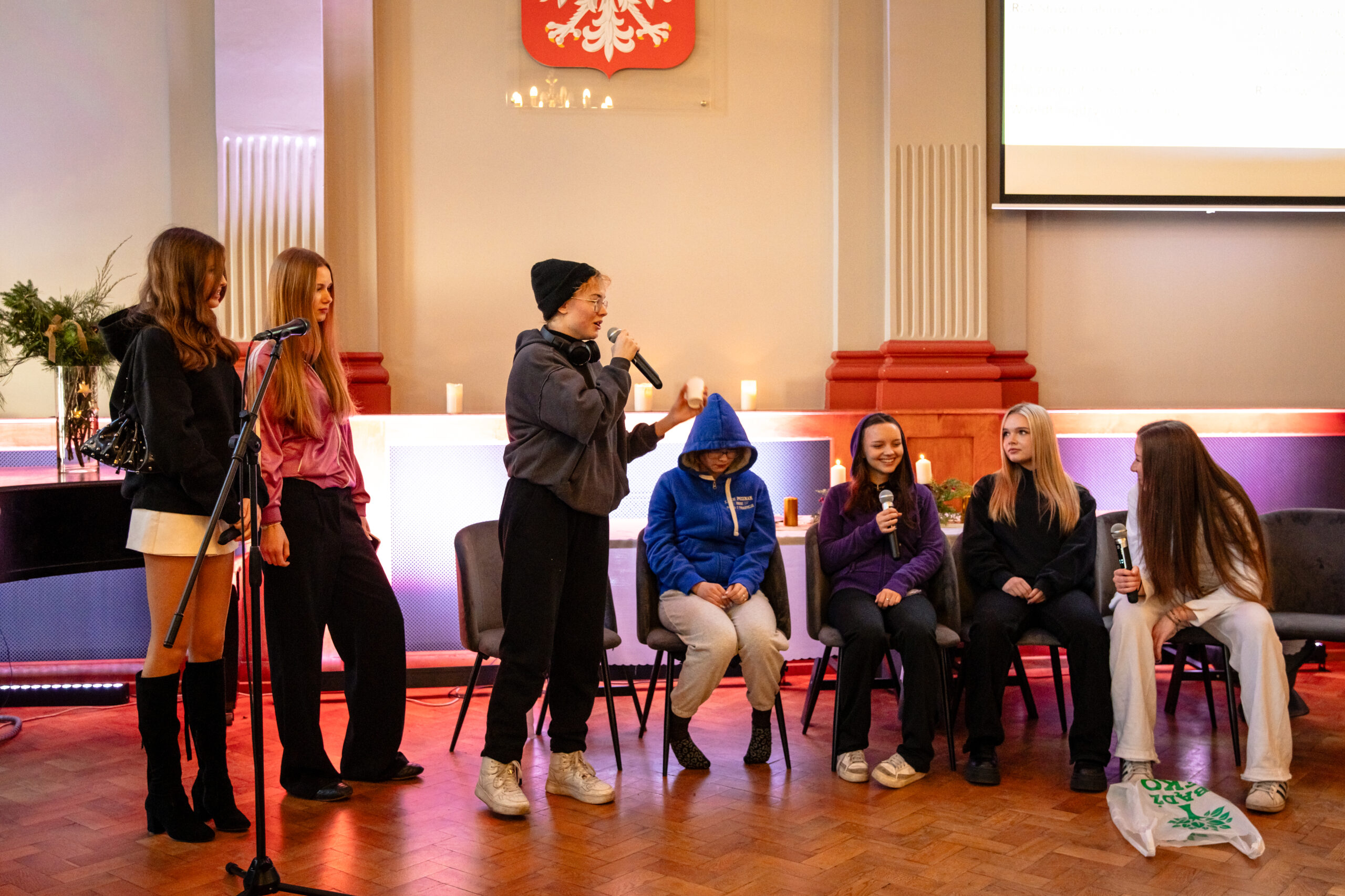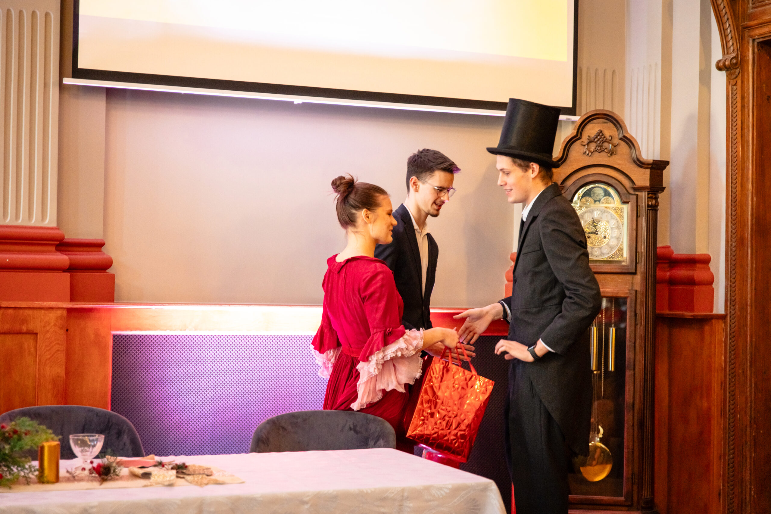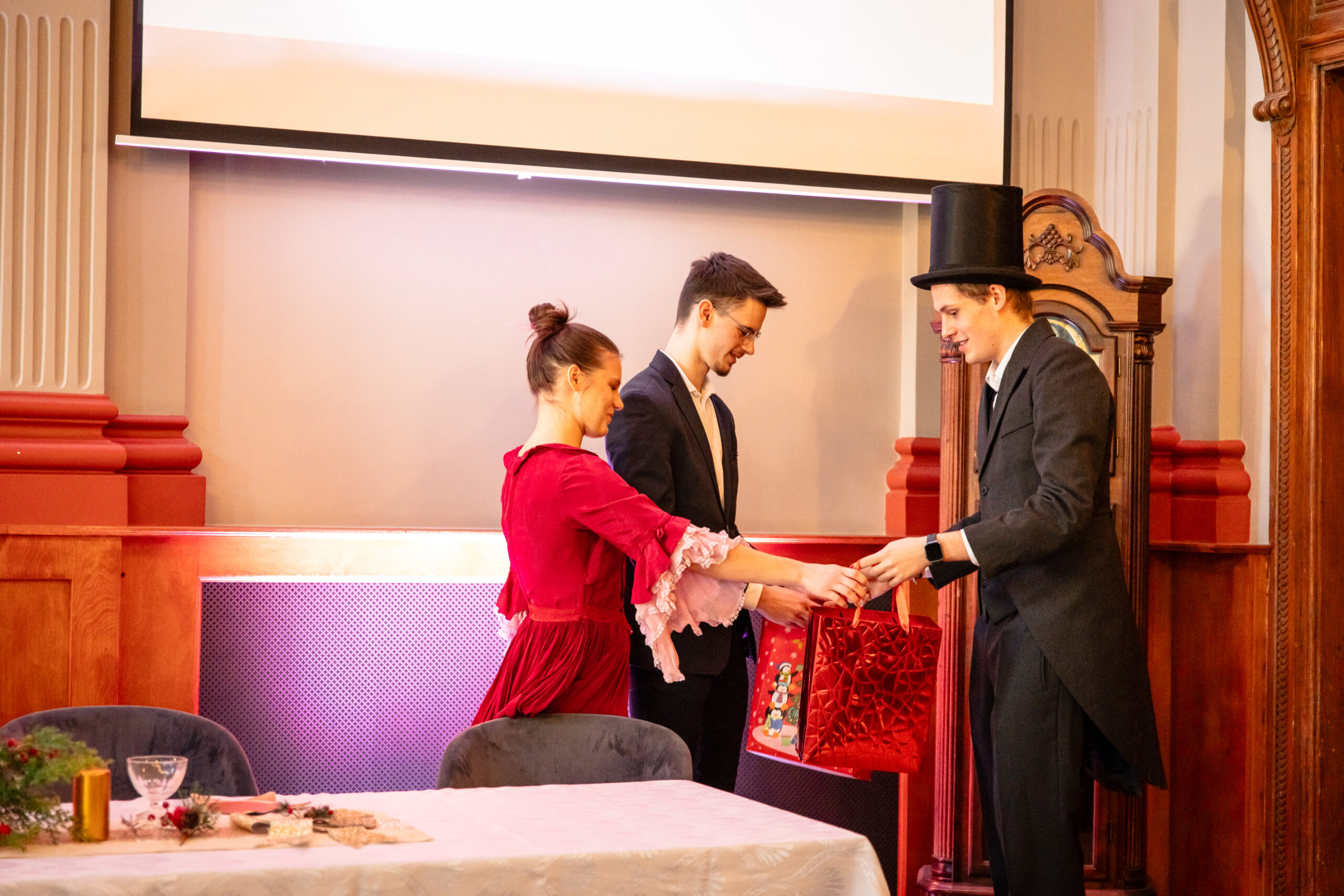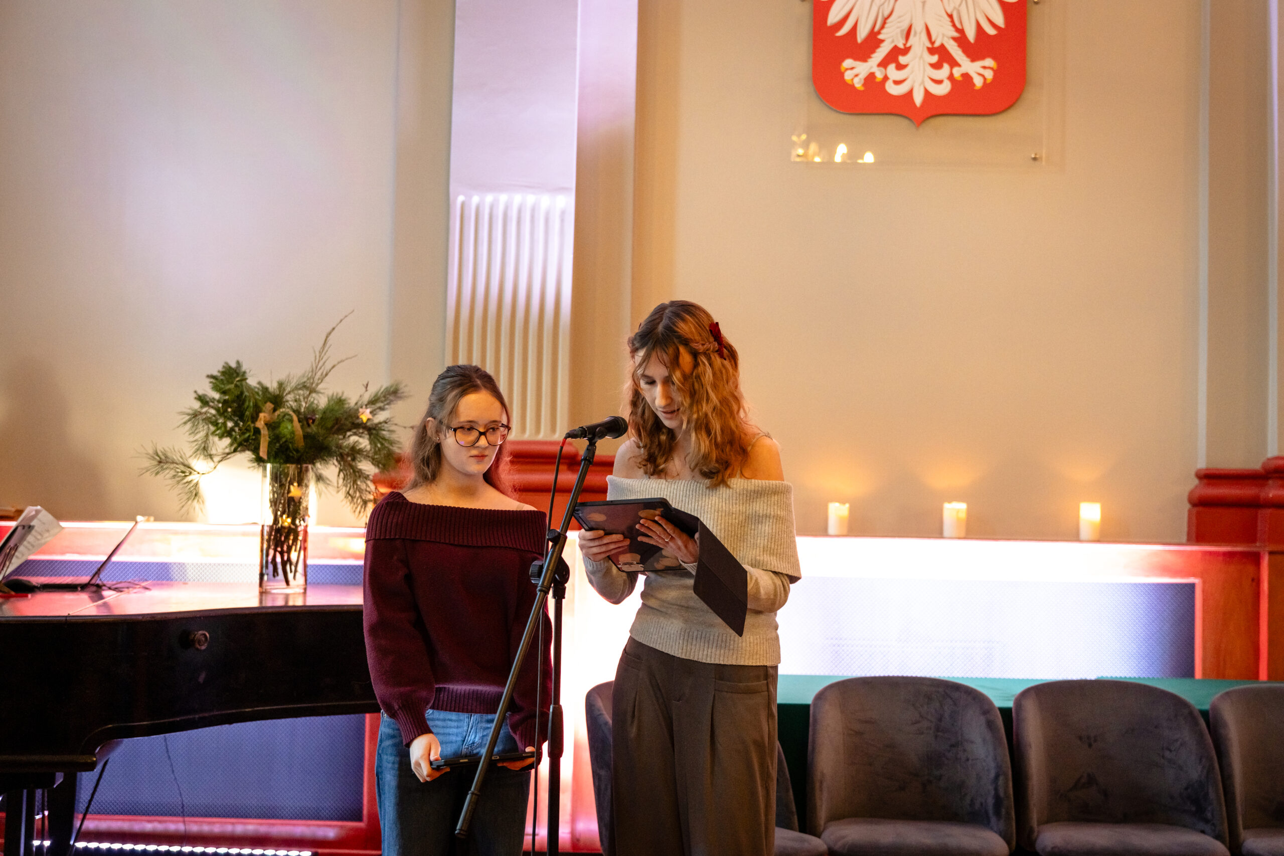 Na scenie mogliśmy podziwiać inscenizację „Opowieści wigilijnej” Charlesa Dickensa oraz występ chóru szkolnego, które wprowadziły nas w prawdziwie magiczny, świąteczny nastrój.