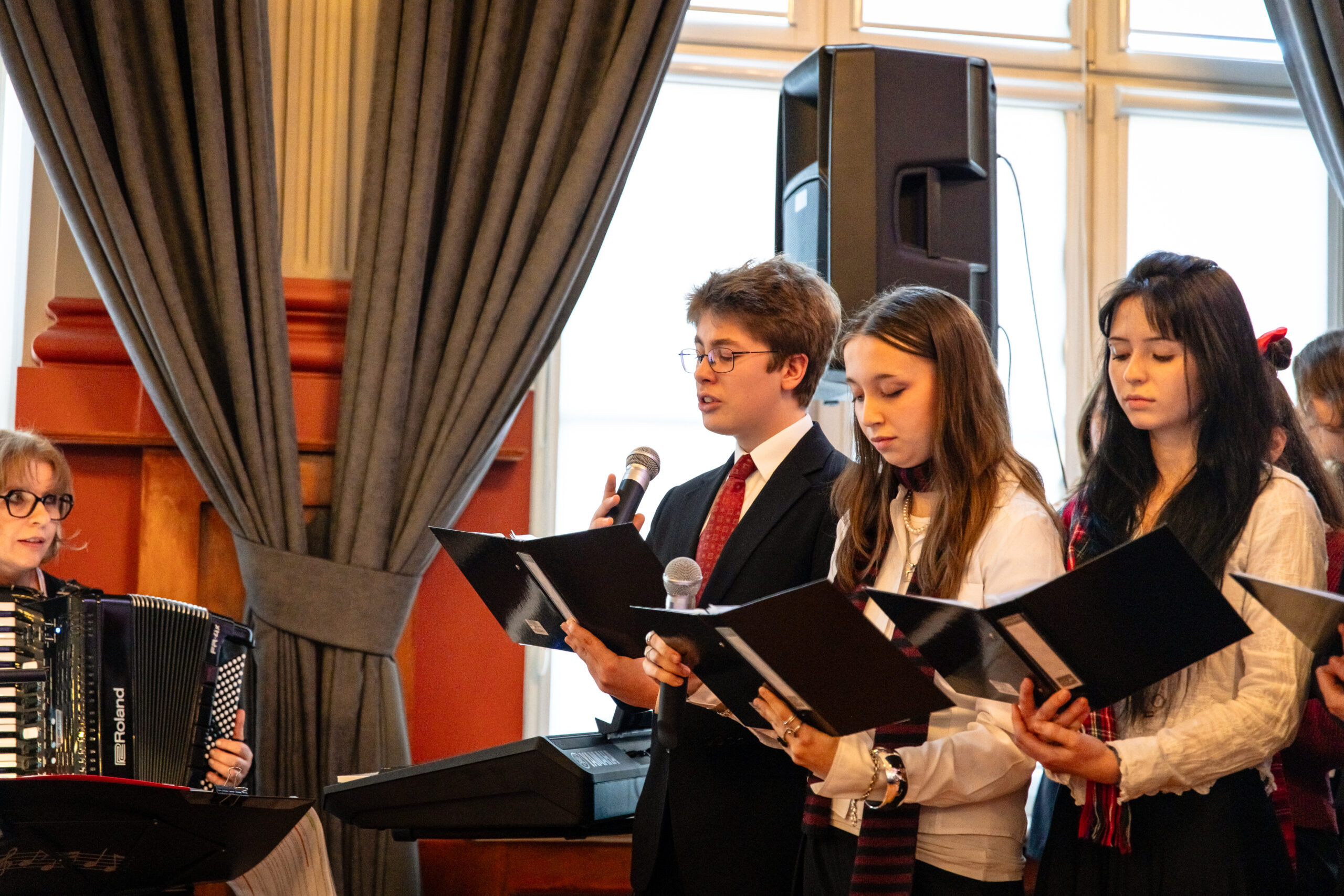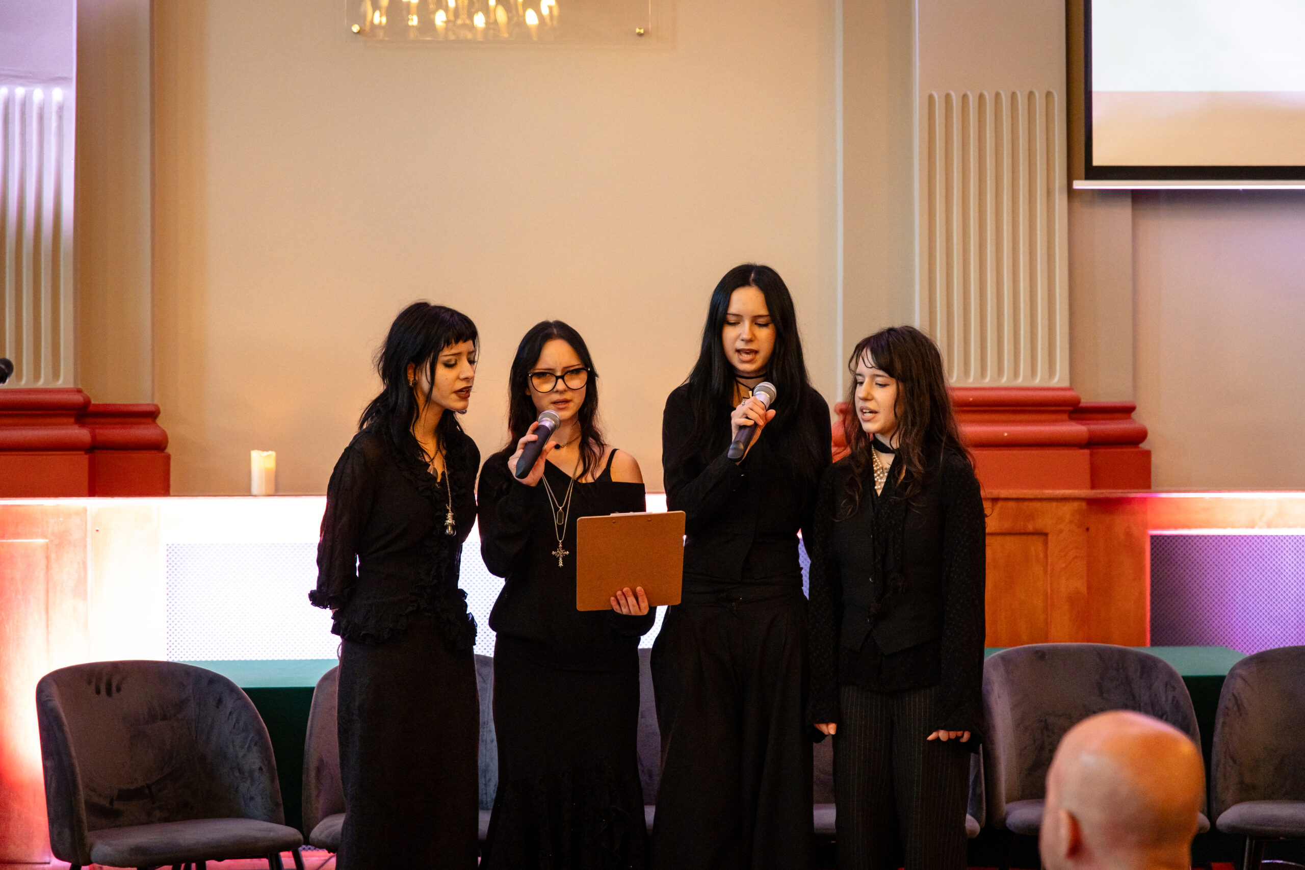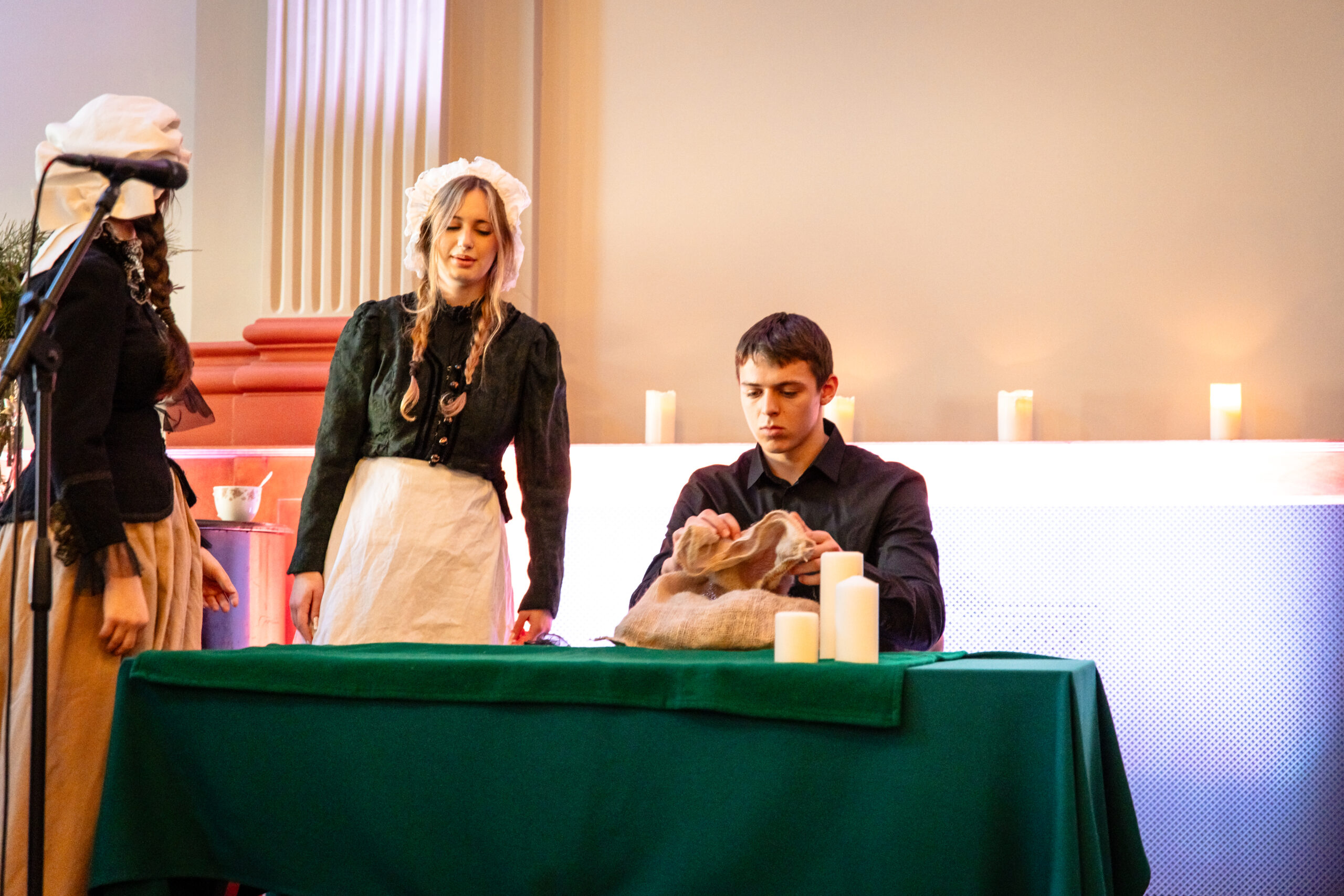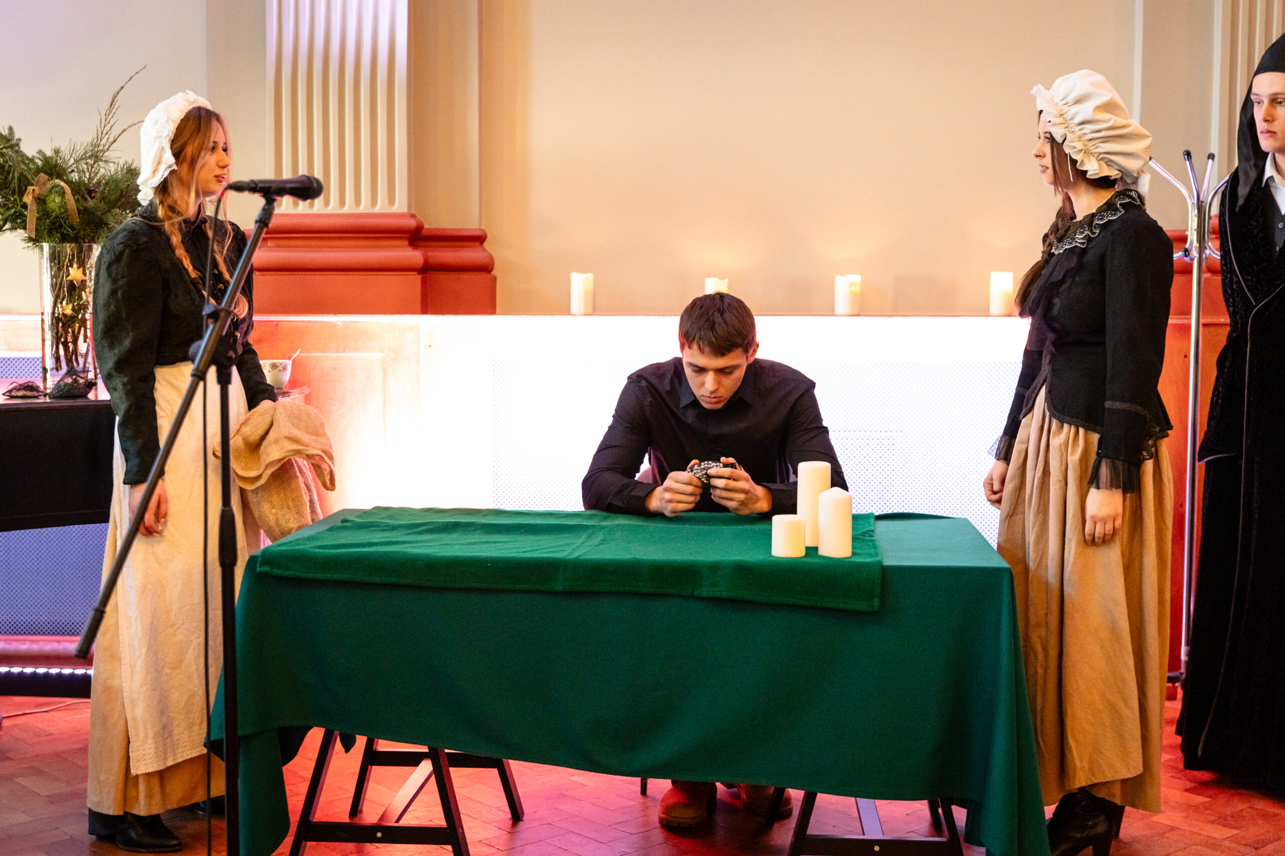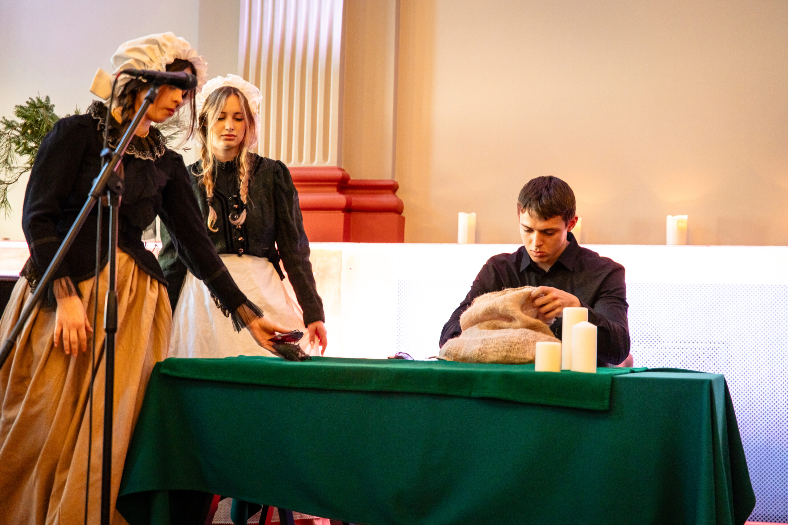 Na scenie mogliśmy podziwiać inscenizację „Opowieści wigilijnej” Charlesa Dickensa oraz występ chóru szkolnego, które wprowadziły nas w prawdziwie magiczny, świąteczny nastrój.