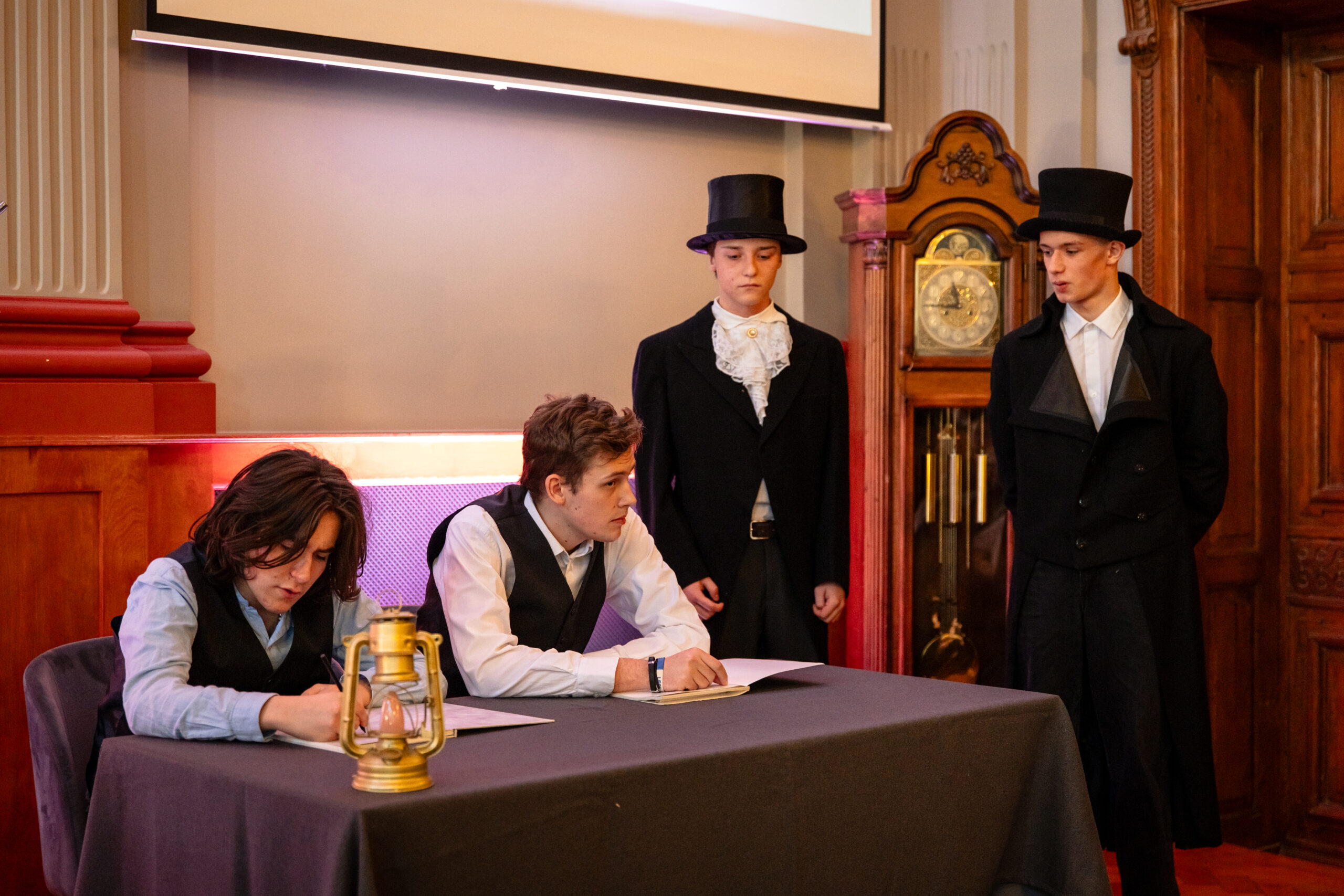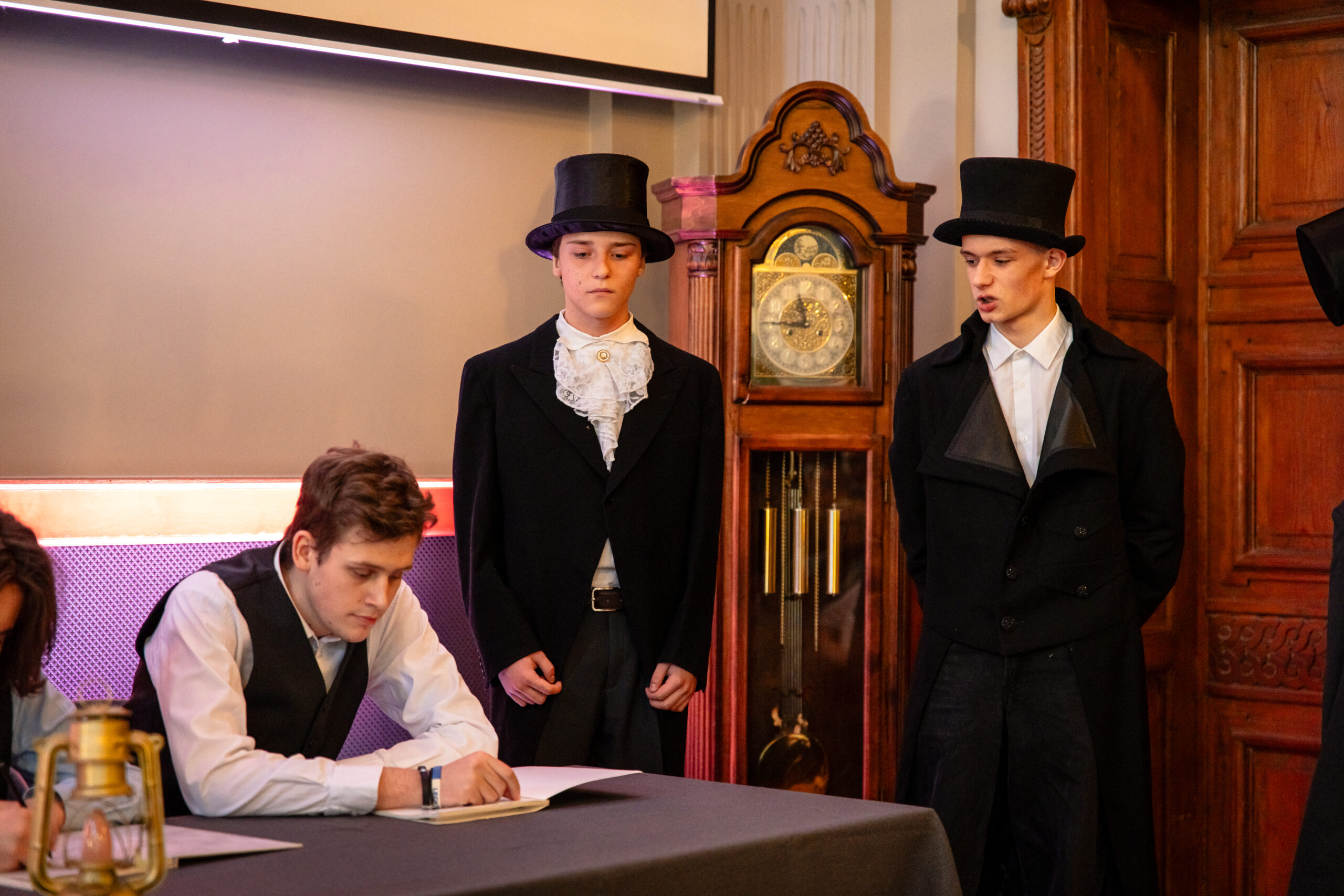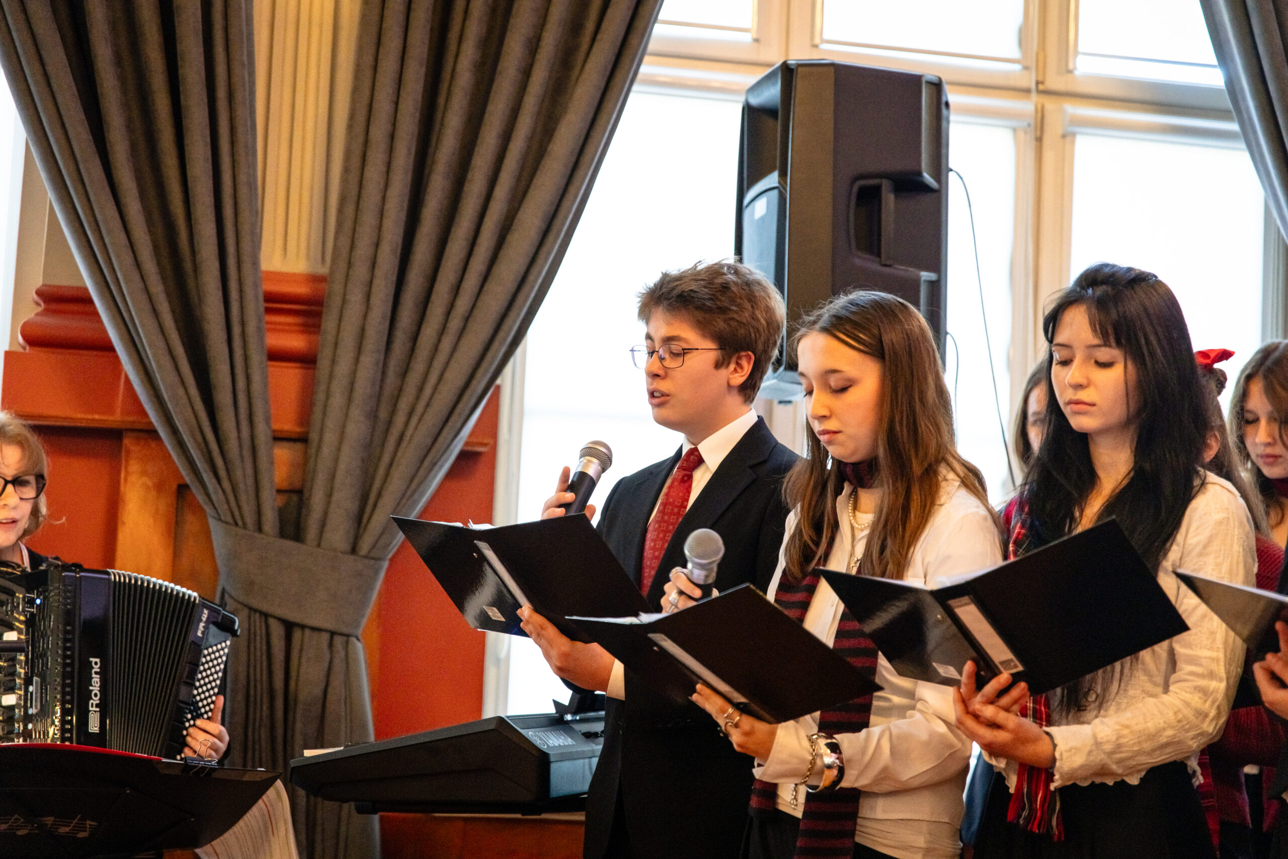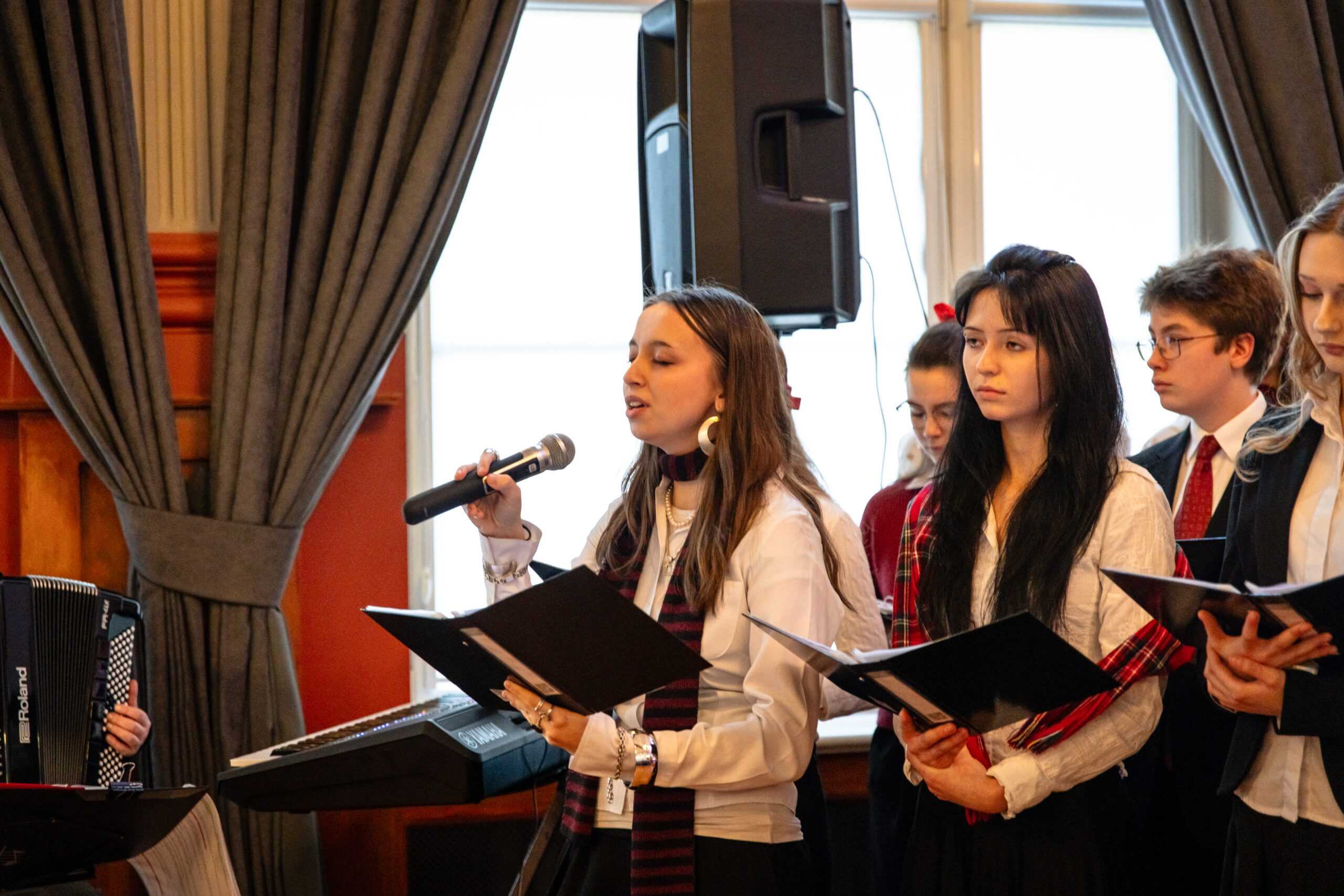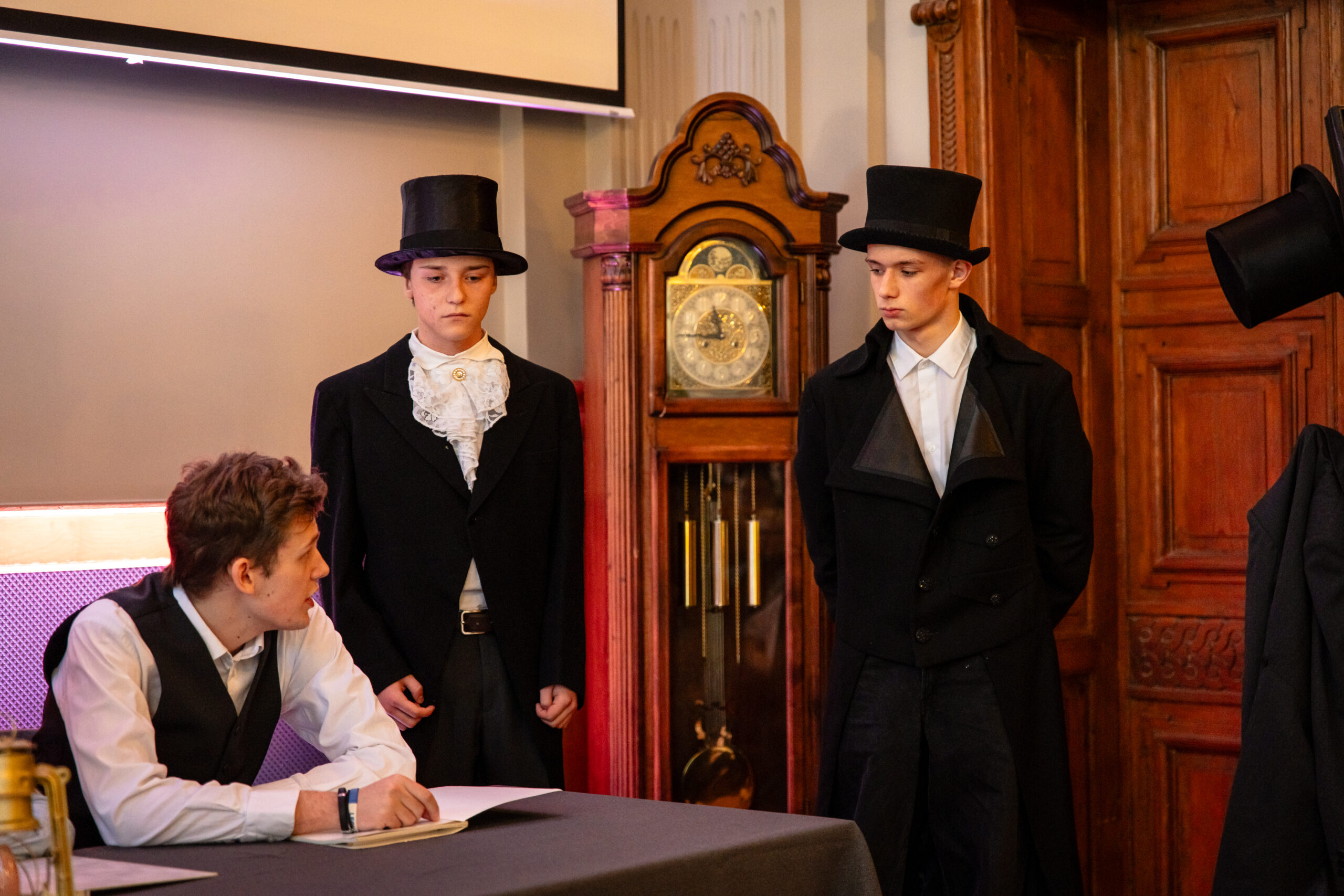 Na scenie mogliśmy podziwiać inscenizację „Opowieści wigilijnej” Charlesa Dickensa oraz występ chóru szkolnego, które wprowadziły nas w prawdziwie magiczny, świąteczny nastrój.