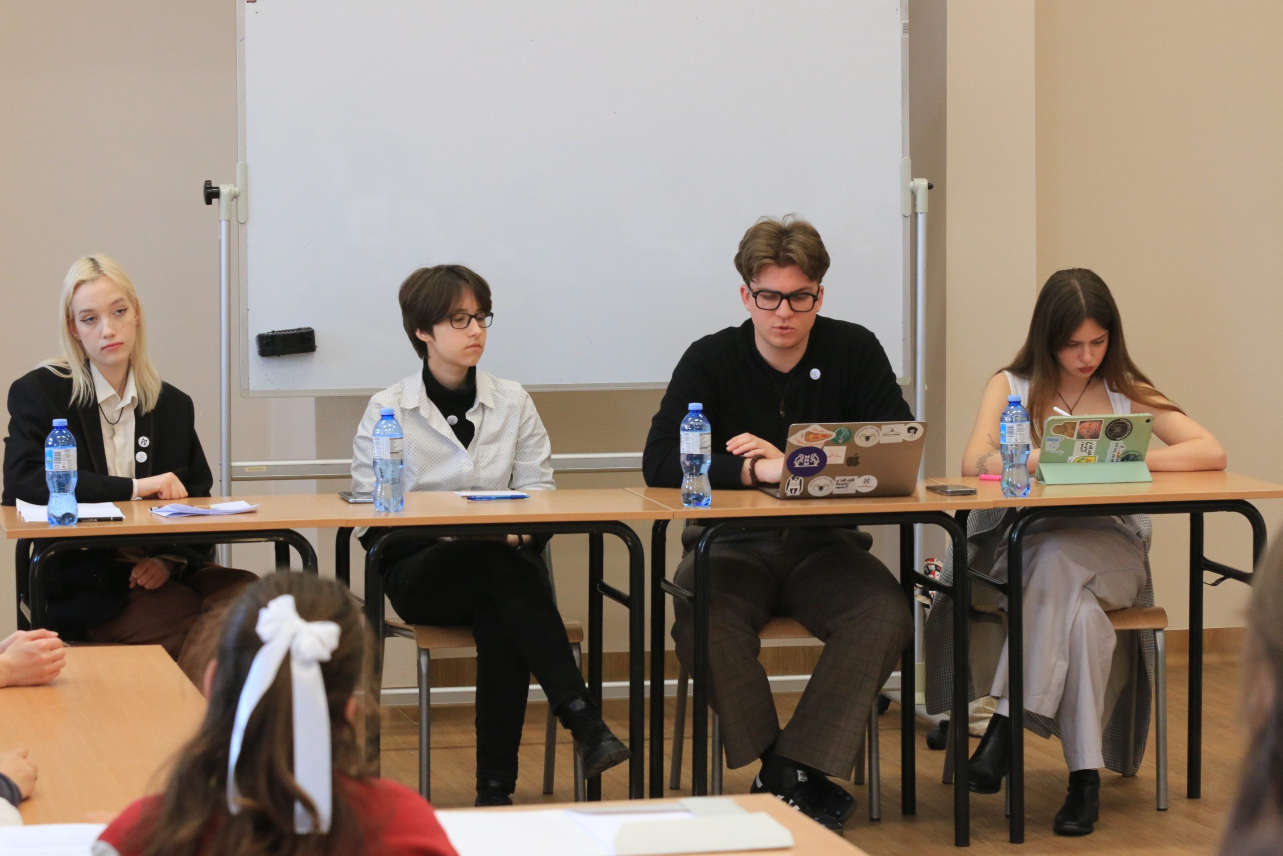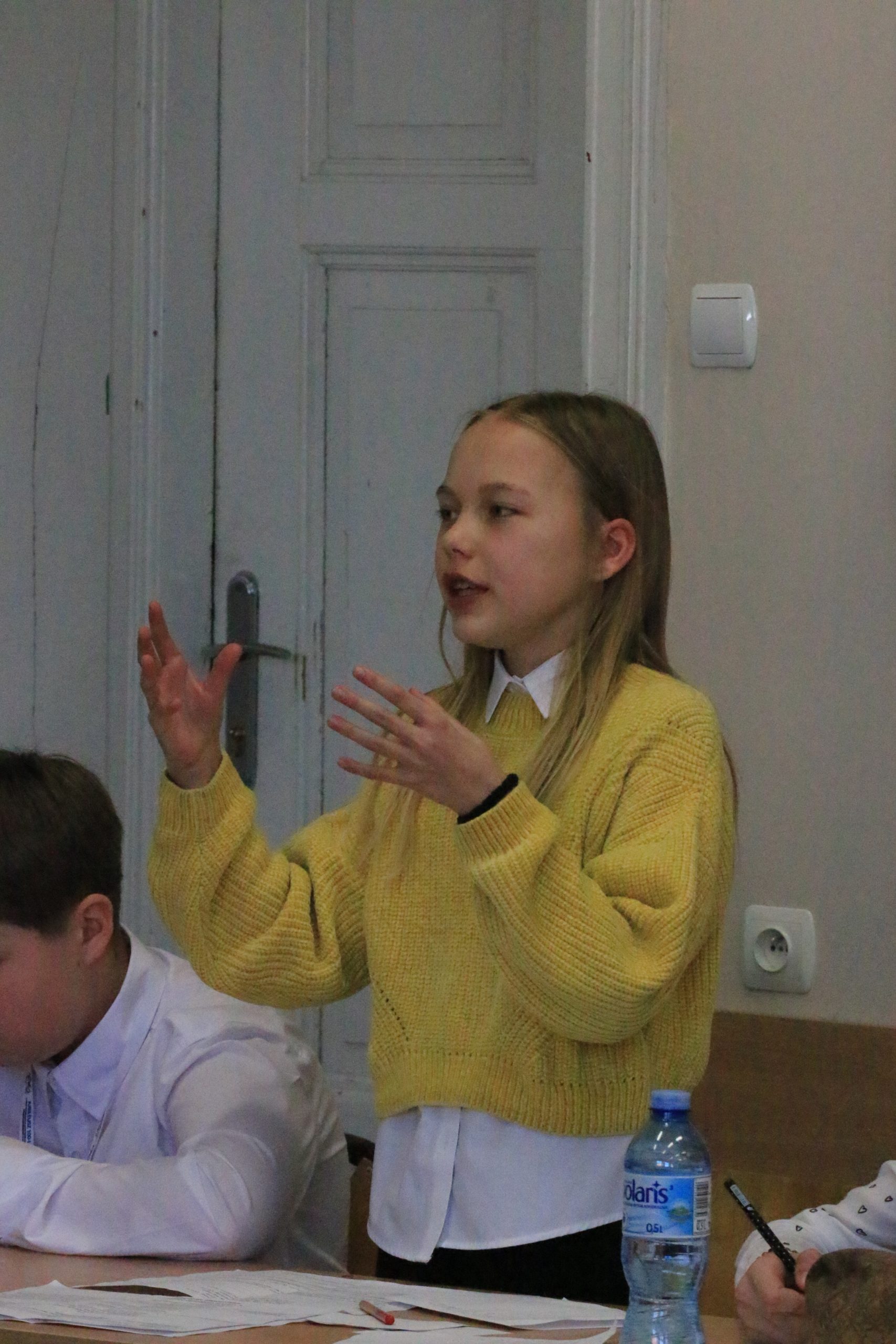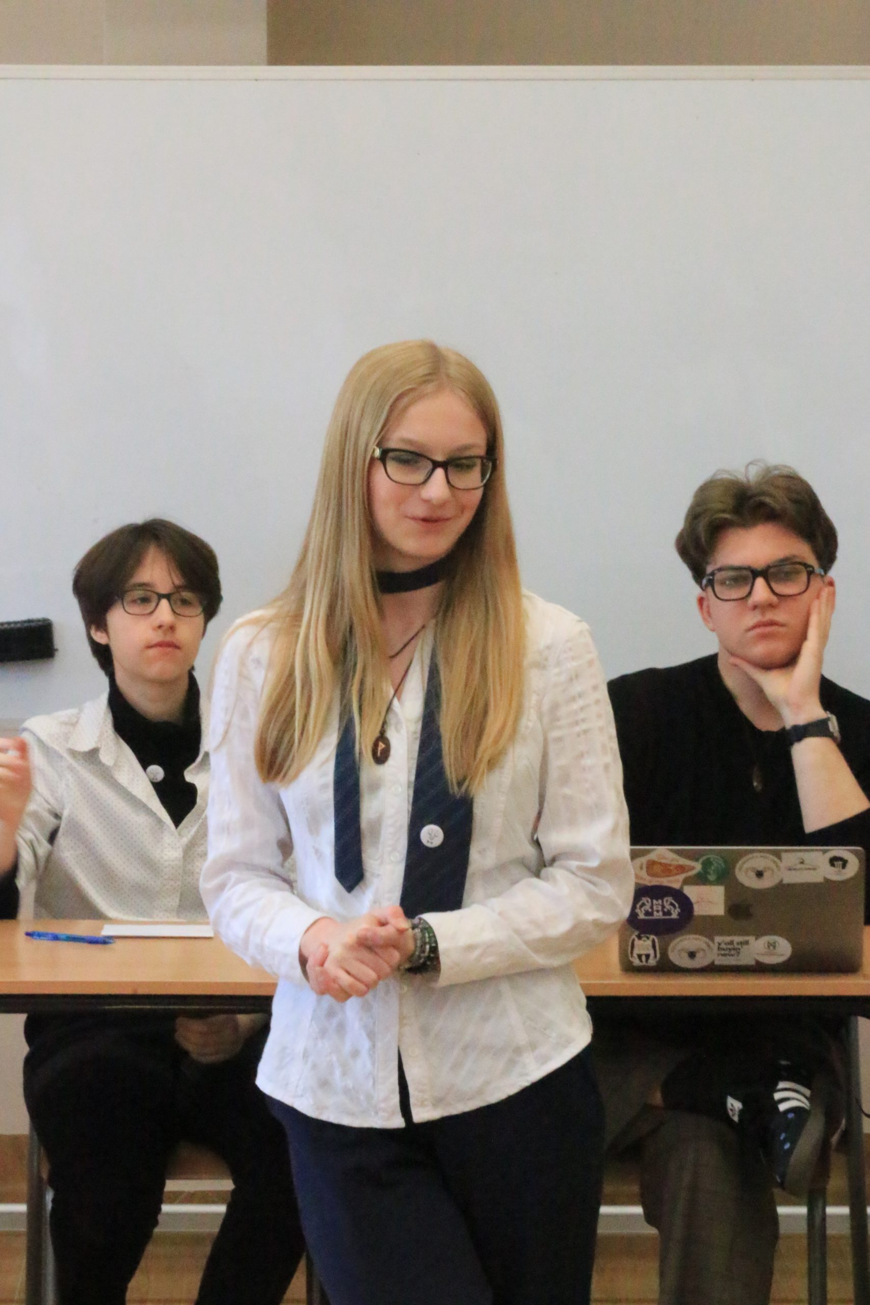 Słowa uznania należą się również uczniom i uczennicom naszej szkoły, którzy biorąc udział w Poznańskiej Lidze Debat, zaangażowali się tym razem po drugiej stronie debaty – stając się częścią panelu sędziowskiego, wcielając się w rolę marszałka albo sekretarza.