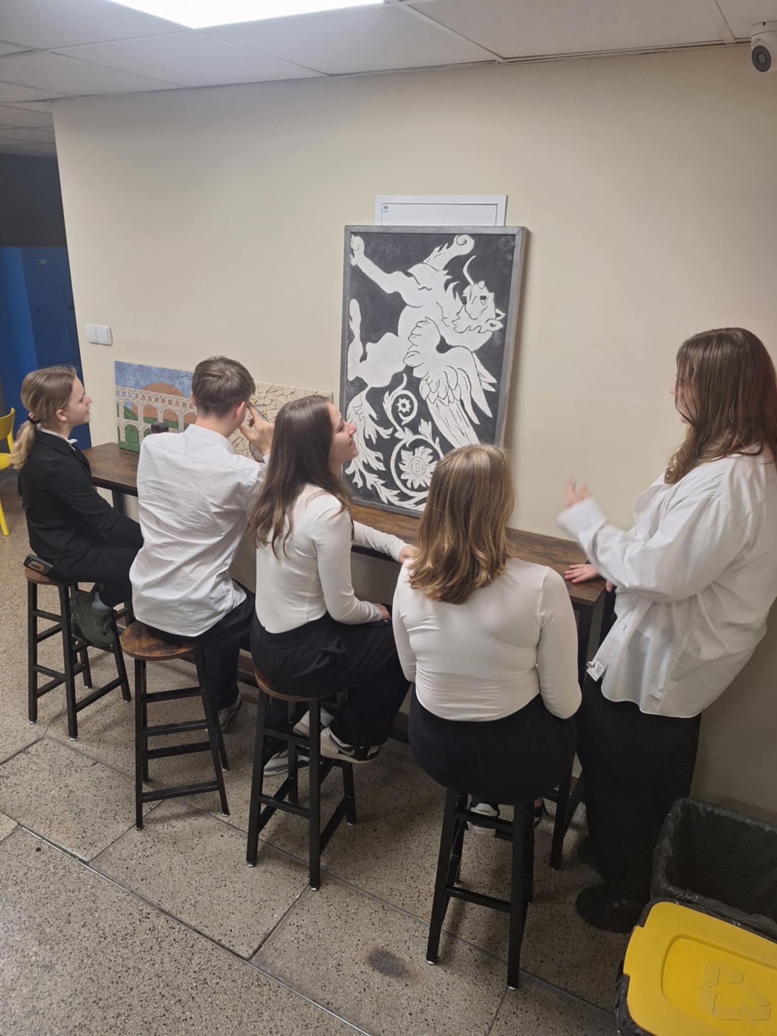 W Technikum ustawiono stoliki barowe, idealne na przerwy i wspólne rozmowy.