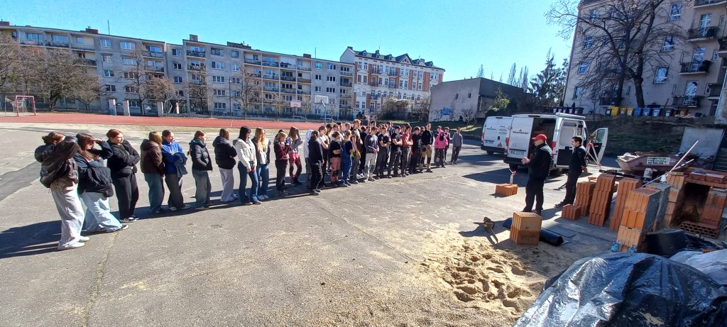 19 marca 2025 r. na terenie boiska naszej szkoły branżowej odbył się pokaz firmy WIENERBERGER – producenta ceramiki budowlanej oraz nowoczesnych i kompleksowych rozwiązań systemowych, konstrukcyjnych, a także z zakresu technik murarskich.