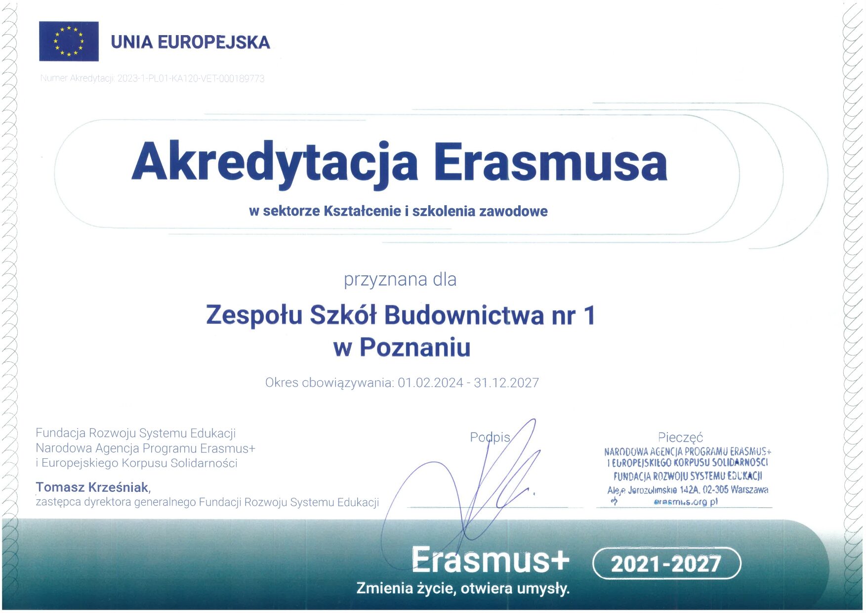 Akredytacja na lata 2024-2027 - Kształcenie i szkolenia zawodowe - praktyki zagraniczne