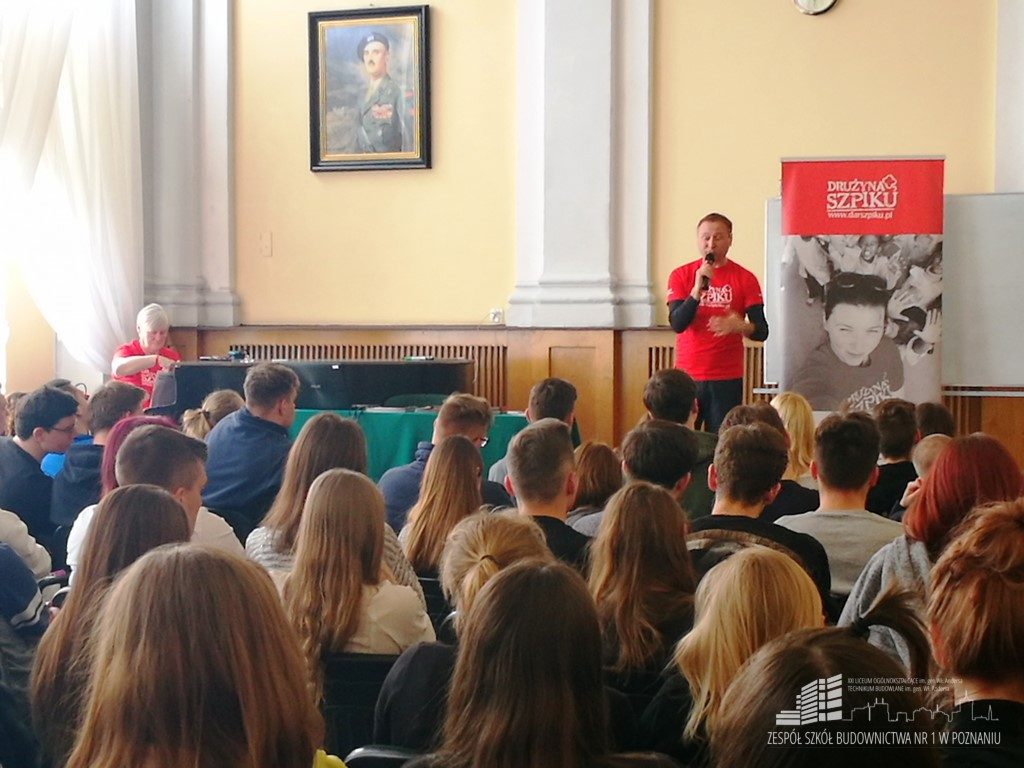 Dnia 24 kwietnia 2017r. odbyło się spotkanie uczniów naszej szkoły z Drużyną Szpiku. Drużyna Szpiku to grupa wolontariuszy działających bezinteresownie z potrzeby serca na rzecz osób chorych na nowotwory krwi w szczególności białaczki. Zaproszeni goście dzielili się swoją wiedzą, aby rozwiać wszelkie wątpliwości, przełamać bariery i zachęcić naszą młodzież do zostania świadomymi dawcami szpiku. Celem Drużyny Szpiku jest propagowanie idei niesienia pomocy chorym i potrzebującym. Spotkanie pozwoliło młodzieży poznać jak można zarejestrować się i zostać dawcą szpiku oraz krwi, na czym polega przeszczep szpiku oraz kto może zostać potencjalnym dawcą.