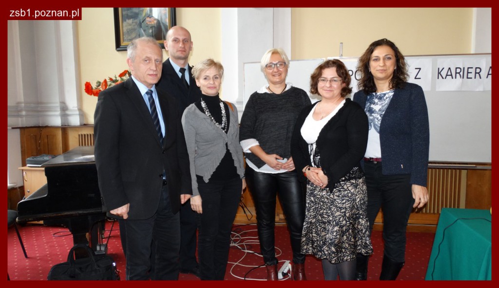 Dnia 11.02.2016 r. z inicjatywy zespołu ds. doradztwa zawodowego odbyło się spotkanie w auli szkolnej młodzieży klas maturalnych i klas II LO z przedstawicielami różnych zawodów. Na spotkanie przybyli: Pani Karolina Szambelańczyk –Naczelnik Wydziału Wdrażania Programu PROW i Pomocy Technicznej w Urzędzie Marszałkowskim Miasta Poznania, Pani Agnieszka Rybarczyk-inżynier projektów ITPOK i Pan Mariusz Szulc –funkcjonariusz Komendy Głównej Straży Pożarnej w Poznaniu. Zaproszeni goście opowiedzieli o swoich ścieżkach kariery, o sposobie zdobycia wiedzy i obecnego stanowiska. W każdym z przypadków droga do zdobycia obecnej pozycji była różna i nie prowadziła wprost do zdobytego stanowiska. Wspólny element przedstawionych zawodów to wytrwałość, praca i wiara w sukces i nauka języków obcych. Młodzież dowiedziała się także ,że wybór zawodu czy też ścieżki kształcenia w szkole średniej nie jest i nie musi być wyborem ostatecznym i jedynym. Spotkanie przebiegało w bardzo miłej atmosferze, goście byli bardzo otwarci a młodzież chętnie zadawała pytania. Kilka rad, skierowanych do naszych uczniów , szczególnie utkwiło w pamięci: „ Nie popadaj w rutynę, „Szanuj ludzi”, Życie to stół a jego nogi to 4 filary życia: rodzina, praca, przyjaciele, satysfakcja.” Nasi goście, będąc dobrymi organizatorami, realizują swoje pasje: bieg w maratonie czy podróże w odległe zakątki świata. Spotkania będą kontynuowane i zapewne przyniosą wiele odpowiedzi na nurtujące uczniów pytania, szczególnie tuż przed wyborem przyszłej drogi zawodowej.