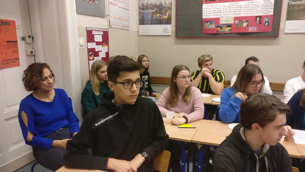 Spotkanie z gośćmi było żywą lekcją historii, w której brali przedstawiciele klas. Historia kobiet wszystkich bardzo poruszyła. Uczniowie, którzy uczą się języka niemieckiego, mieli możliwość posłuchania go i sprawdzenia swoich umiejętności. Mamy nadzieję, że goście jeszcze kiedyś odwiedzą naszą szkołę i przeprowadzą kolejną lekcję historii polsko-niemieckiej…