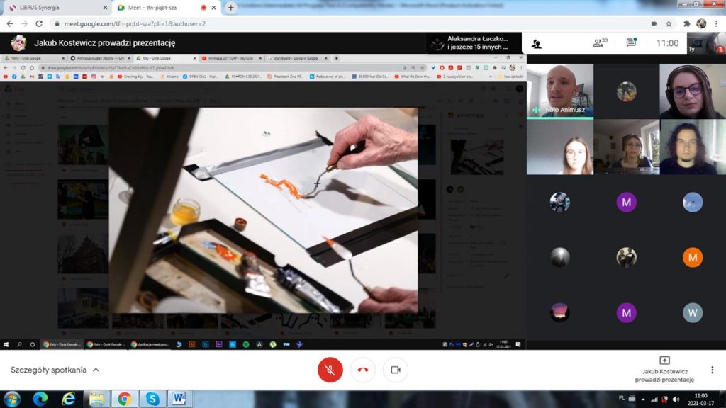 W środę 17.03. klasa G2A2 uczestniczyła w spotkaniu online z p. Jakubem Kostewiczem i p. Darią Kruszką ze Studenckiego Koła Naukowego Animusz. Zaprezentowali nam oni swój kameralny wydział, prowadzone w jego ramach przedmioty oraz działające pracownie, a nawet techniki animacji i krótkie filmy przygotowane przez studentów. Mieliśmy też okazję poznać ścieżki kariery istniejące po ukończeniu studiów oraz zadać pytania dotyczące interesujących nas kwestii. Bardzo dziękujemy p. Jakubowi i p. Darii za poświęcony nam czas i ciekawe spotkanie. Za tydzień znów architektura, tym razem UAP!