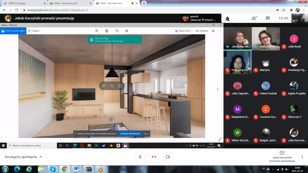 W środę 24 marca uczniowie klas G2A2 i 3A o profilu Architektura i design połączyli się z p. Maksymilianem Bernadym i p. Jakubem Kaczyńskim ze Studenckiego Koła Naukowego Architektury SANS. Studenci jak zwykle przedstawili nam swój kierunek, zasady rekrutacji, wykładane przedmioty oraz możliwości zdobycia zatrudnienia przez absolwentów. Odpowiadali też na nurtujące nas pytania i zaprezentowali swoje prace.