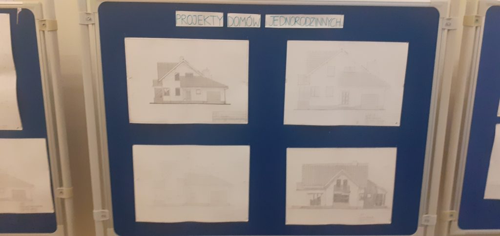 Zapraszamy wszyskich uczniów klas pierwszych do oglądania wystawy prac rysunkowych projektów domów jednorodzinnych. Wystawę przygotowali uczniowie klas wyższych.