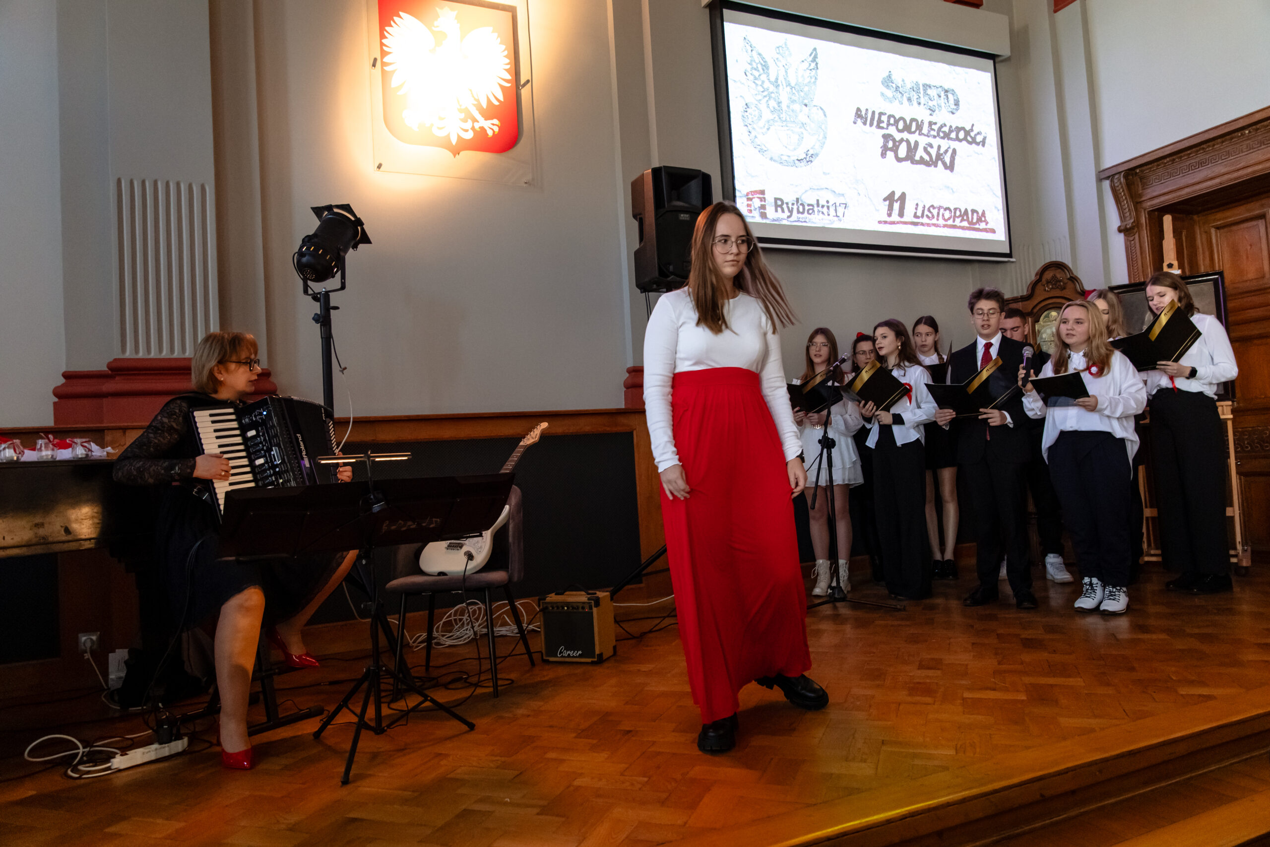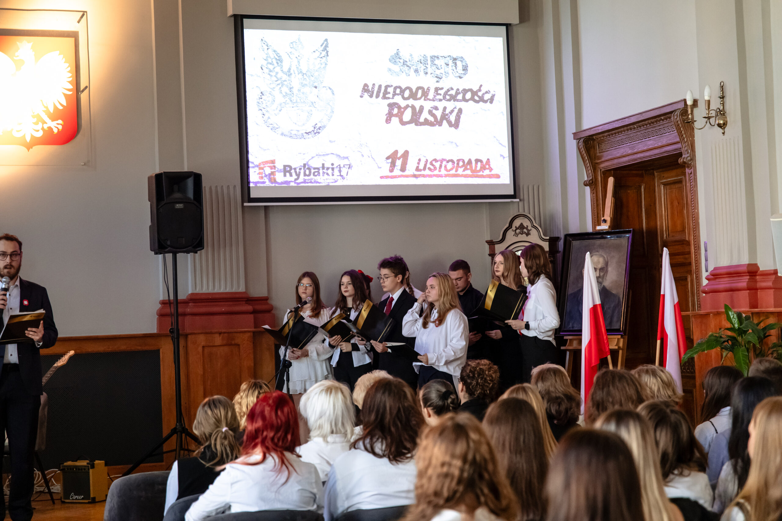 Punktualnie o godzinie 11:11 cała społeczność szkolna wspólnie odśpiewała Mazurka Dąbrowskiego, łącząc się w duchu jedności i patriotyzmu.