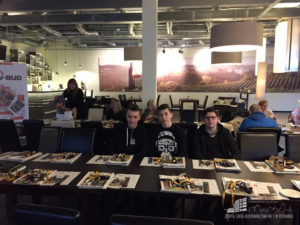 W czwartek 2.03.2017r. odbyło się szkolenie zorganizowane przez firmę V-BUD. W szkoleniu wzięło udział trzech uczniów z klasy IIIAT. Tematyka dotyczyła zastosowania wyrobów malarskich firmy Tikkurila oraz zastosowania wyrobów SILKA i YTONG do konstrukcji murowych. Oprócz uczniów w spotkaniu uczestniczyło wielu wykonawców z branży budowlanej.