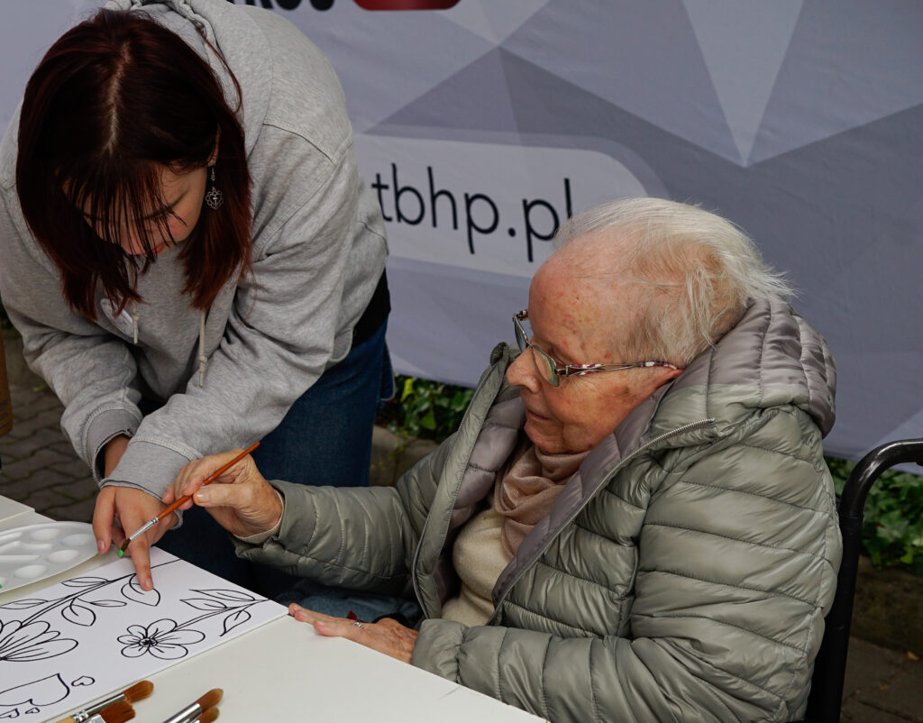 W ostatnich dniach nasi wolontariusze pomagali w organizacji festynu integracyjno-rodzinnego w Domu Pomocy Społecznej. Ich udział był częścią realizowanego przez szkołę projektu „Sztuka bez Granic – Młodzi i seniorzy w twórczym dialogu”, w ramach którego przygotowali dla uczestników festynu plener malarski.