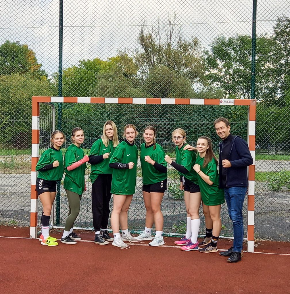 W czwartek 29 września jak co roku nasi uczniowie brali udział w turnieju piłki ręcznej o Puchar Dyrektora ZSE w Poznaniu. W tej edycji wystartowała tylko drużyna dziewcząt. W turnieju kobiet wystarowalo 6 drużyn podzielonych na dwie grupy. W pierwszym spotkaniu nasze szczypiornistki pokonały zdecydowanie Zespół Szkół Zawodowych nr 6 w Poznaniu 12:6, w drugim swoim meczu rozgromiły gospodynie turnieju ZS Ekonomicznych 12:4 i tym samym zapewniły sobie awans z grupy z pierwszego miejsca czekając na finał. W meczu decydującym o triumfie w turnieju niestety uległy dobrze dysponowanym dziewczynom z 8 LO w Poznaniu 7:11 pokazując wolę walki. Tym samym nasze „Rybki” jak się same nazwały osiągnęły najlepszy rezultat w historii brania udziału w tym turnieju. Po zakończonym meczach nadszedł moment na wręczanie pucharu oraz medali jak i wyróżnień indywidualnych. MVP turnieju (najlepsza zawodniczka imprezy) została nasza uczennica Lena Andraszyk. Chciałbym podziękować wszystkim dziewczynom za godne reprezentowanie naszej szkoły i osiągnięcie tak znakomitego wyniku – Szymon Pecyna. Skład drużyny: