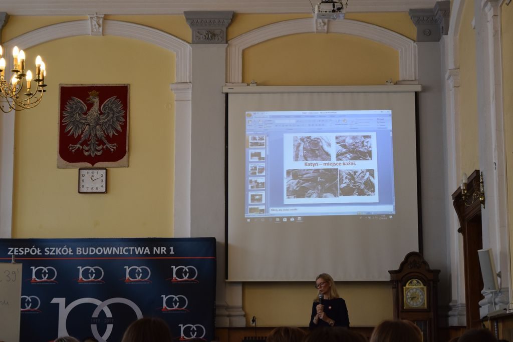 Następnie Pani Bogusława Hofa przybliżyła uczniom zbrodnie wojenne w Katyniu, których dopuścili się Sowieci na polskich oficerach. Ponadto głos zabrały trzy uczennice, które reprezentowały Naszą Szkołę podczas XIII Marszu Pamięci.