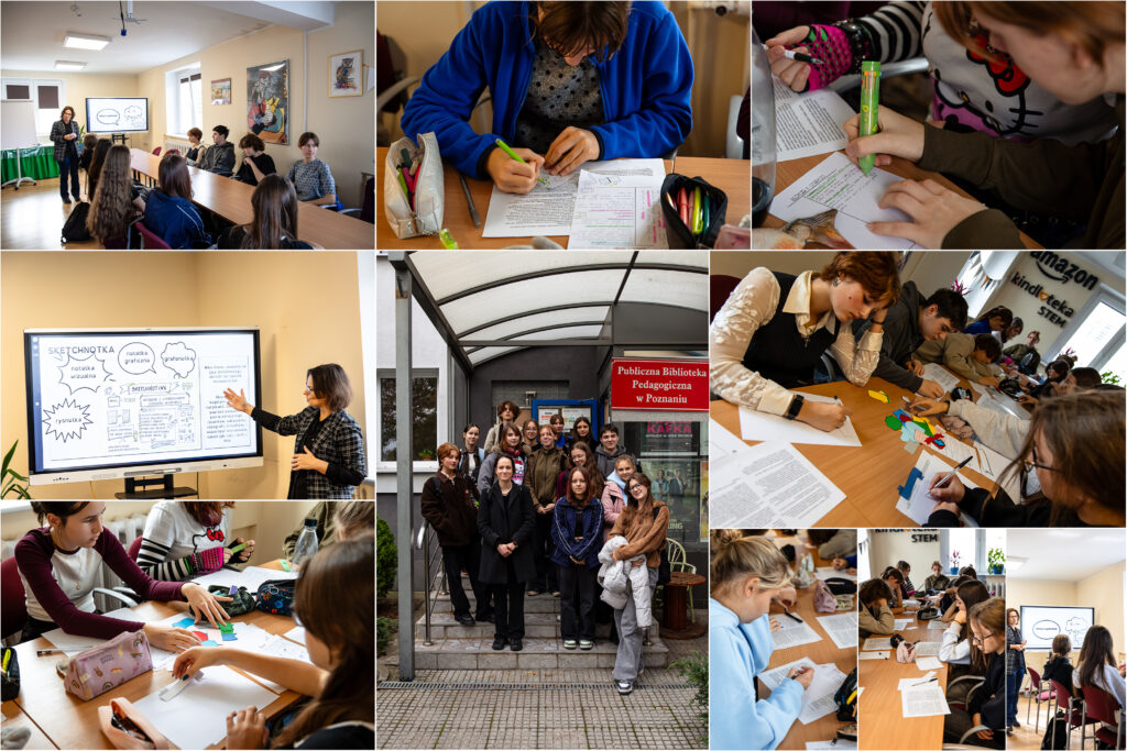 Wczoraj młodzież wzięła udział w wyjściu outdoorowym do Biblioteki Pedagogicznej, gdzie odbyły się ciekawe warsztaty pt. „Notuj z wyobraźnią”.
