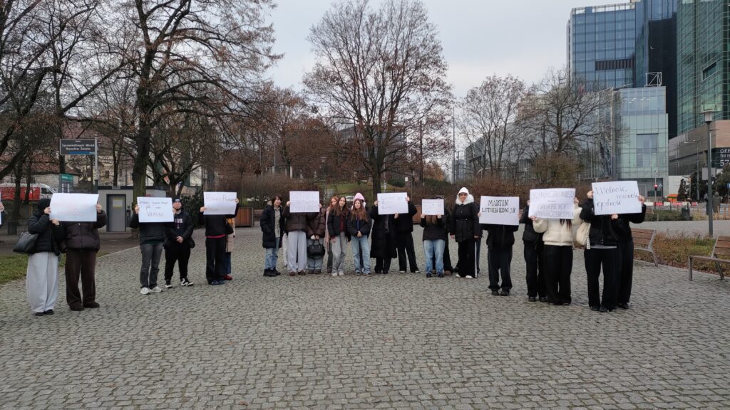 Happening odbył się na poznańskim Skwerze Sprawiedliwych Wśród Narodów Świata – miejscu, którego symbolika naturalnie koresponduje z ideą promowania odwagi, empatii i sprzeciwu wobec prześladowań.