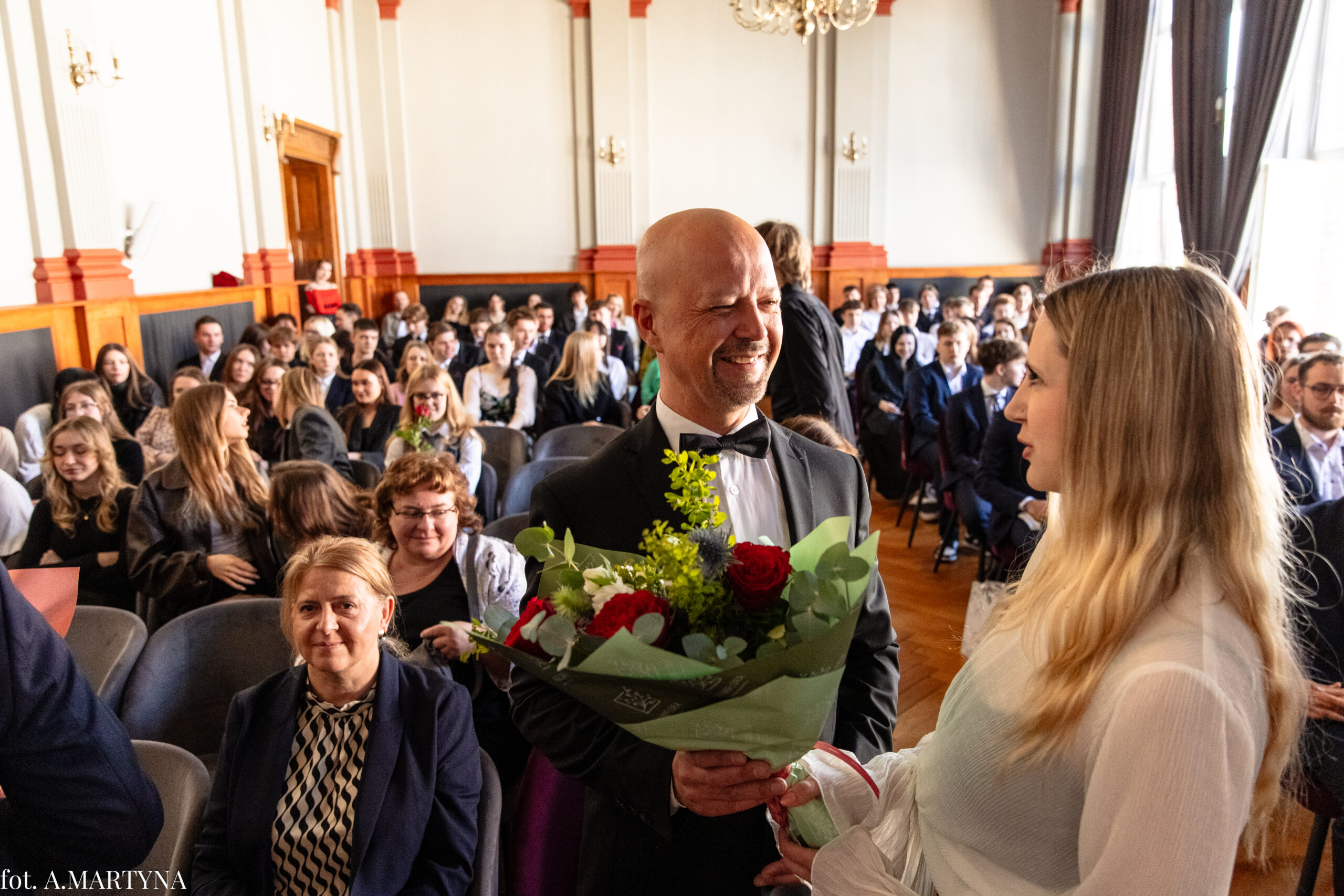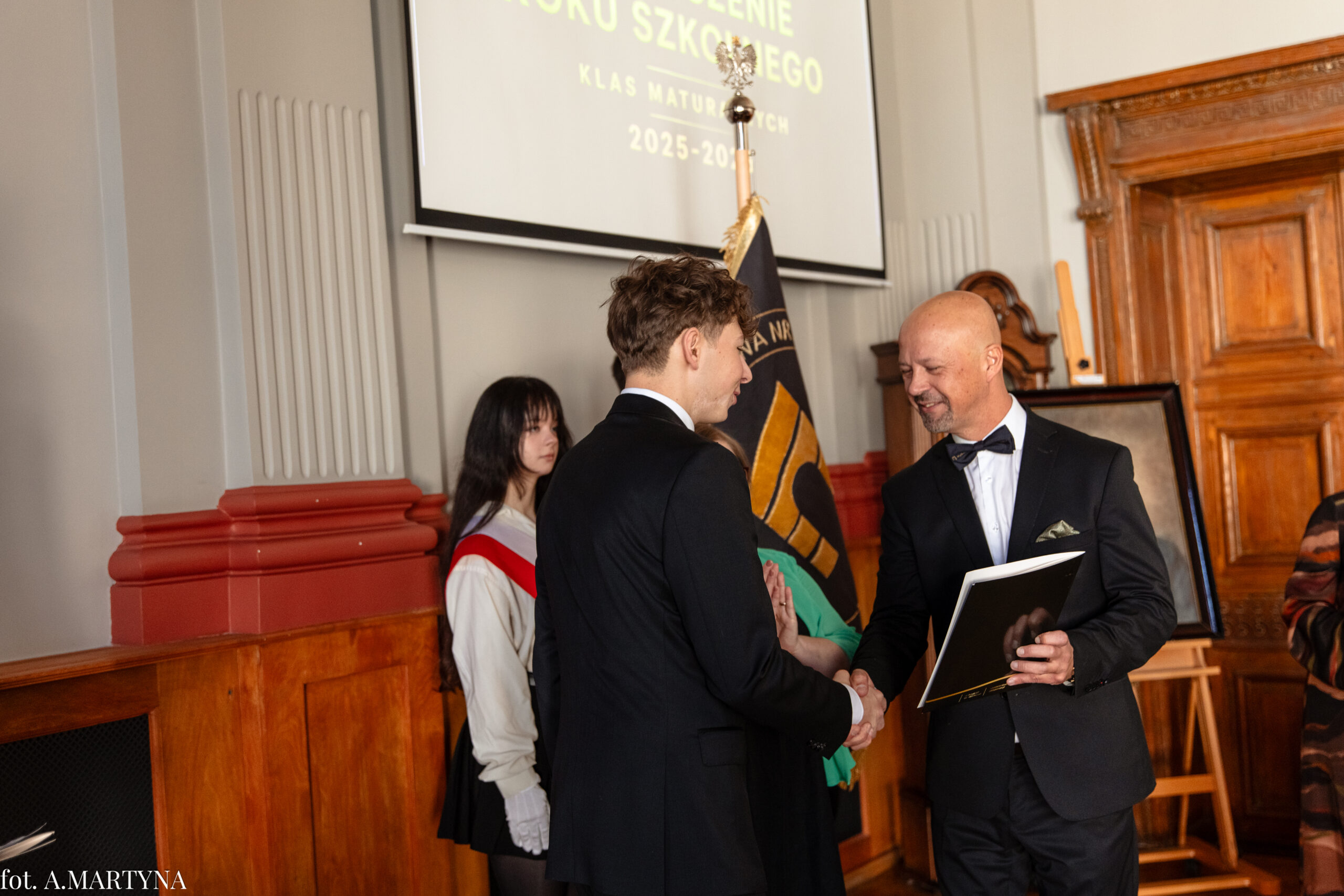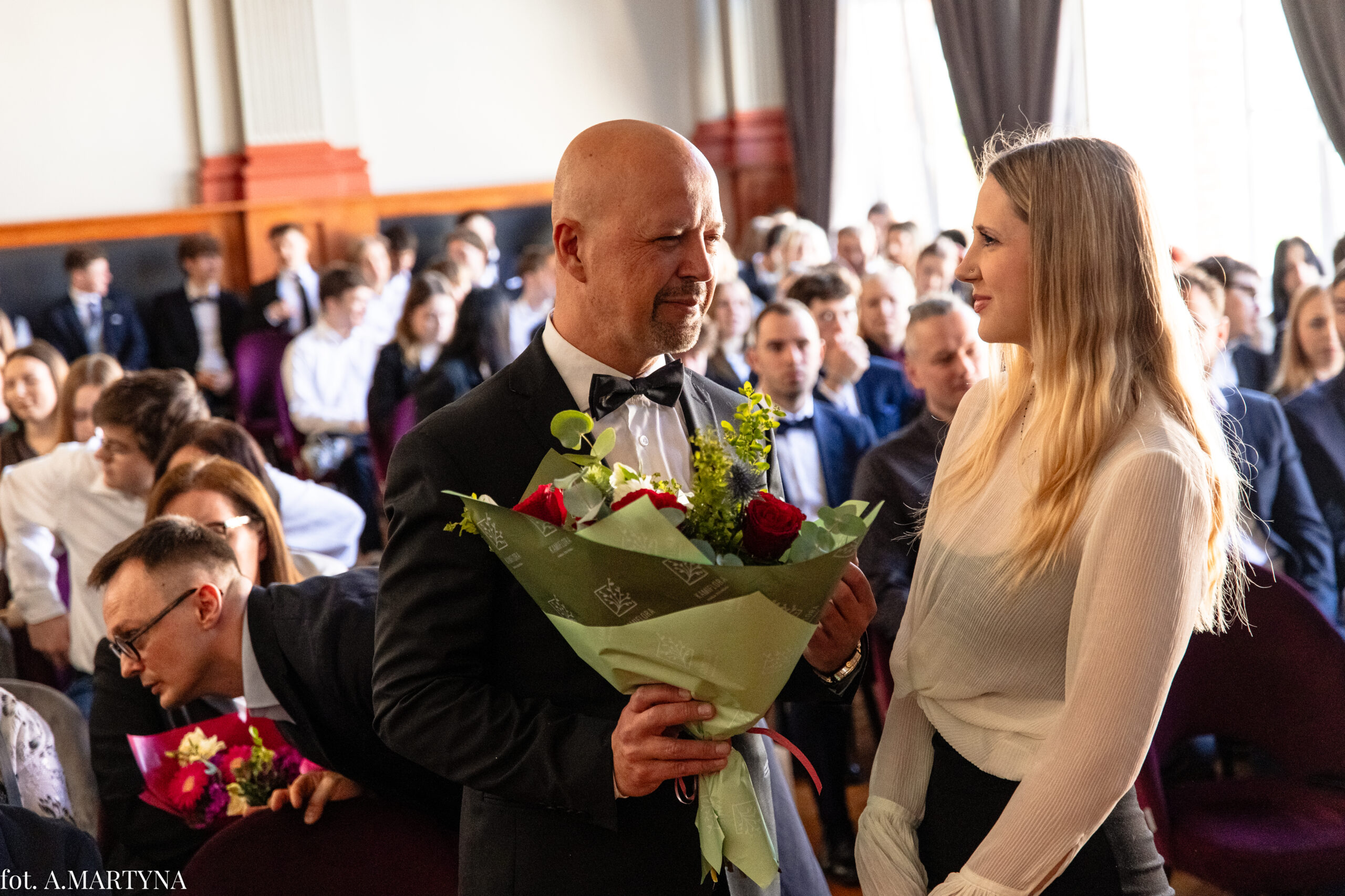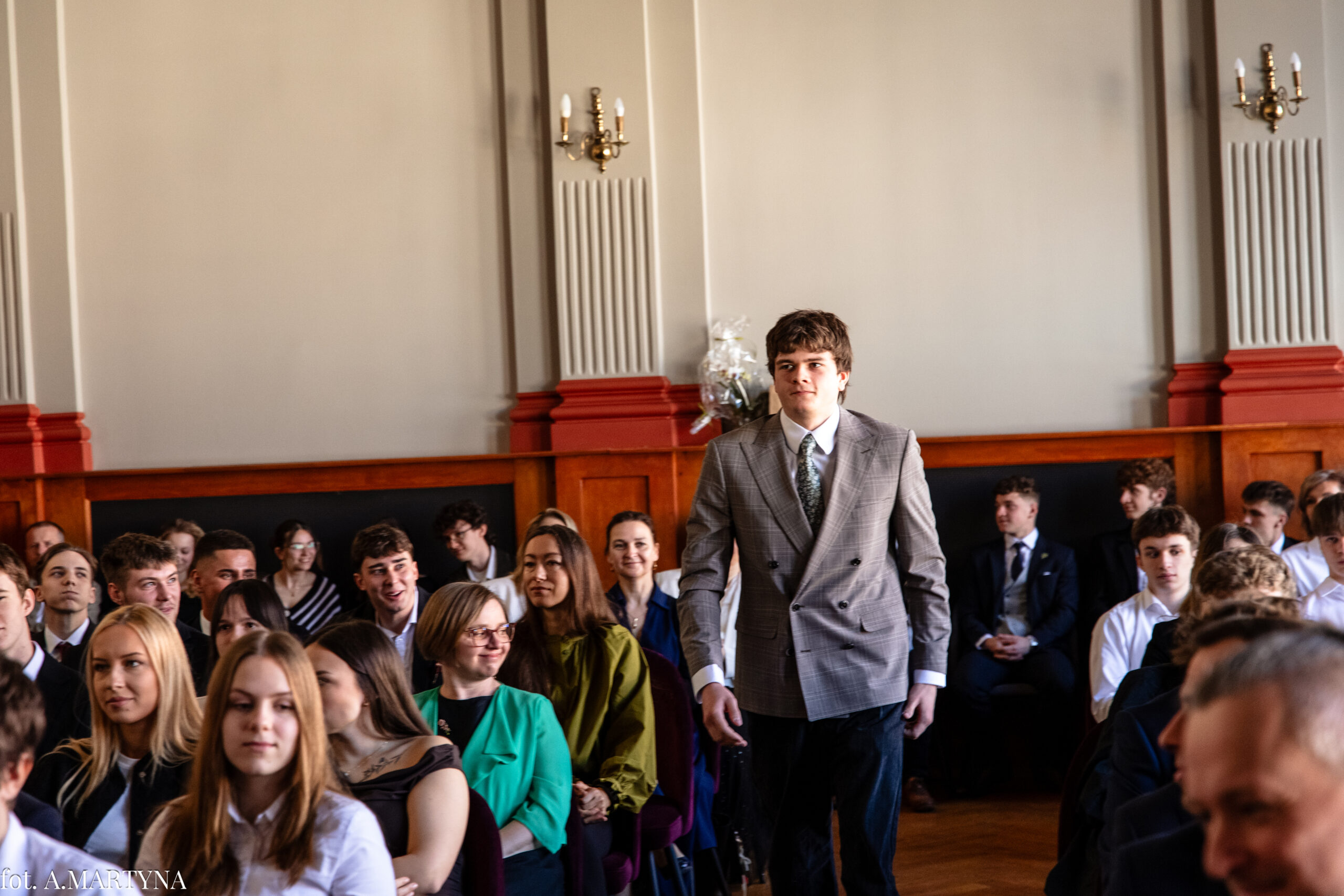 Dyrektor szkoły pogratulował absolwentom ukończenia ważnego etapu edukacji, życząc im powodzenia na egzaminach maturalnych oraz sukcesów w dalszej drodze życiowej. Przekazał również słowa skierowane do młodzieży przez Kuratora Oświaty w specjalnym liście okolicznościowym.