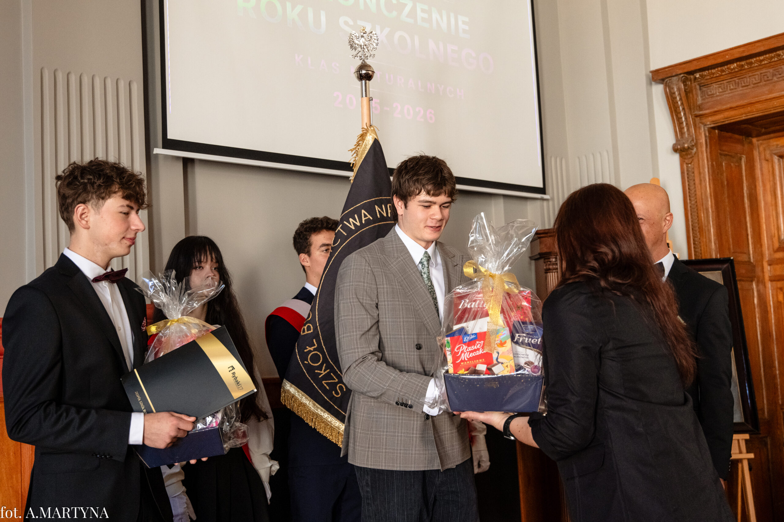 Podczas uroczystości wręczono nagrody uczniom osiągającym najwyższe wyniki w nauce oraz wyróżniającym się bardzo dobrym i wzorowym zachowaniem. Uhonorowano również młodzież za szczególne osiągnięcia, działalność wolontariacką oraz aktywne zaangażowanie w życie szkoły.