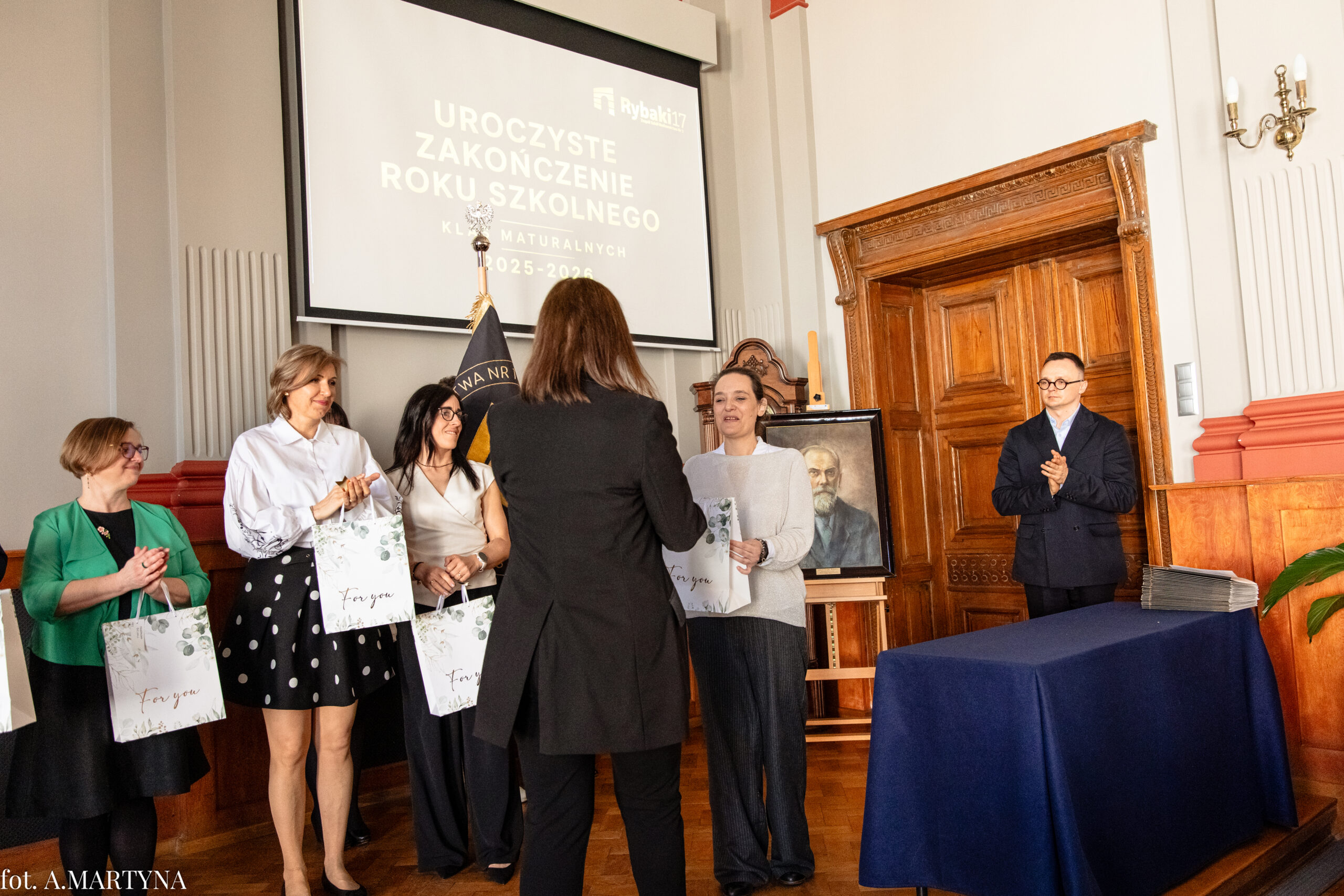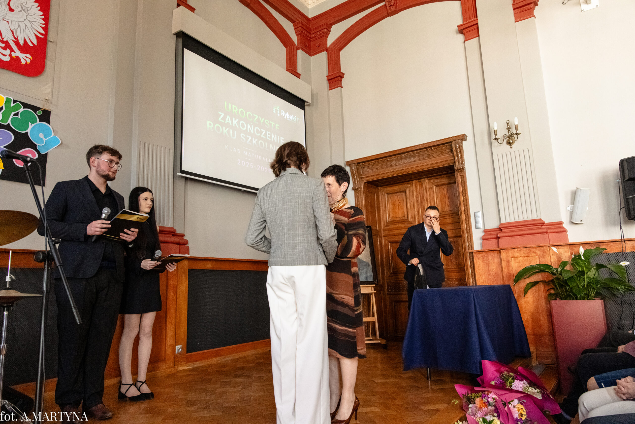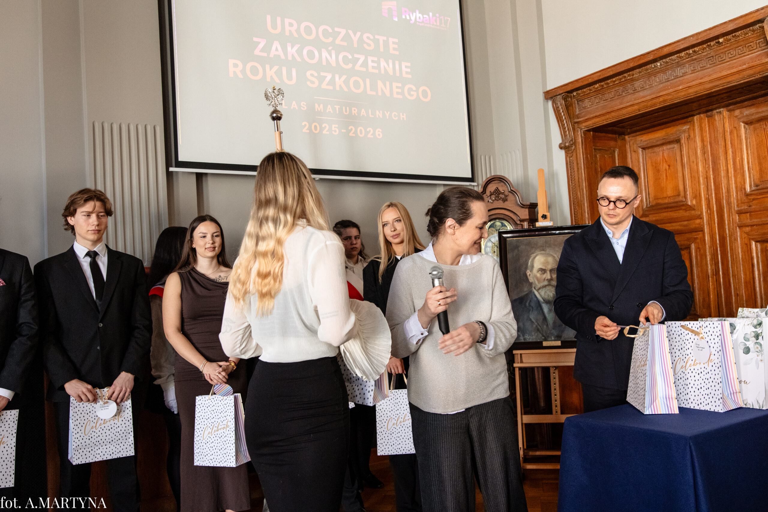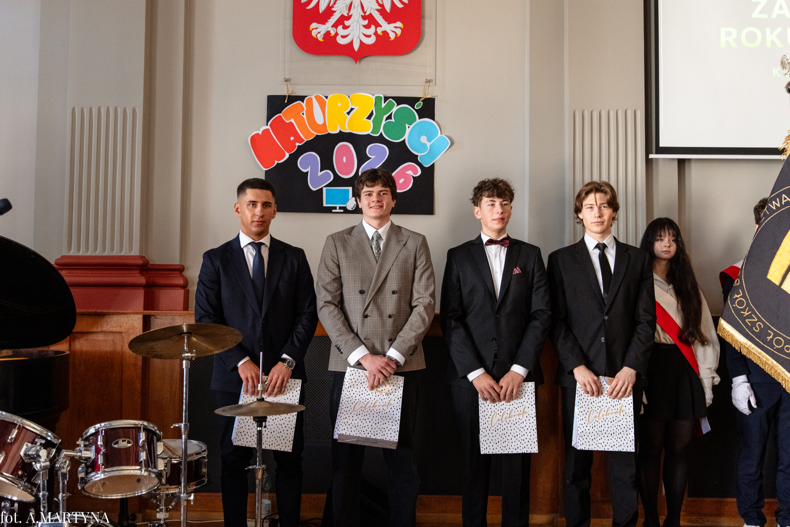 Nie zabrakło podziękowań ze strony uczniów, którzy wyrazili wdzięczność dyrekcji, nauczycielom oraz koleżankom i kolegom za wspólnie spędzone lata. W geście uznania maturzyści wręczyli kwiaty dyrekcji oraz kadrze pedagogicznej.