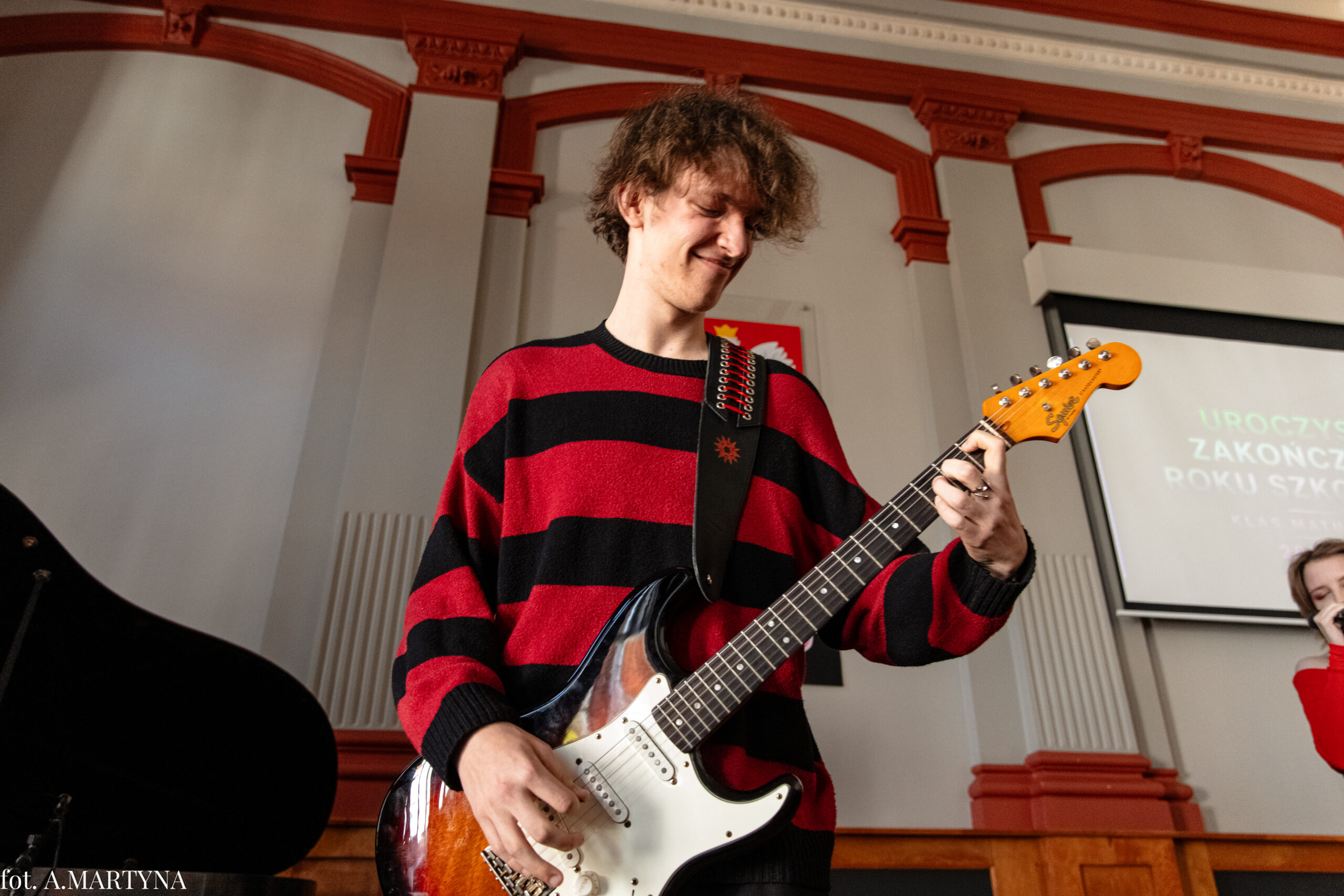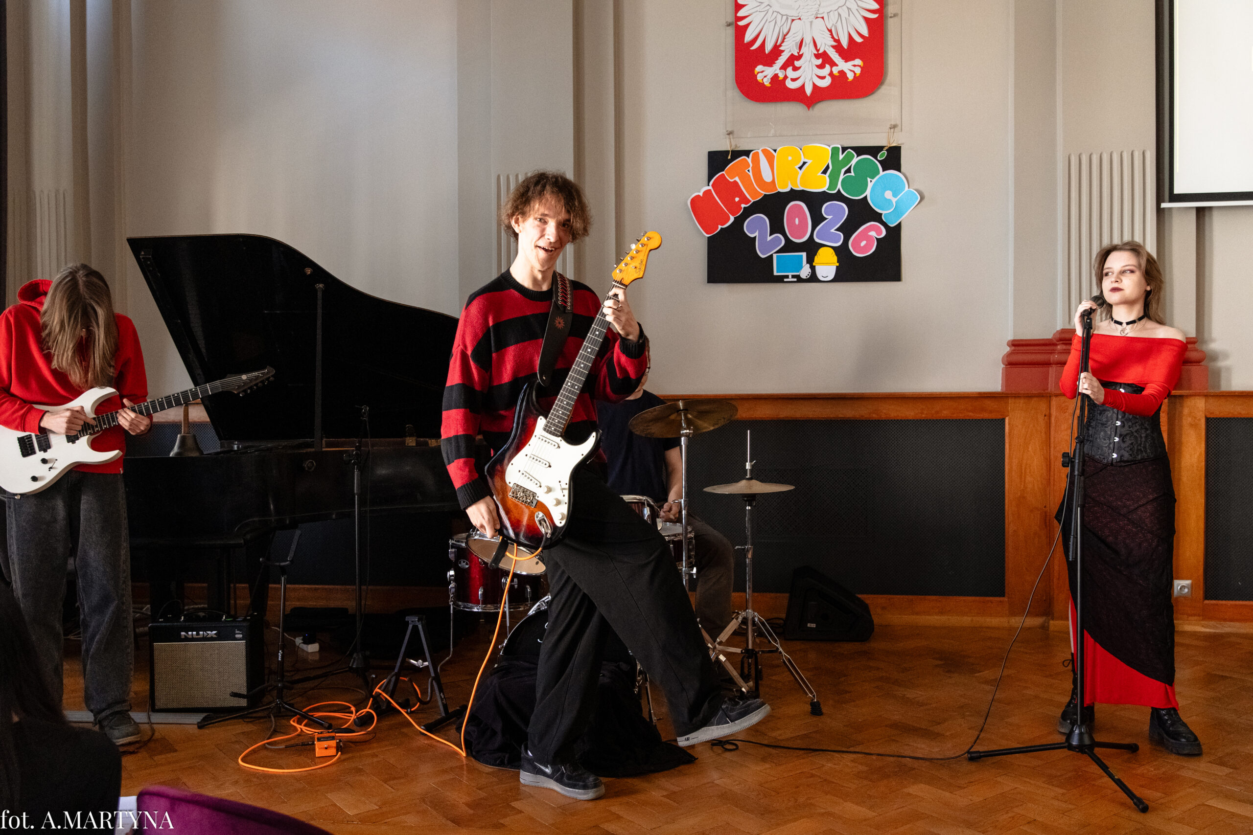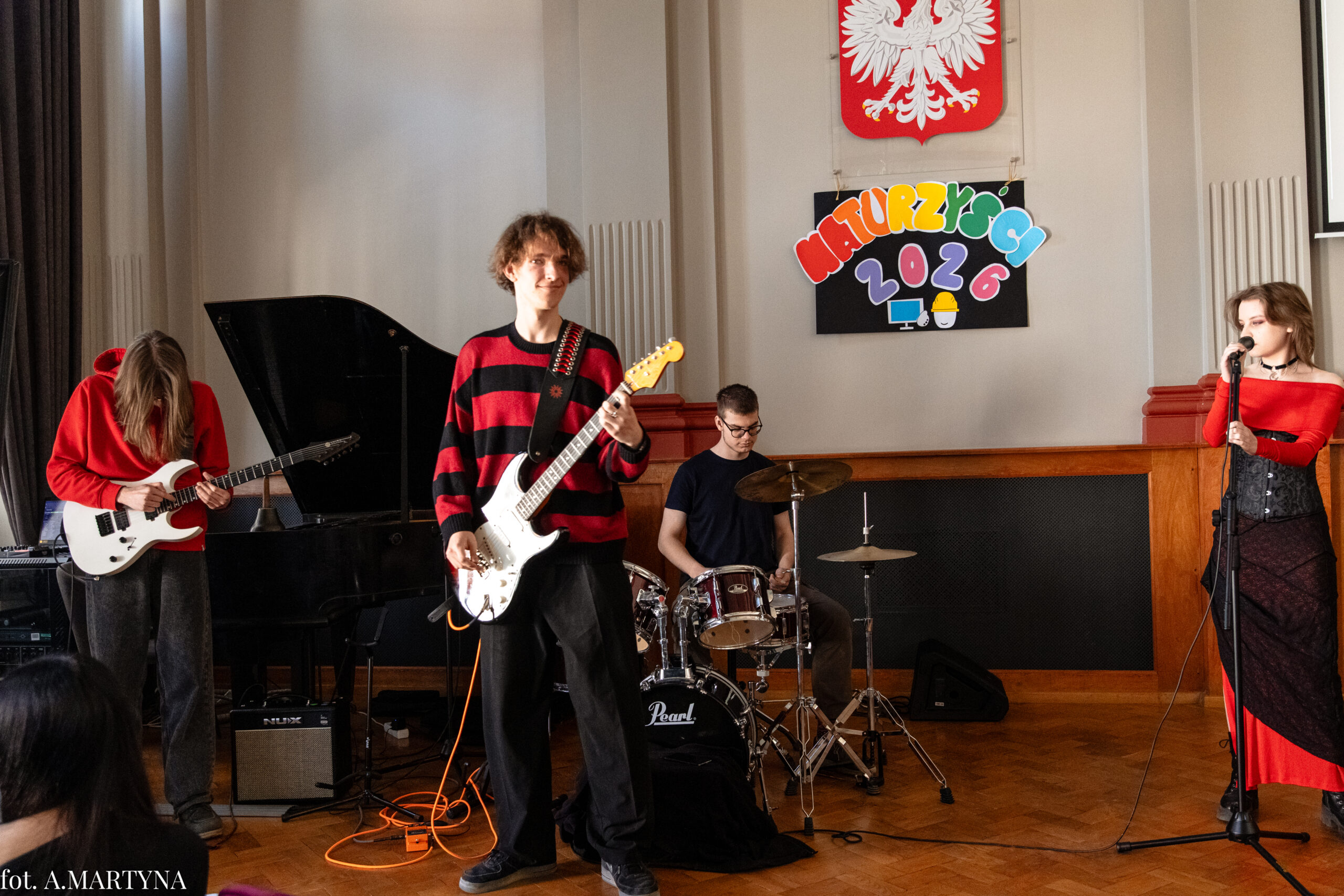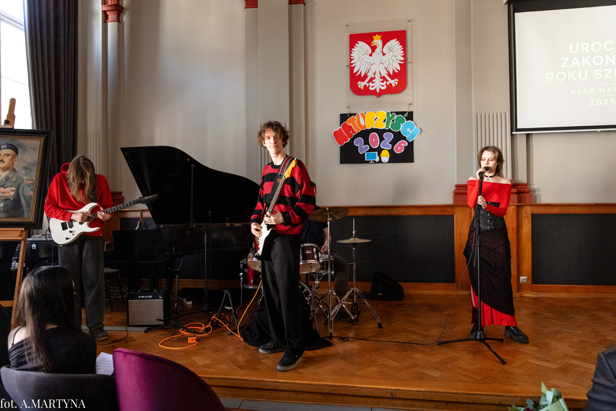 Uroczystość zwieńczyła część artystyczna, podczas której szkolny zespół muzyczny zaprezentował utwory wykonywane na żywo, tworząc wyjątkową i nastrojową atmosferę tego dnia.