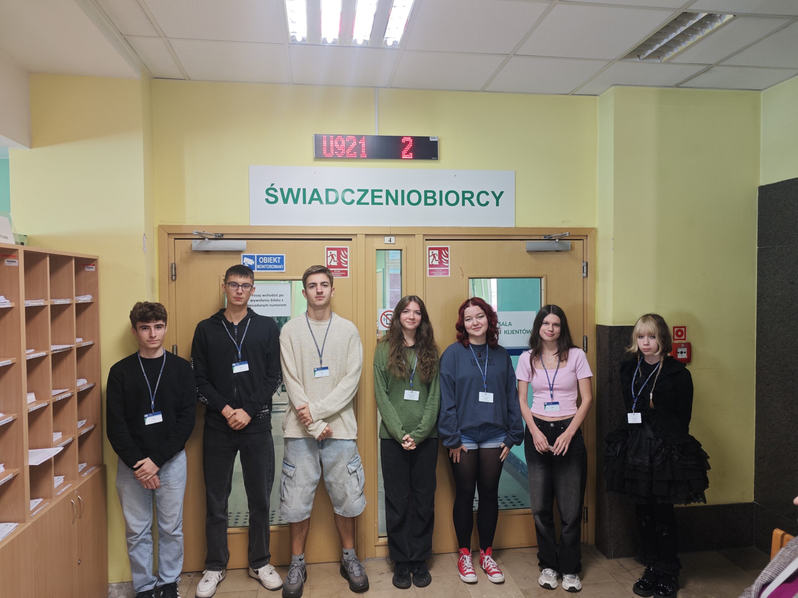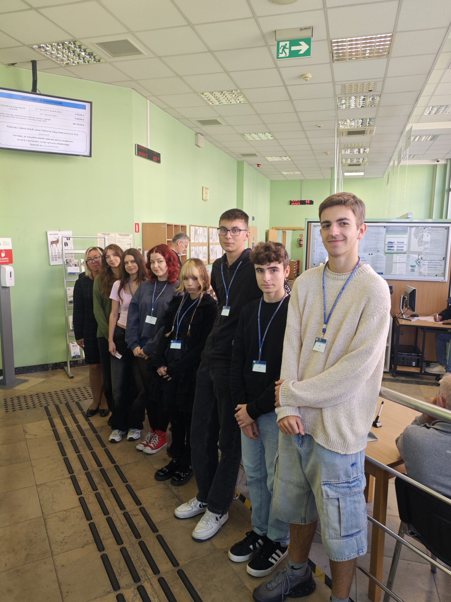 Podczas wizyty poznali ciekawą historię zabytkowego budynku przy ul. Dąbrowskiego oraz wysłuchali ekspertów z dziedziny ubezpieczeń społecznych. Uczniowie wraz z opiekunem, p. Pauliną Czubaszek, zwiedzili salę obsługi klienta, gdzie wcielili się w rolę świadczeniobiorców — pobrali bilety i zostali obsłużeni przez pracowników placówki.