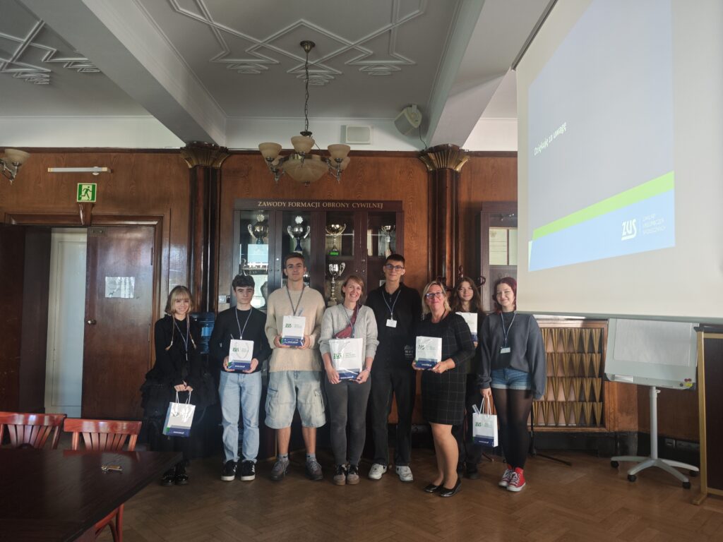 W dniu 24.09.2025 r. uczniowie przygotowujący się do olimpiady „Warto wiedzieć więcej o Ubezpieczeniach Społecznych” wzięli udział w wykładach realizowanych w ramach projektu Lekcje z ZUS.