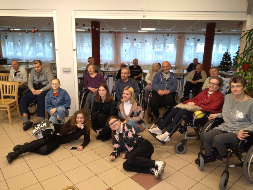 W klimacie karnawałowym odbyło się kolejne spotkanie wolontariuszy z Mieszkańcami i Pracownikami DPS. Byśmy lepiej się poznali opowiedzieliśmy o naszej szkole i kierunkach kształcenia oraz zaprezentowaliśmy nasz repertuar muzyczny.
